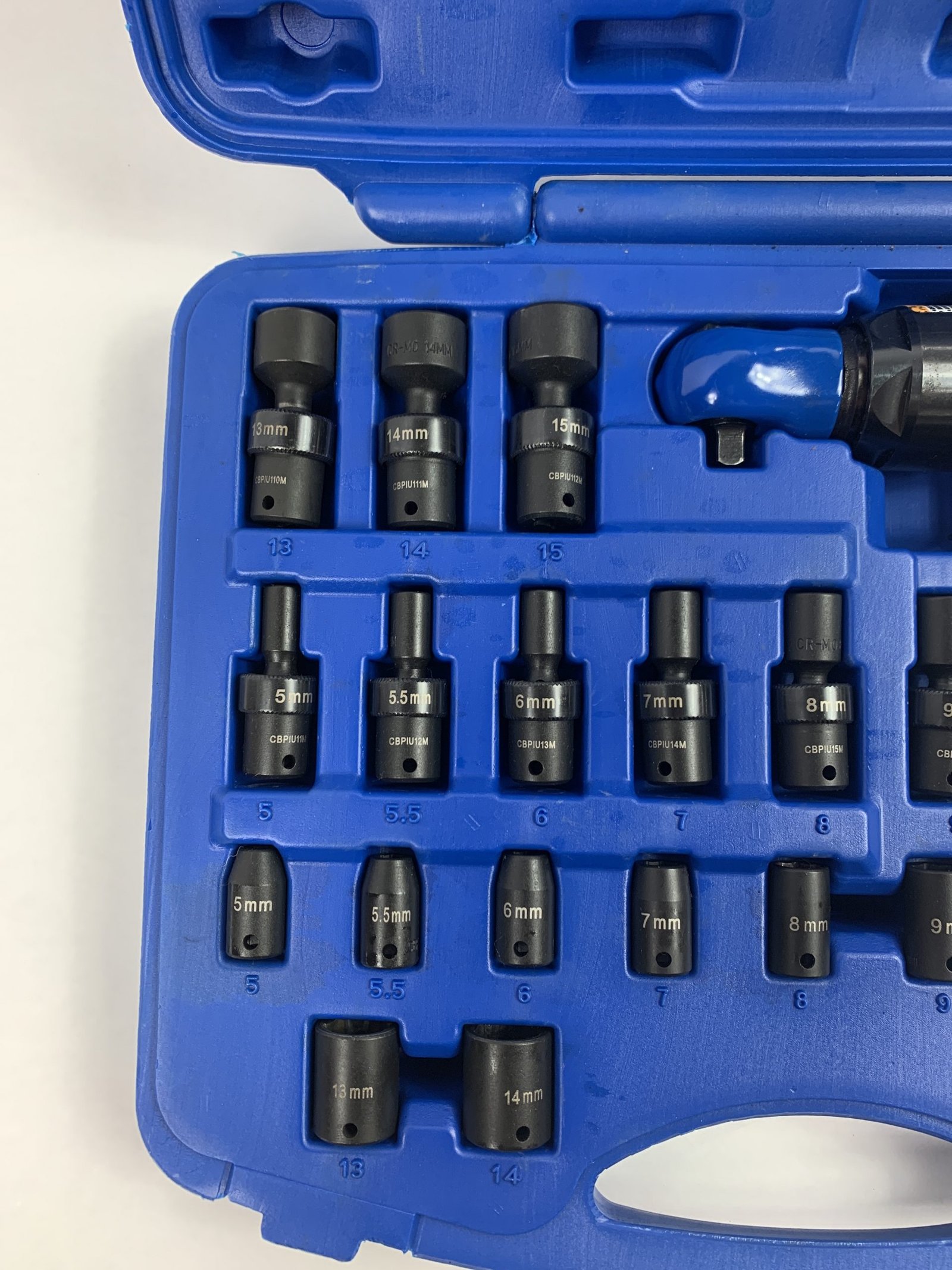 25pc. 1/4″ BLUE POWER Metric Impact Sockets With Mini Ratchet. , With Case (Used – Very Good)