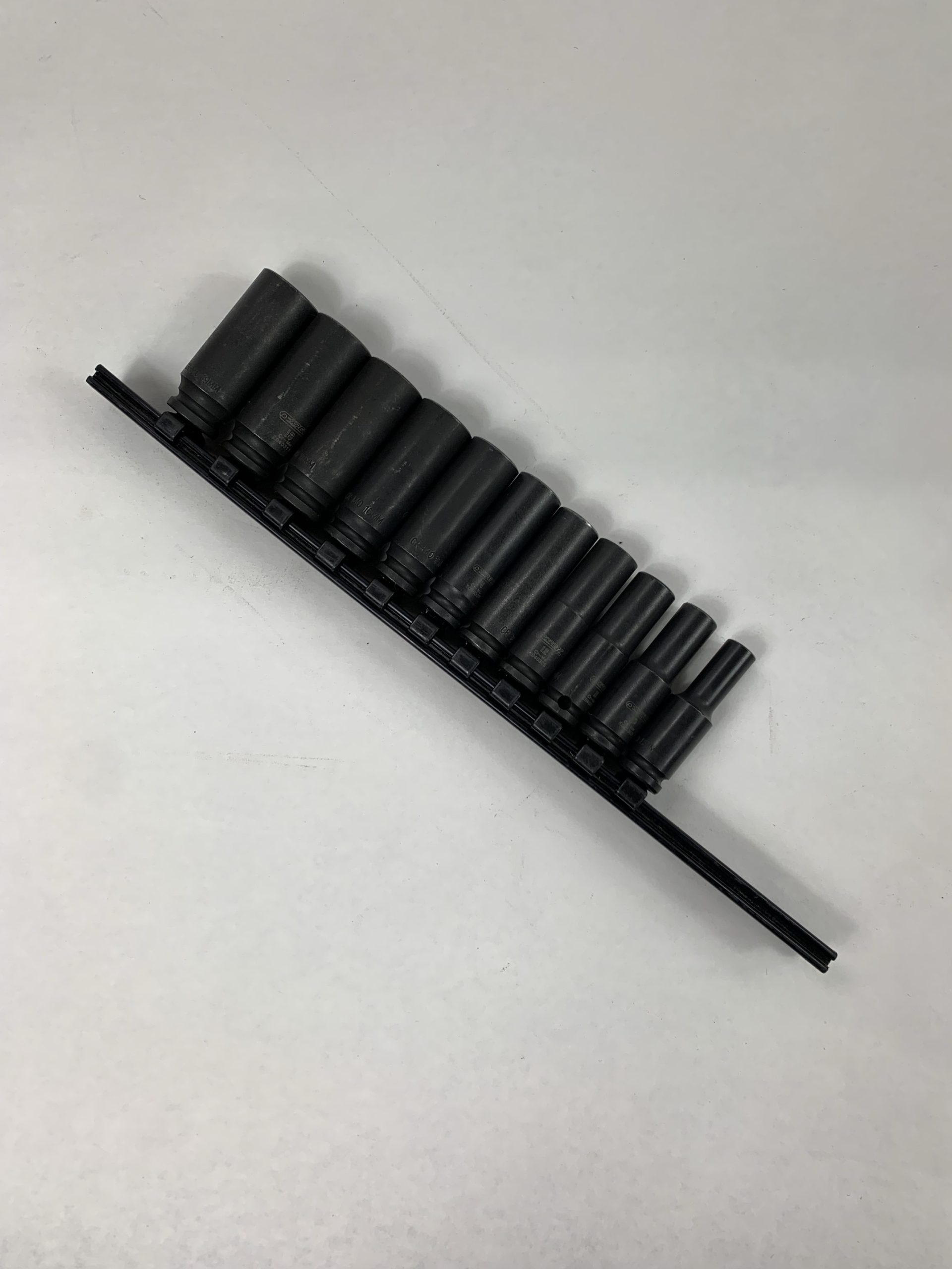 11-PC 3/8″ Drive Metric Impact Deep Socket Set (9-19mm), With Rail, Used – Good