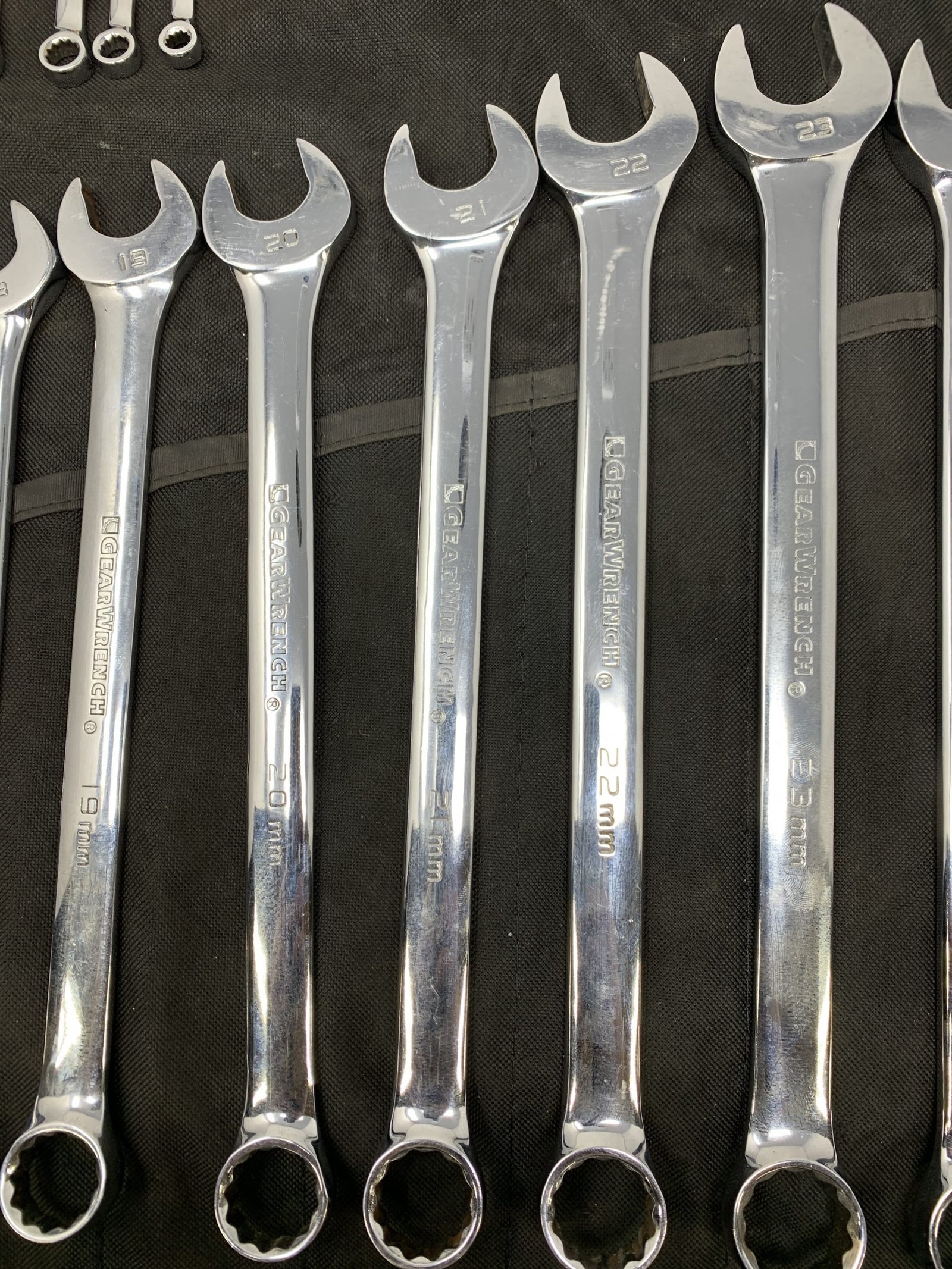 22 Pc. 12 Point Long Pattern Combination Metric Wrench Set (6mm – 24, 27, 30, 32mm) , With Roll Up