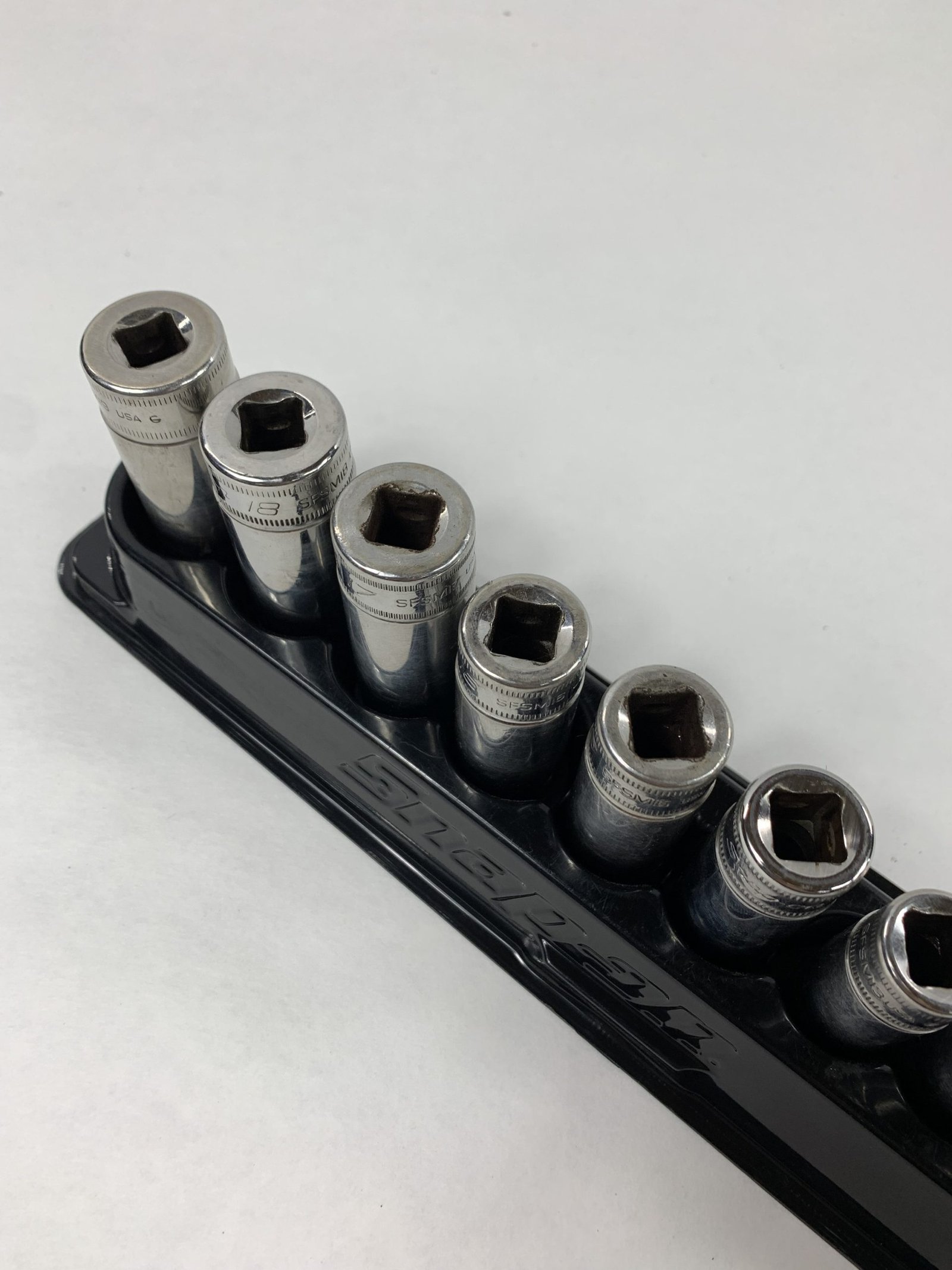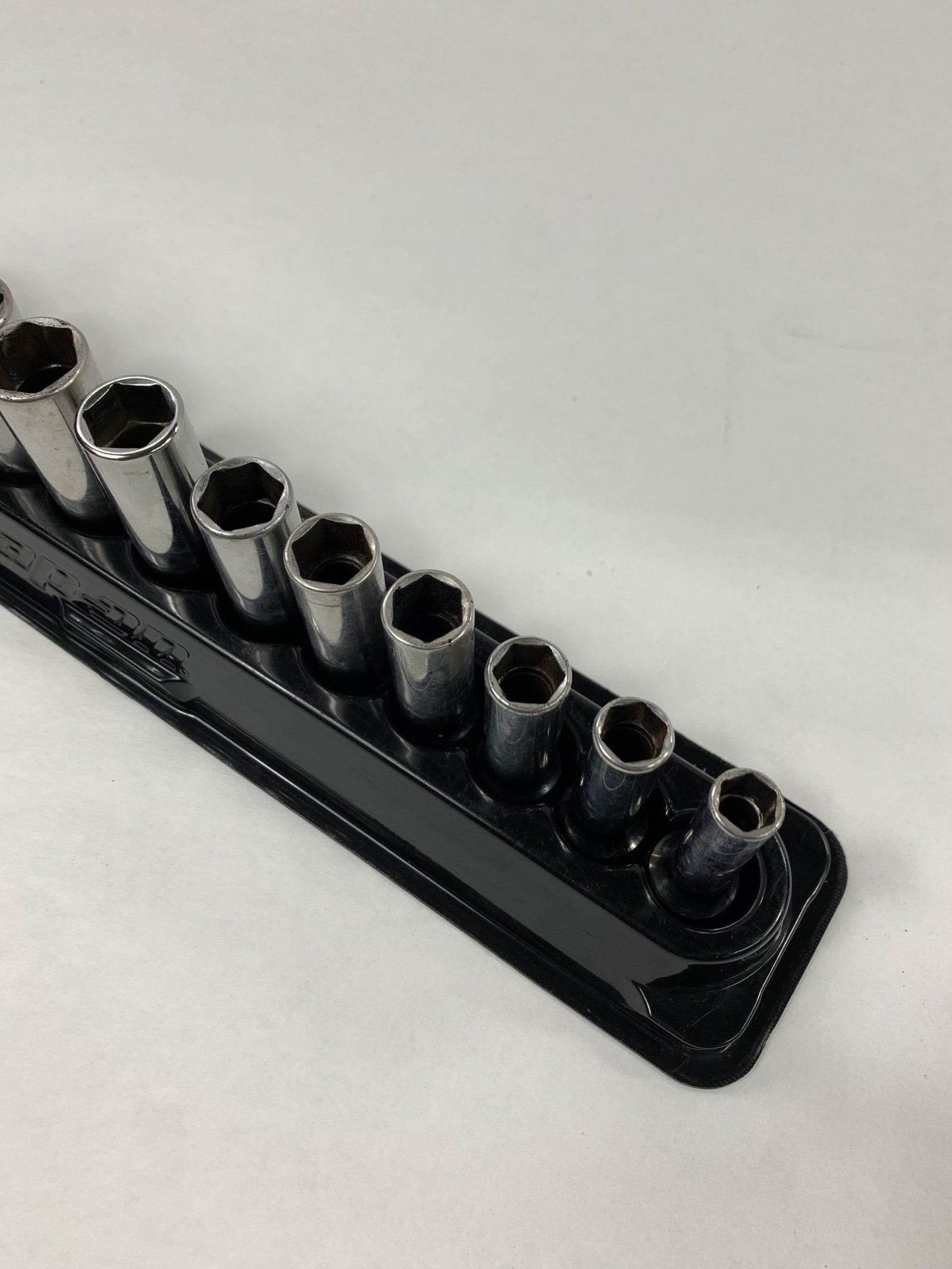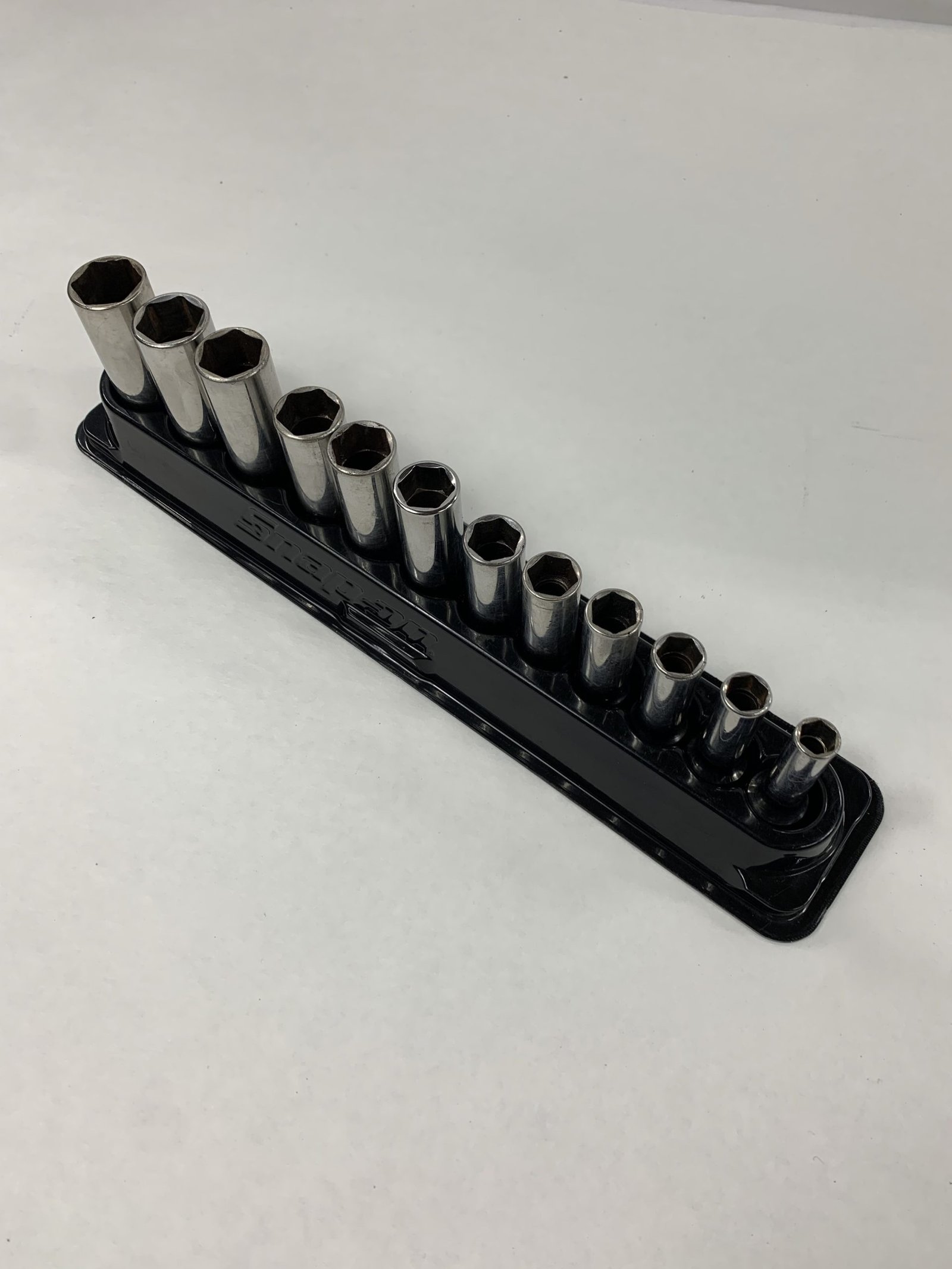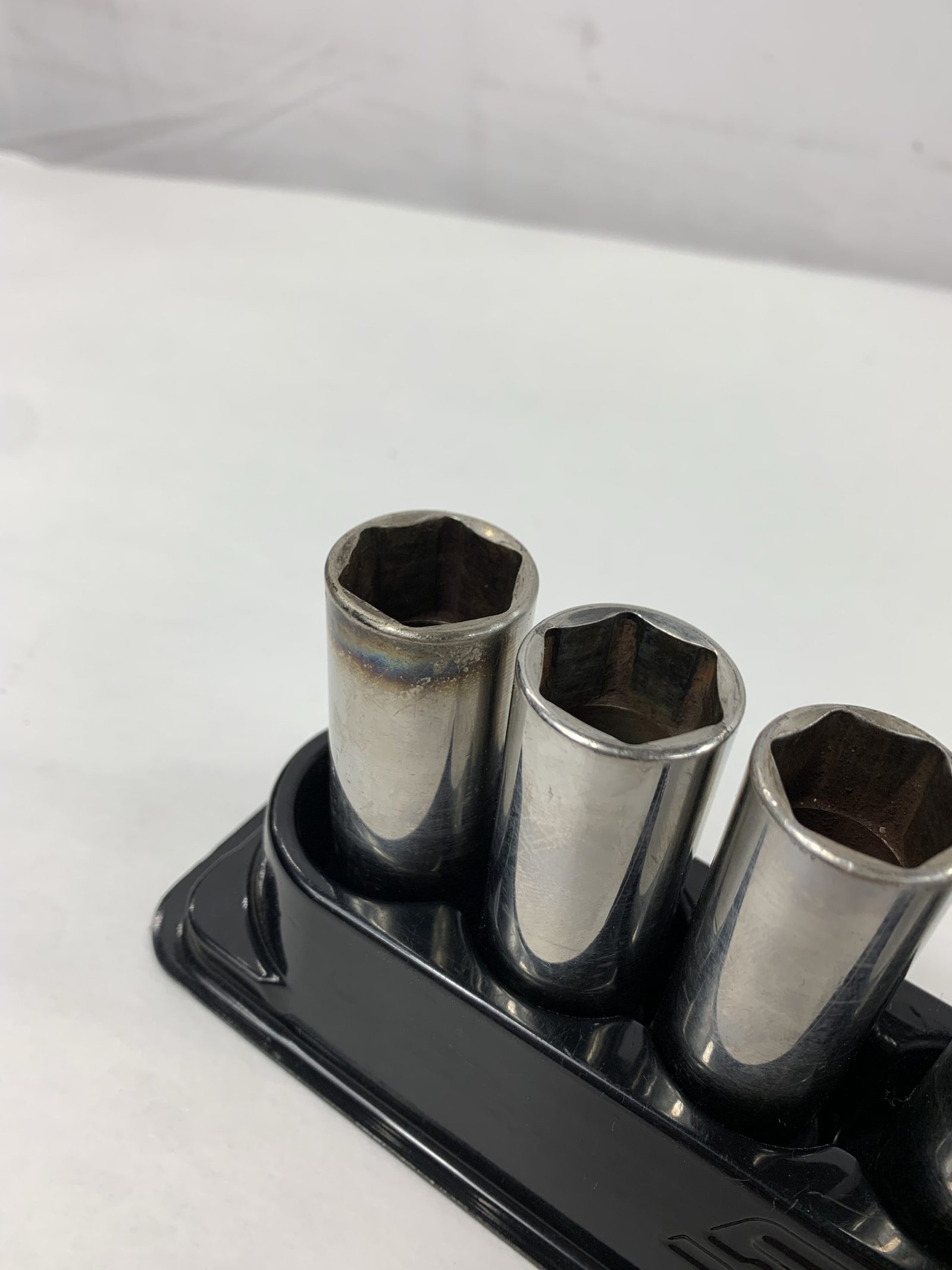 12 pc 3/8″ Drive 6-Point Metric Flank Drive® Deep Socket Set (8-19 mm), With Mag Tray, 19mm Discolored, Used – Good