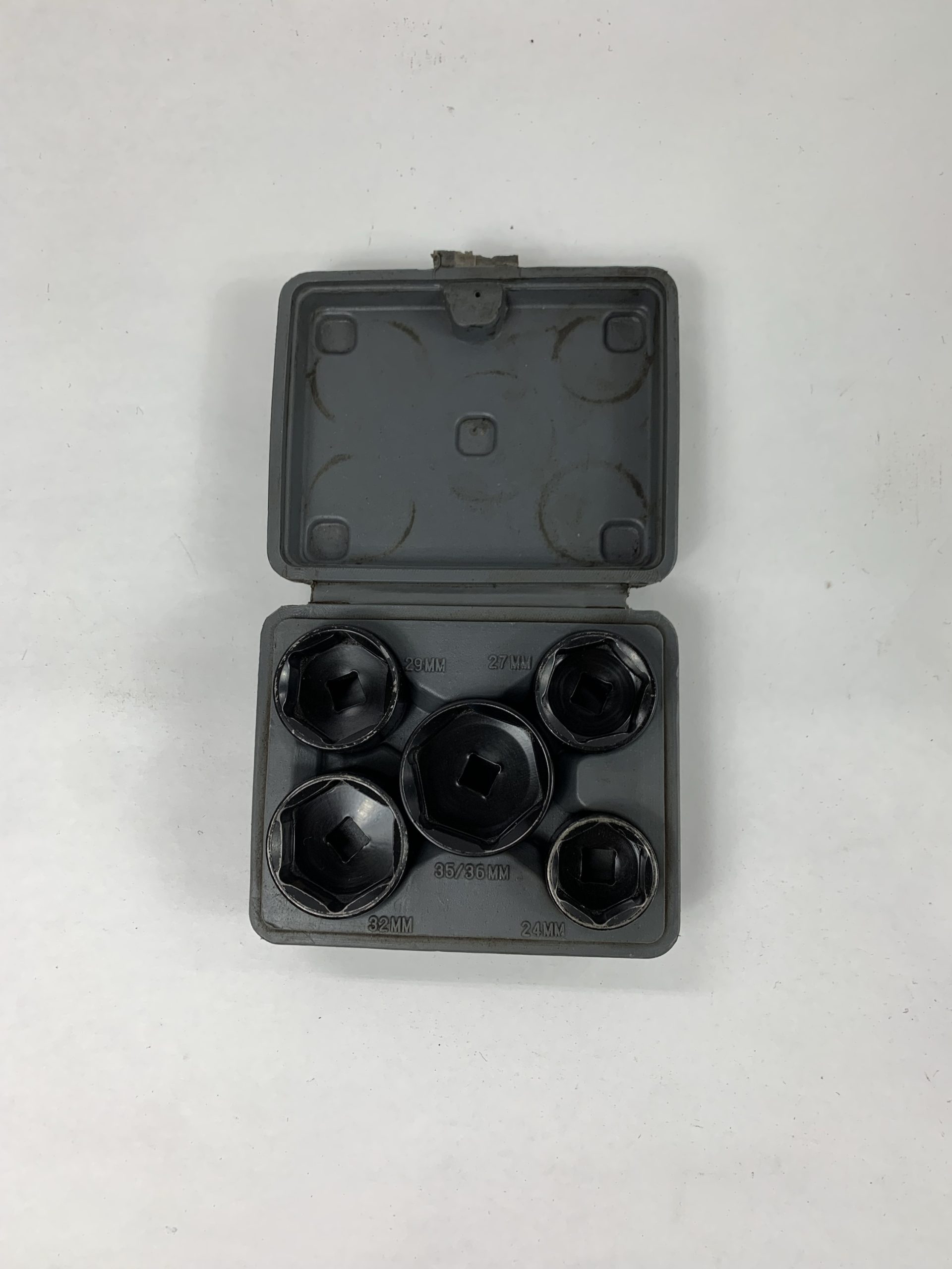 5-PC. Oil Filter Cup Wrench Set, Case Latch Broken, Used – Good