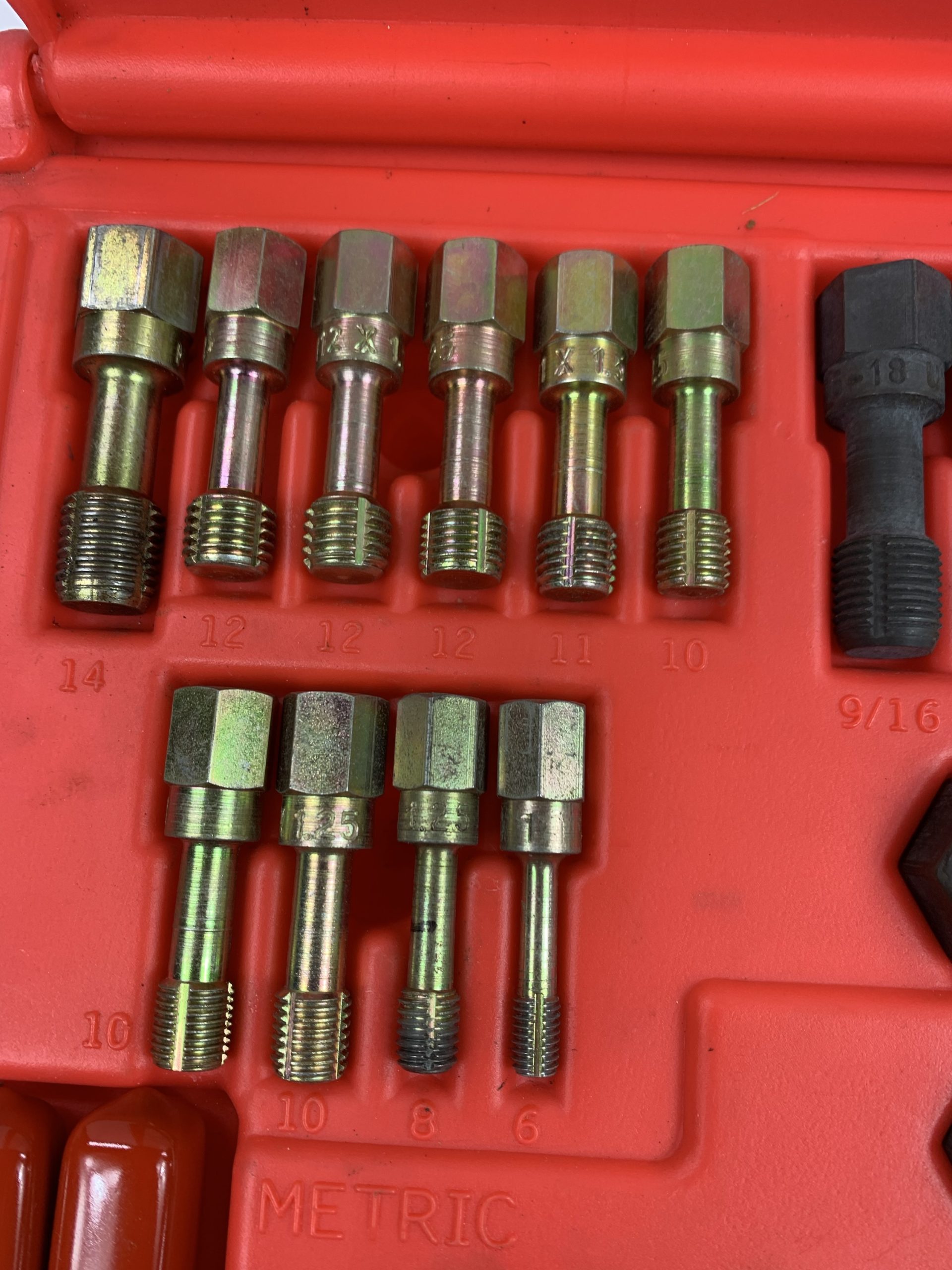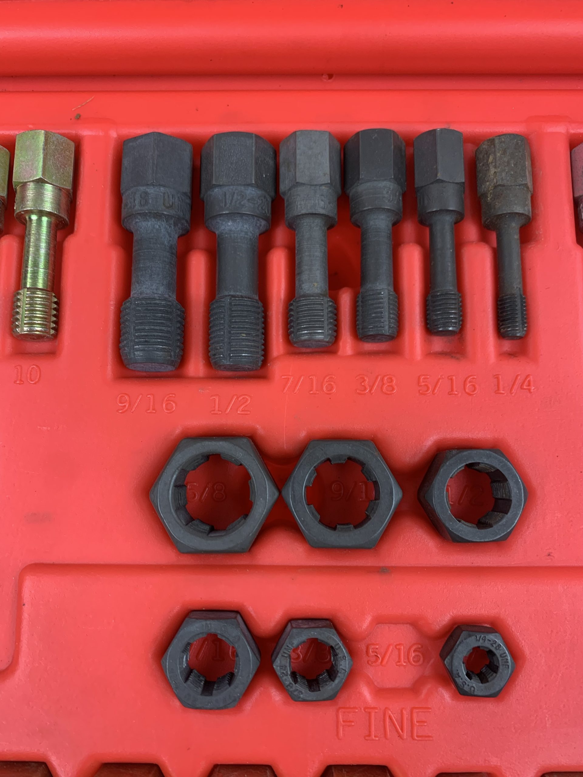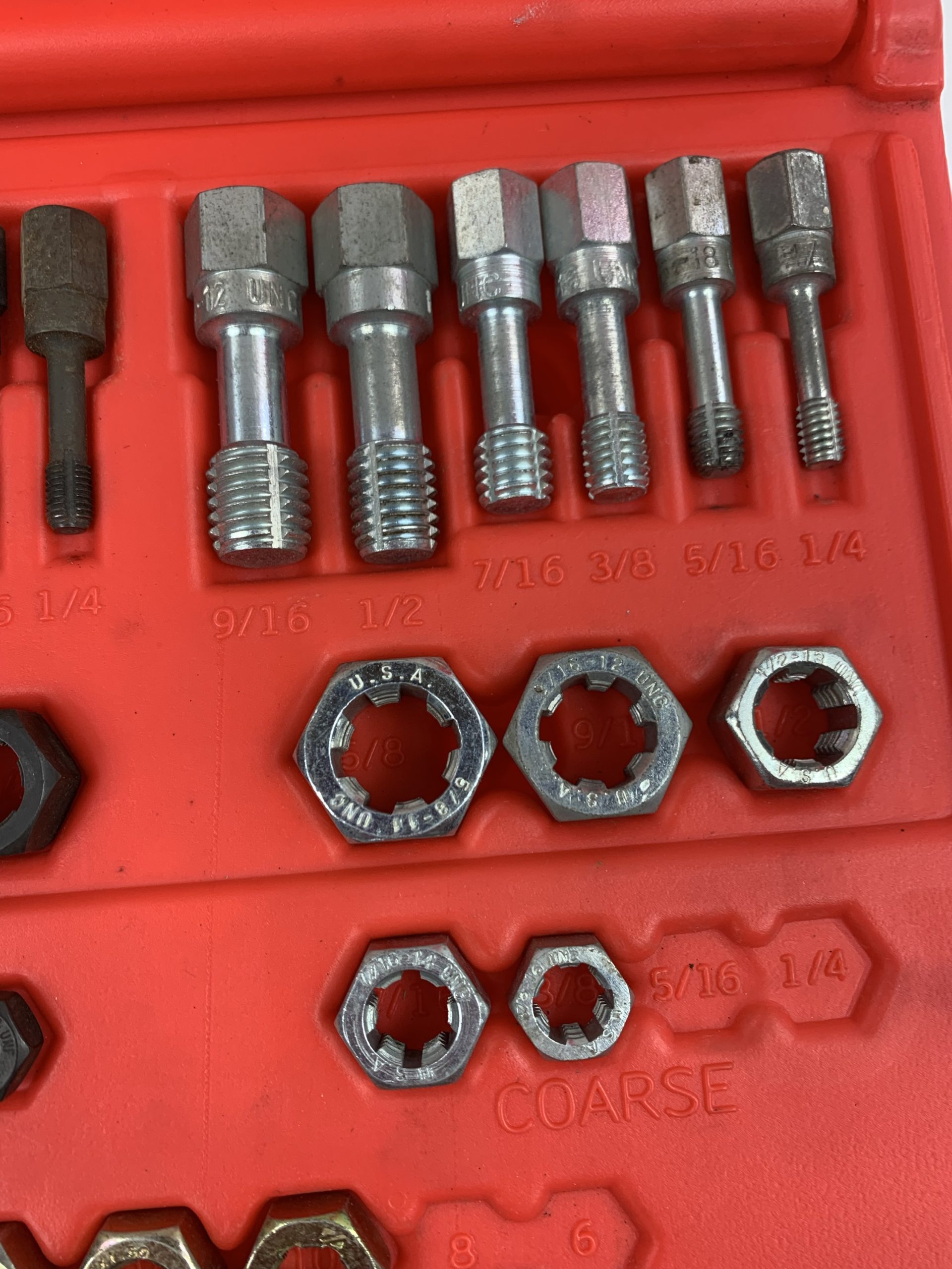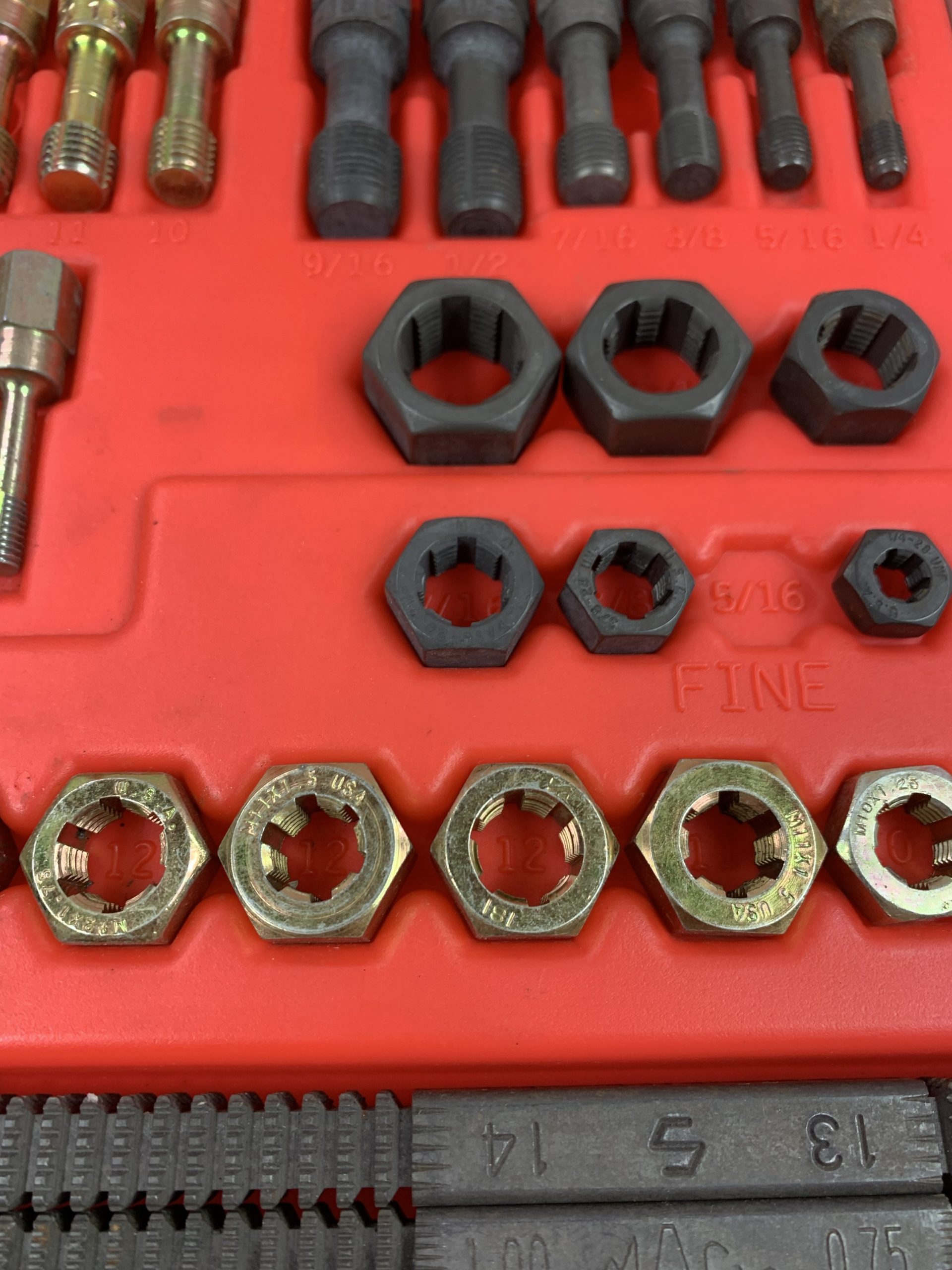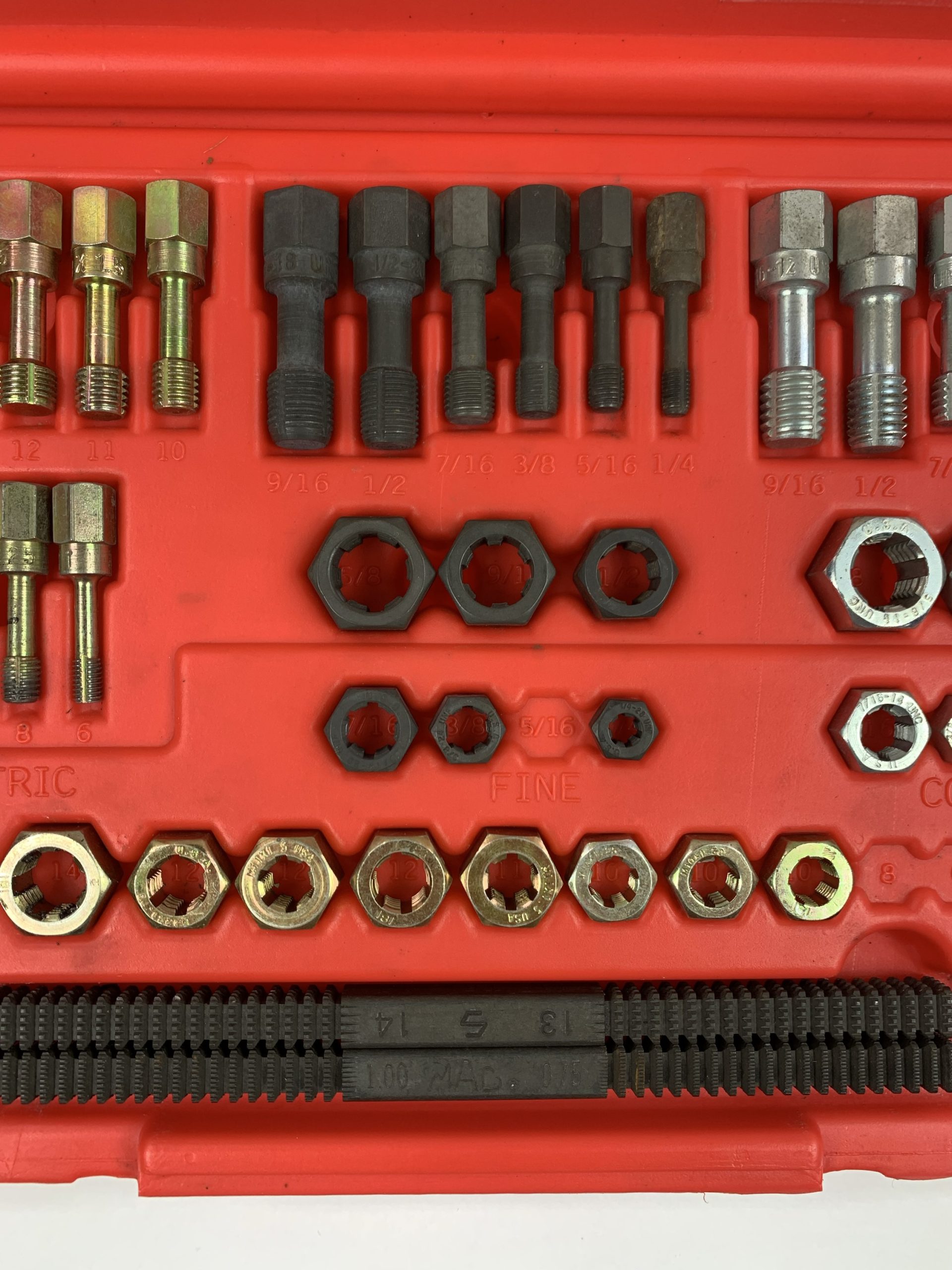 48-PC. Rethreading Tap and Die Set, Missing 5 Pieces (See Pics), Used – Good