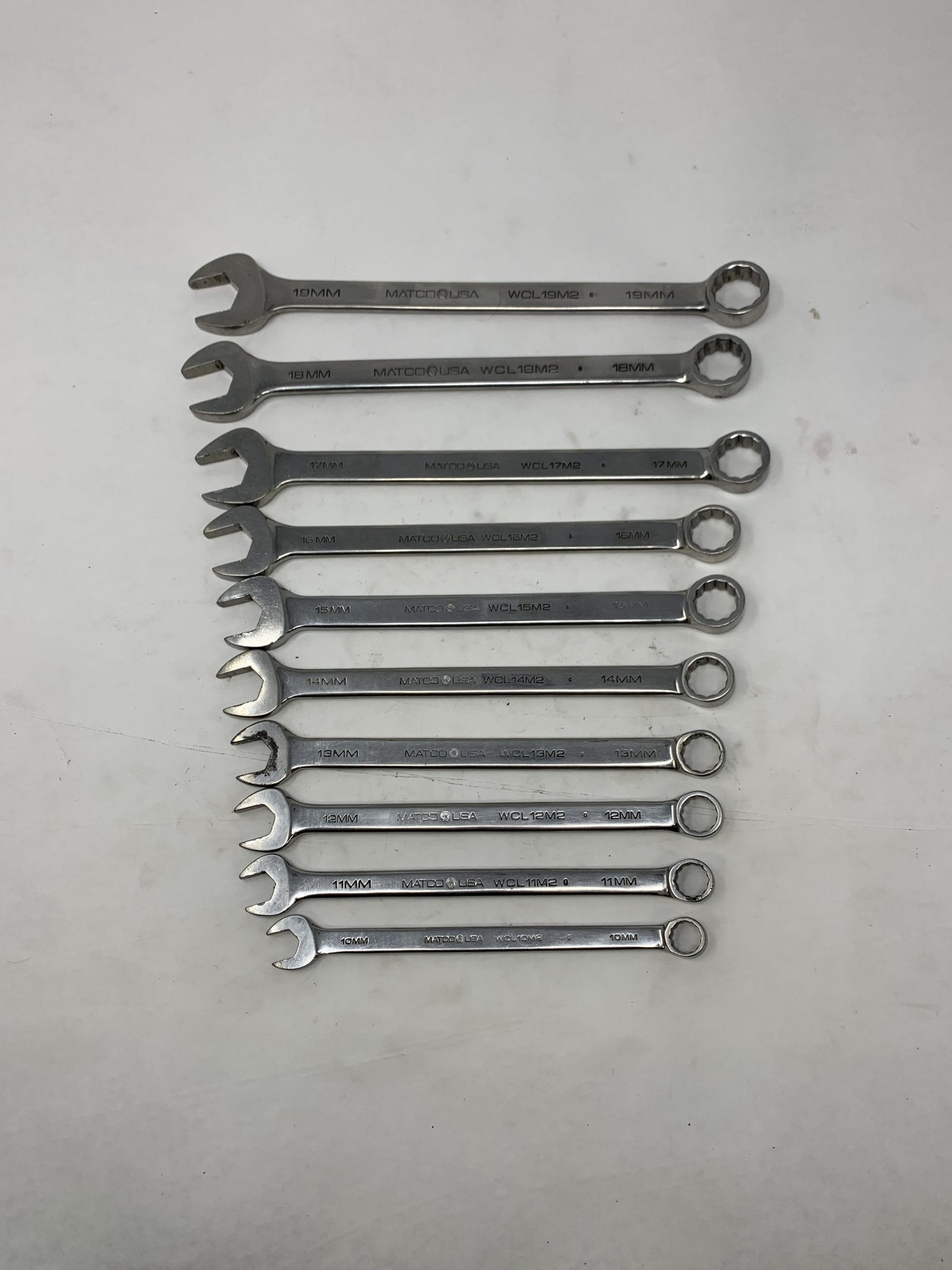 10 Piece Metric Wrench Set (10mm – 19mm) , Wrenches are PN WCLXXM2 (Where XX is size, ie 12mm is WCL12M2), LightlyEngraved”Iggy”