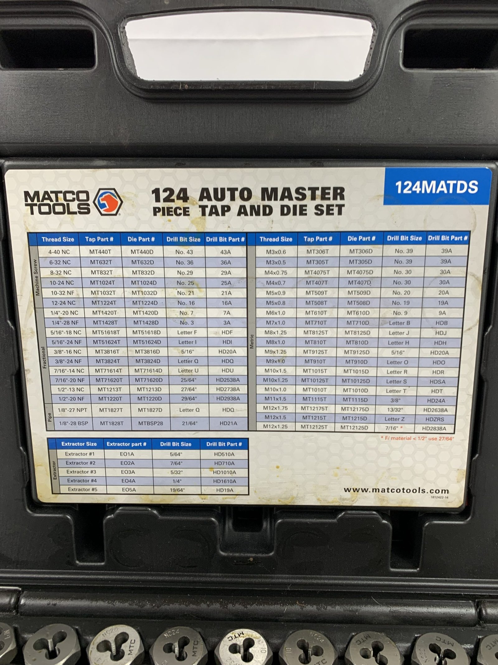 124 PIECE AUTO MASTER TAP & DIE SET, , Used – Very Good