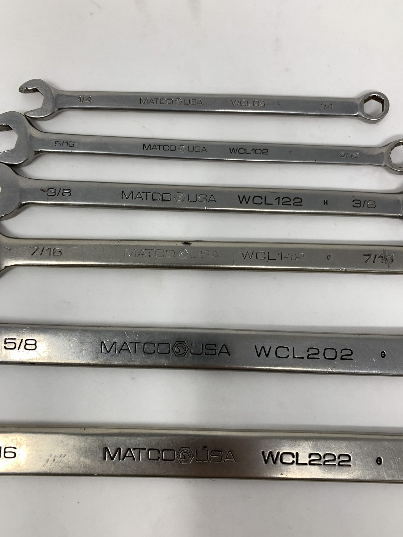 12 PC SAE Wrench Set , Incomplete Set (See Pictures for Sizes), Few pieces very faintly engraved