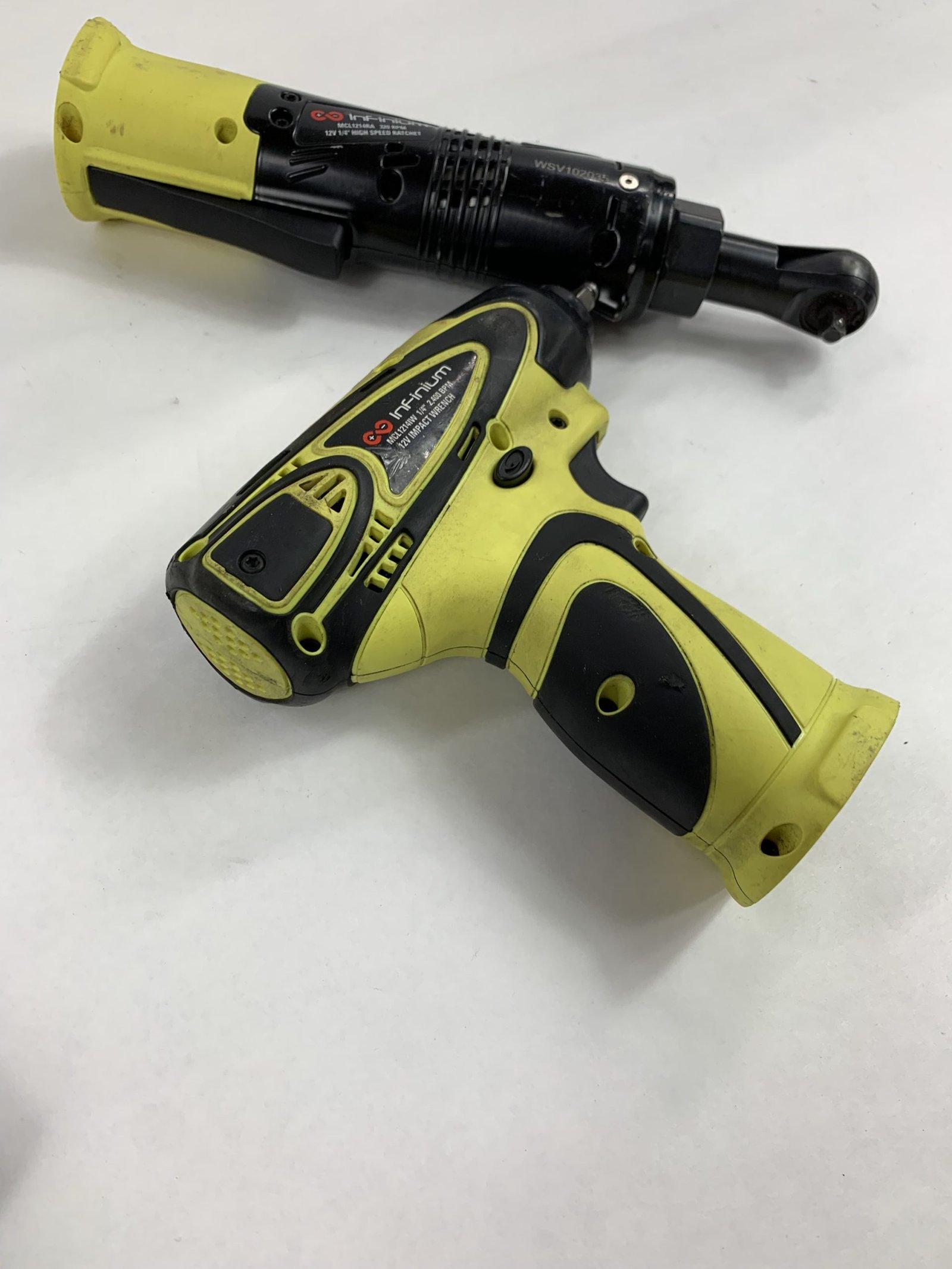 Share 12V CORDLESS INFINIUM™ 1/4″ DRIVE IMPACT WRENCH AND 1/4″ DRIVE HIGH SPEED RATCHET KIT , HI-VIZ YELLOW (MCL12IRKY), Used – Good