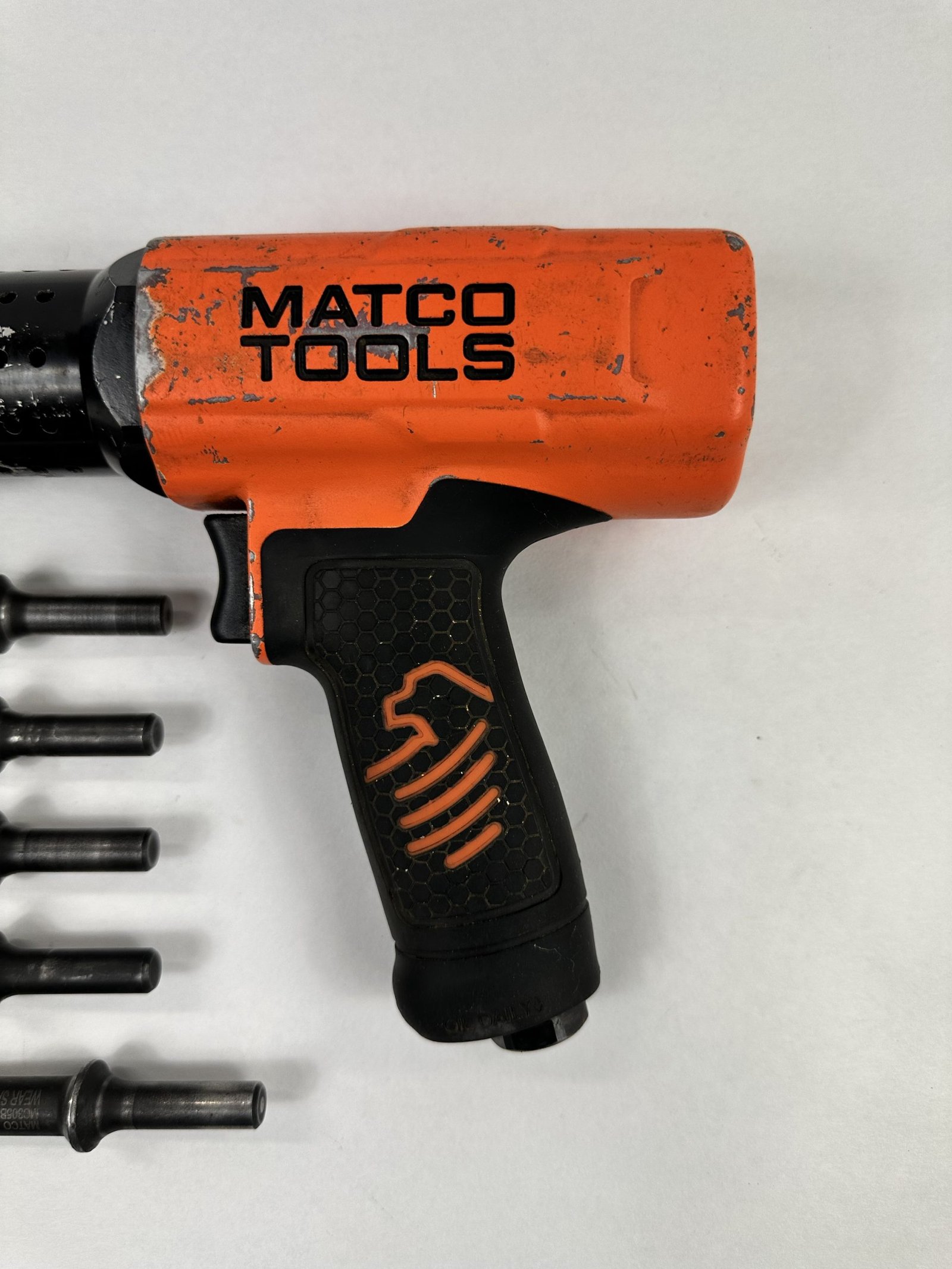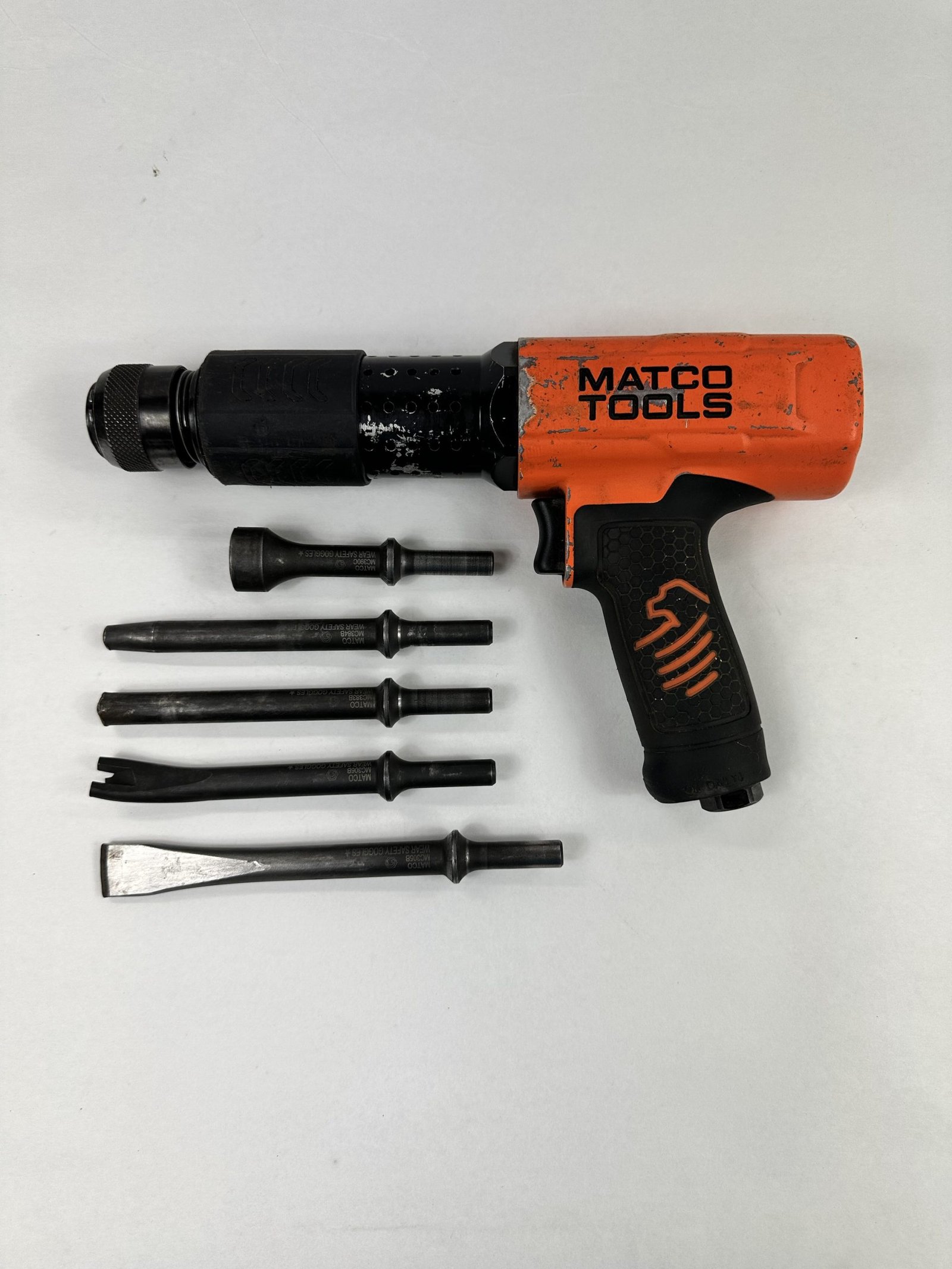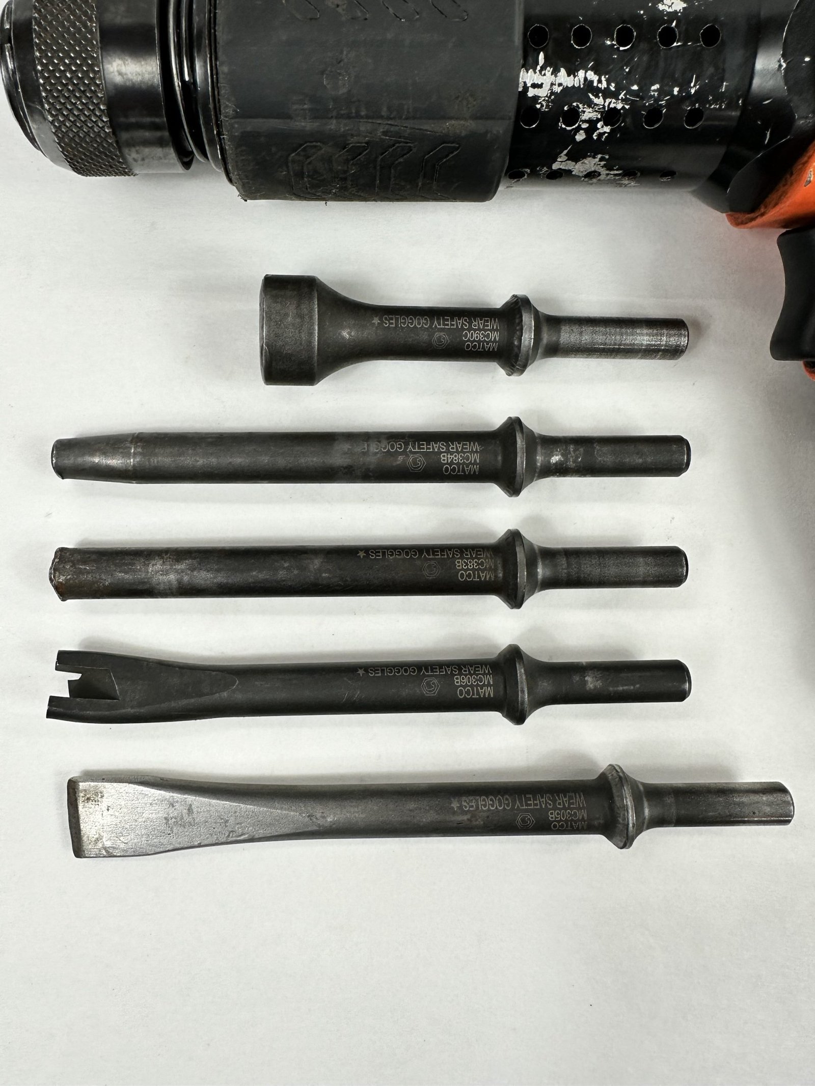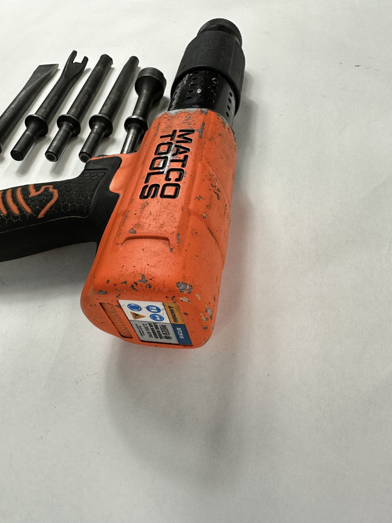 LONG BARREL PNEUMATIC AIR HAMMER, Orange (MT2916KO), Includes (5) Bits, No Case, Used – Good