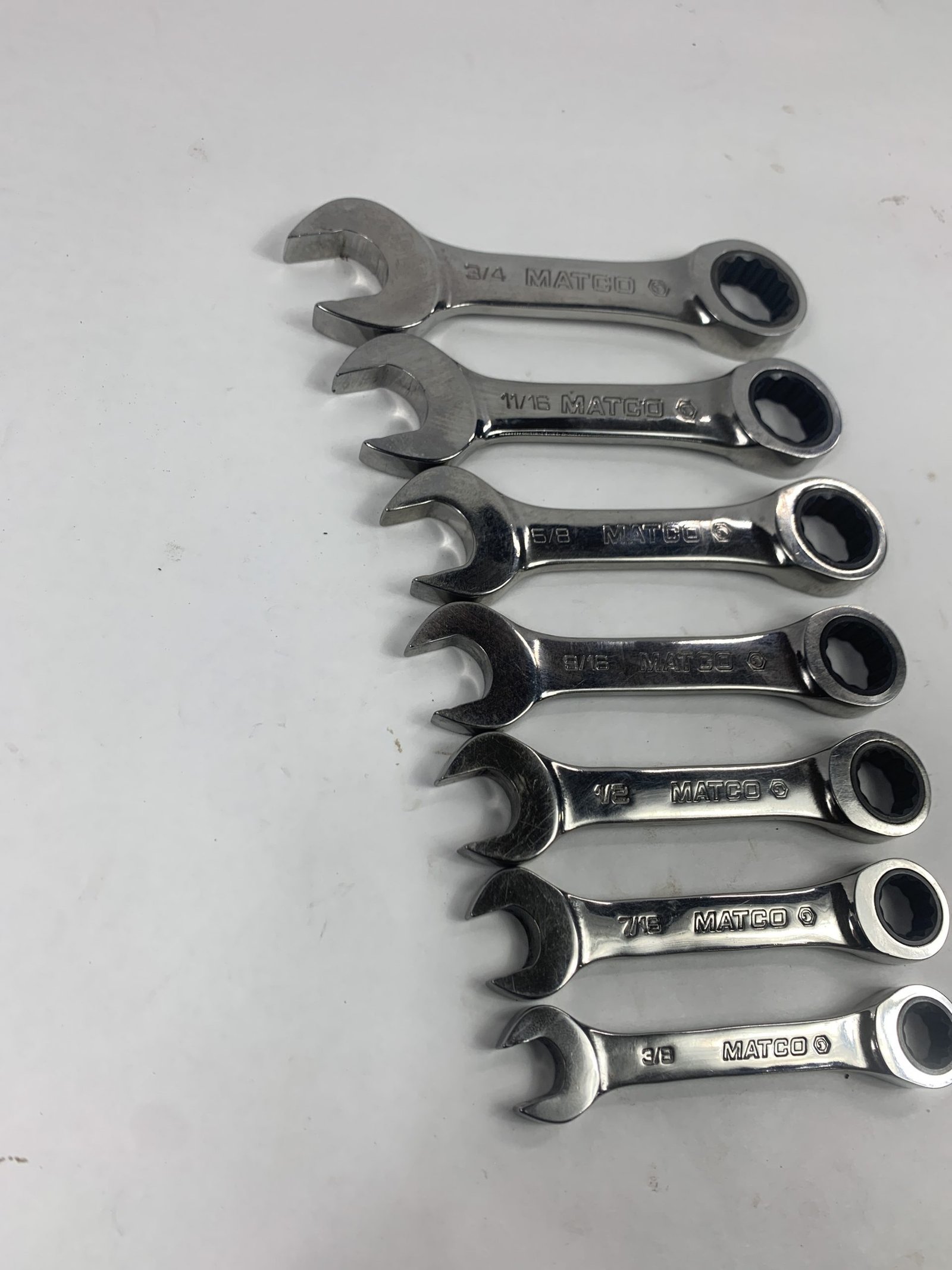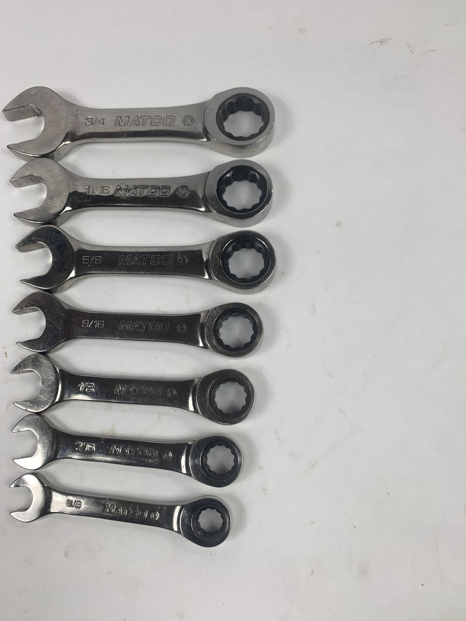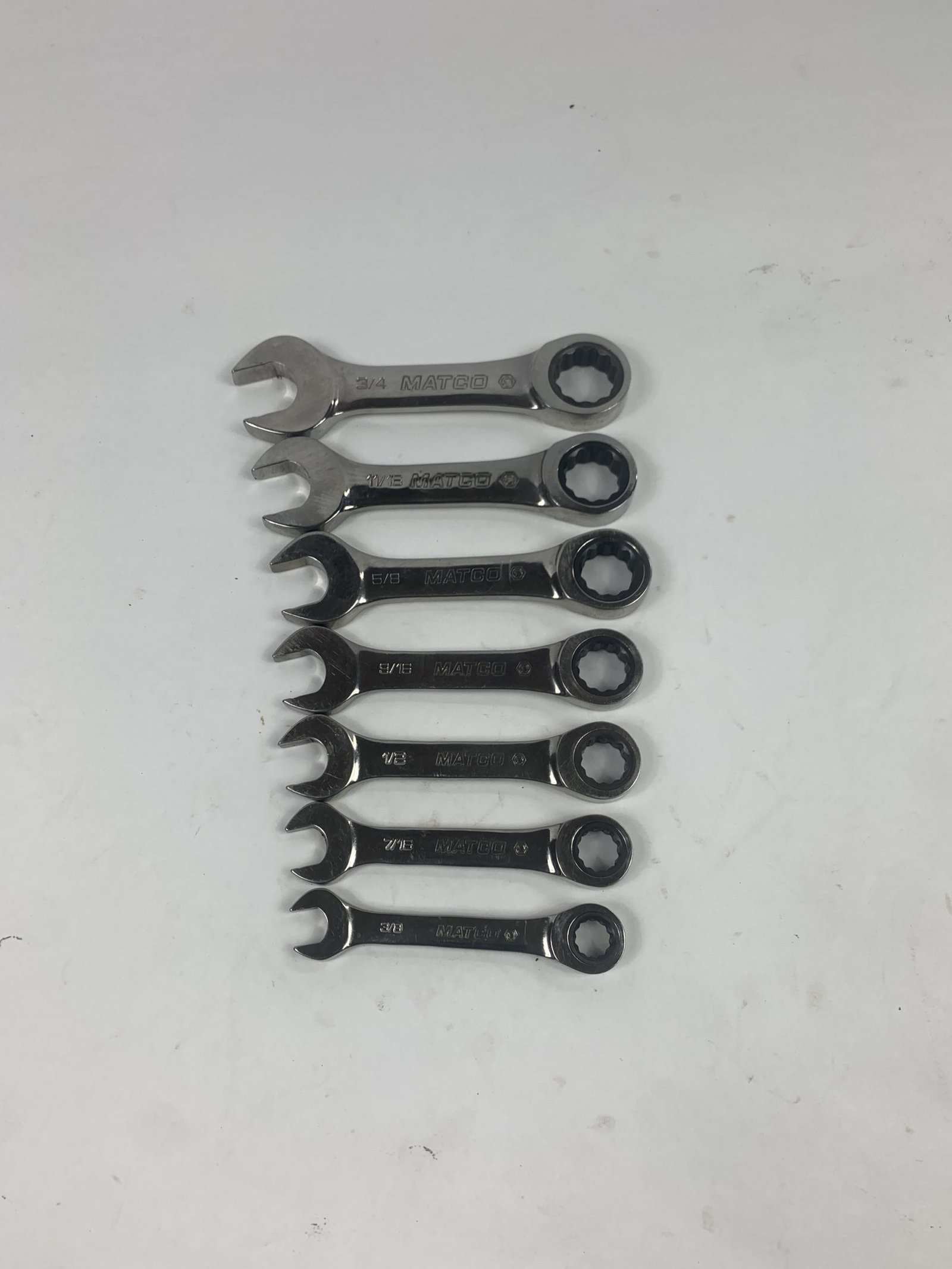 7 PIECE 72 TOOTH STUBBY COMBO SAE SET (3/8 – 3/4″) , Used – Very Good