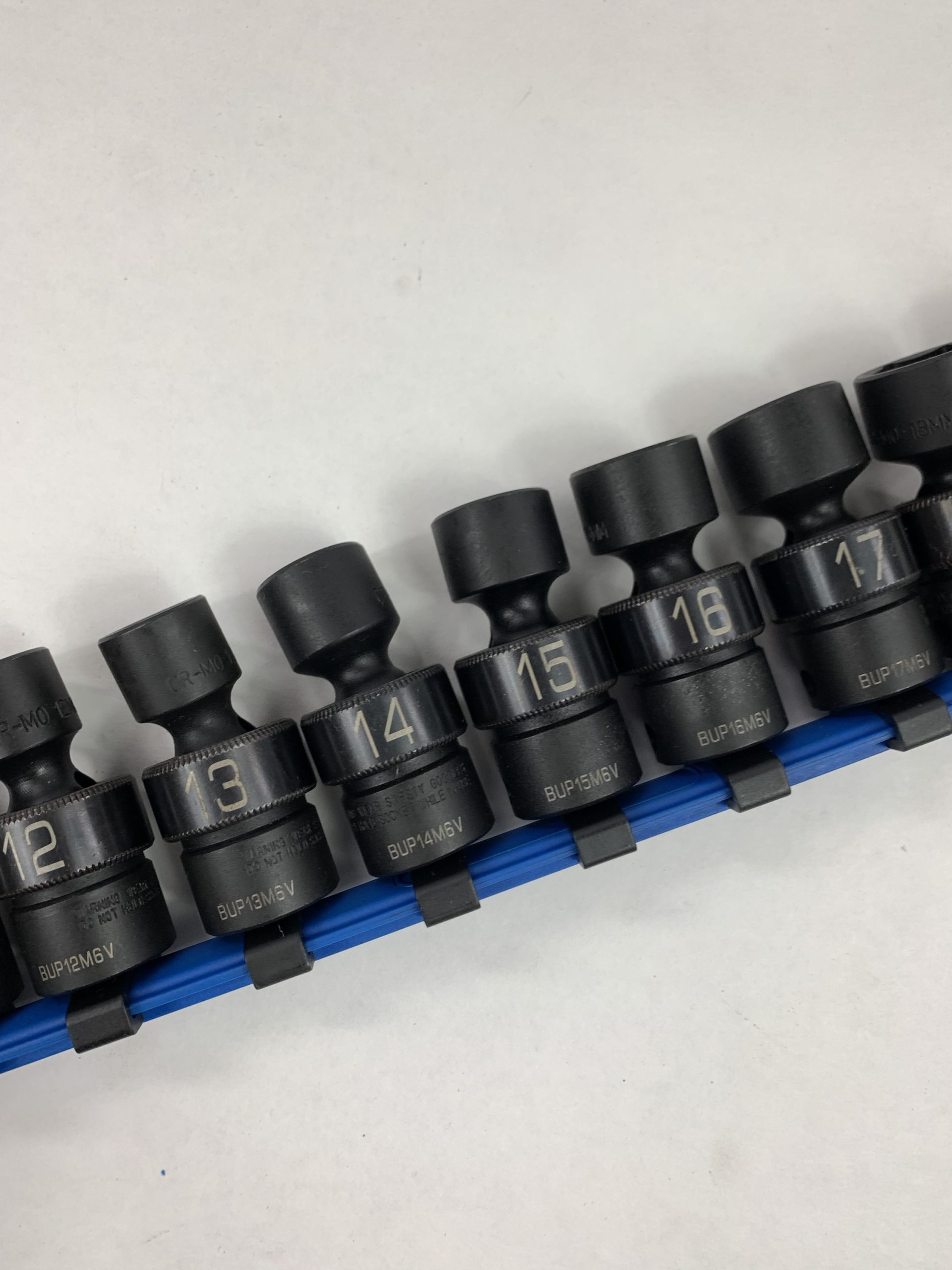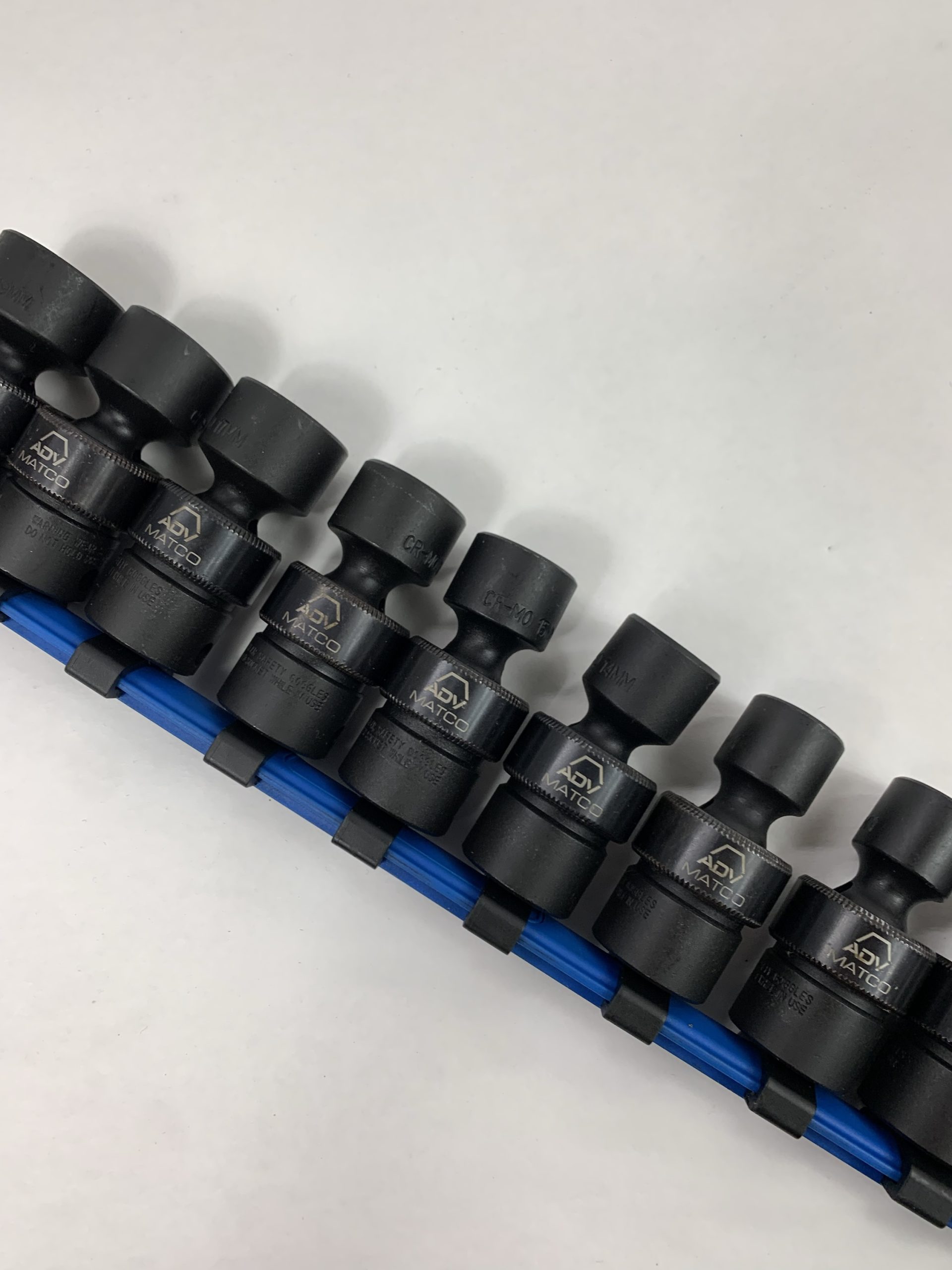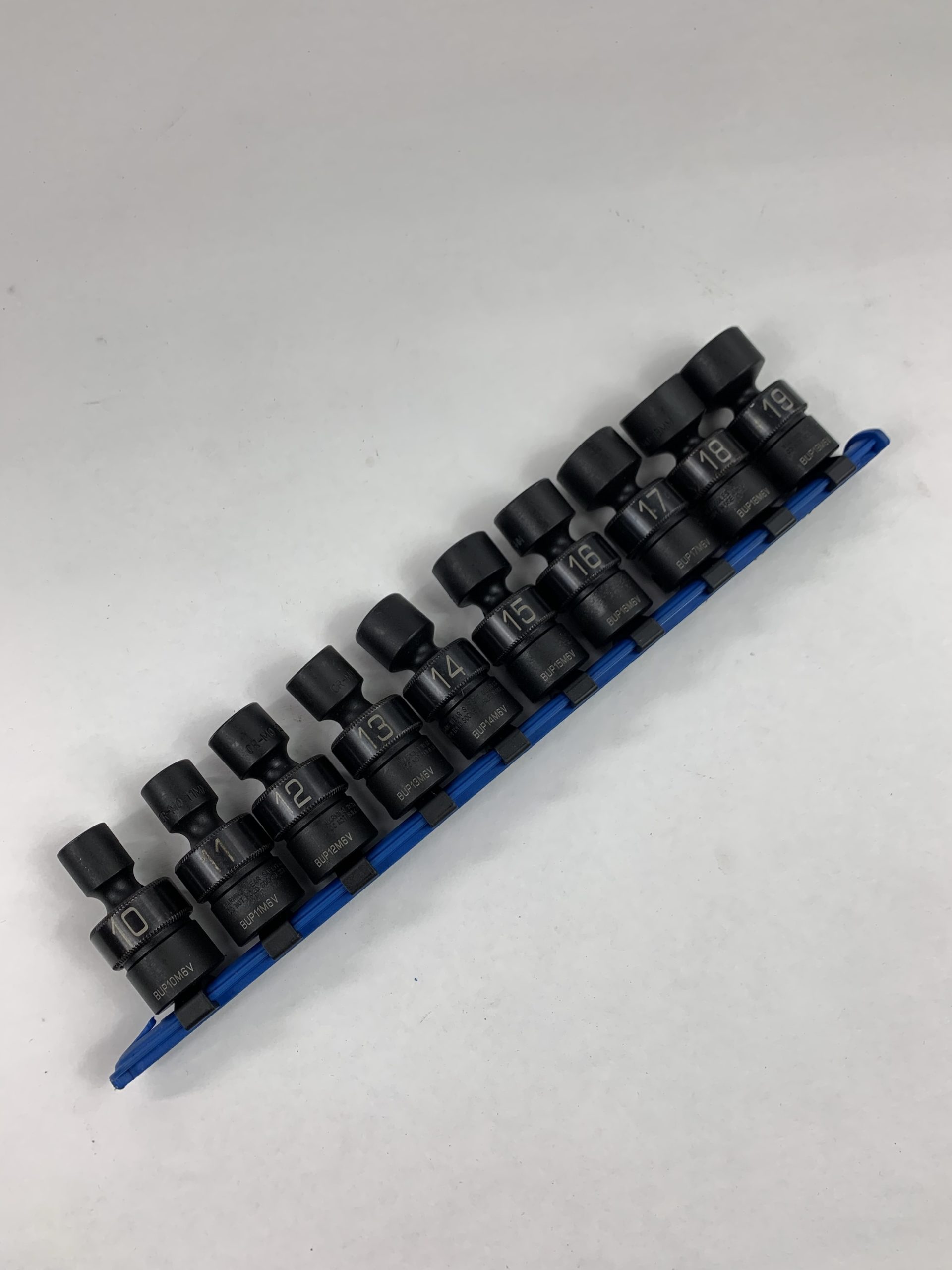3/8″ DRIVE 10 PIECE METRIC 6 POINT UNIVERSAL ADV IMPACT SOCKET SET, With Rail, Used – Very Good