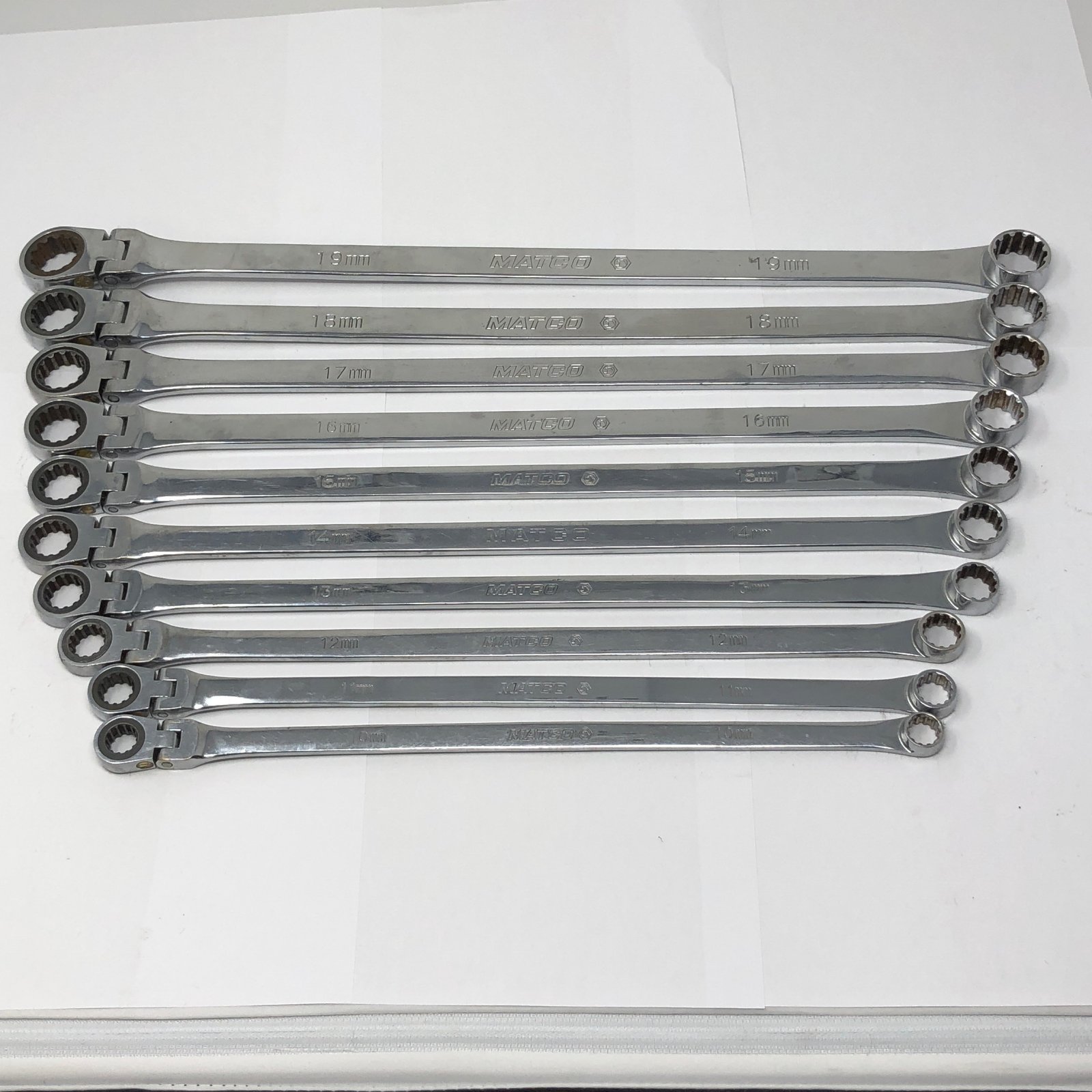 10 PIECE 0deg FLEX RATCHETING EXTRA LONG WRENCH SET, 10-19mm