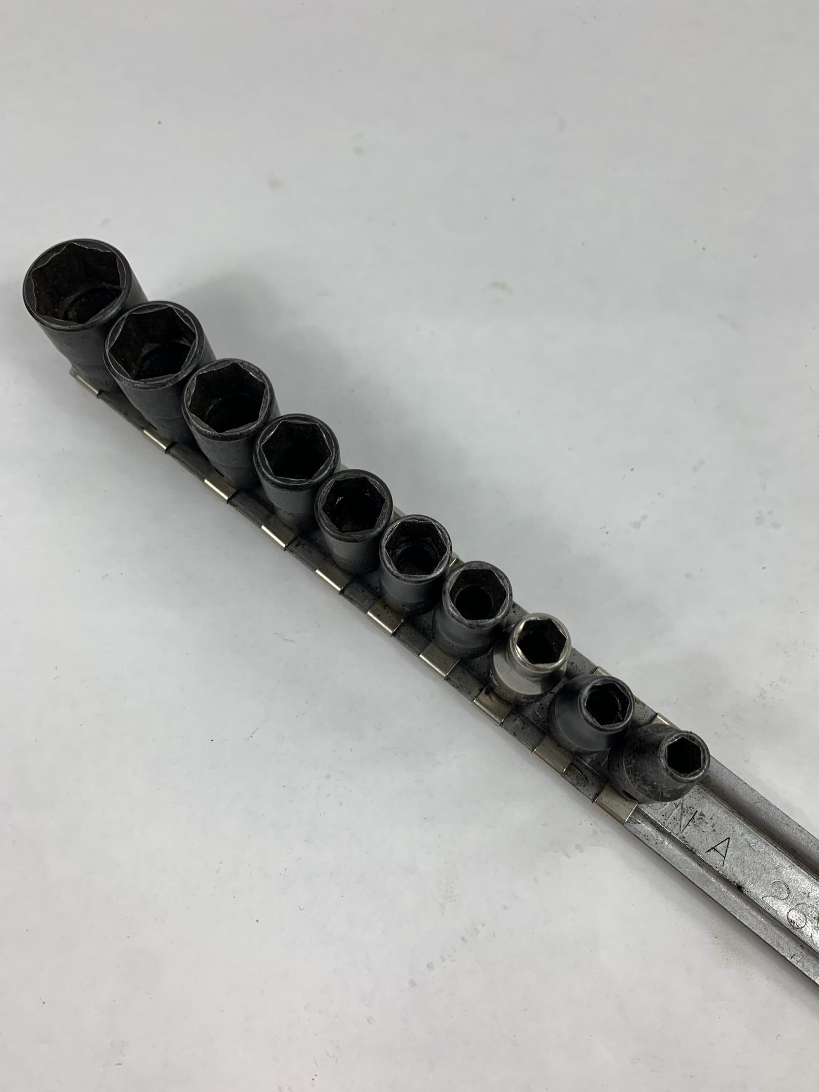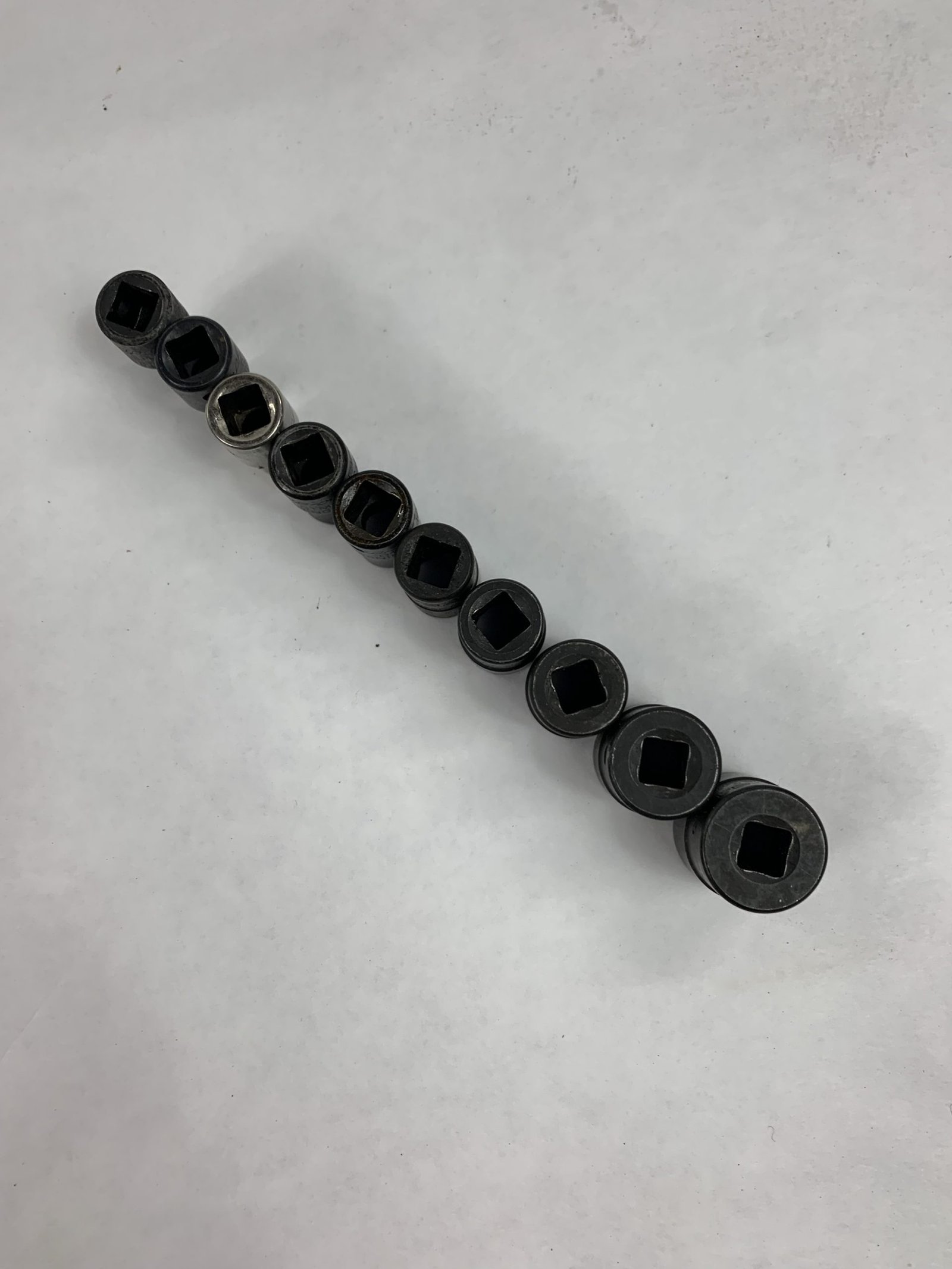 10 pc 1/4″ Drive 6-Point SAE Flank Drive® Industrial Shallow Socket Set, 1/4 is Chrome, Used – Good