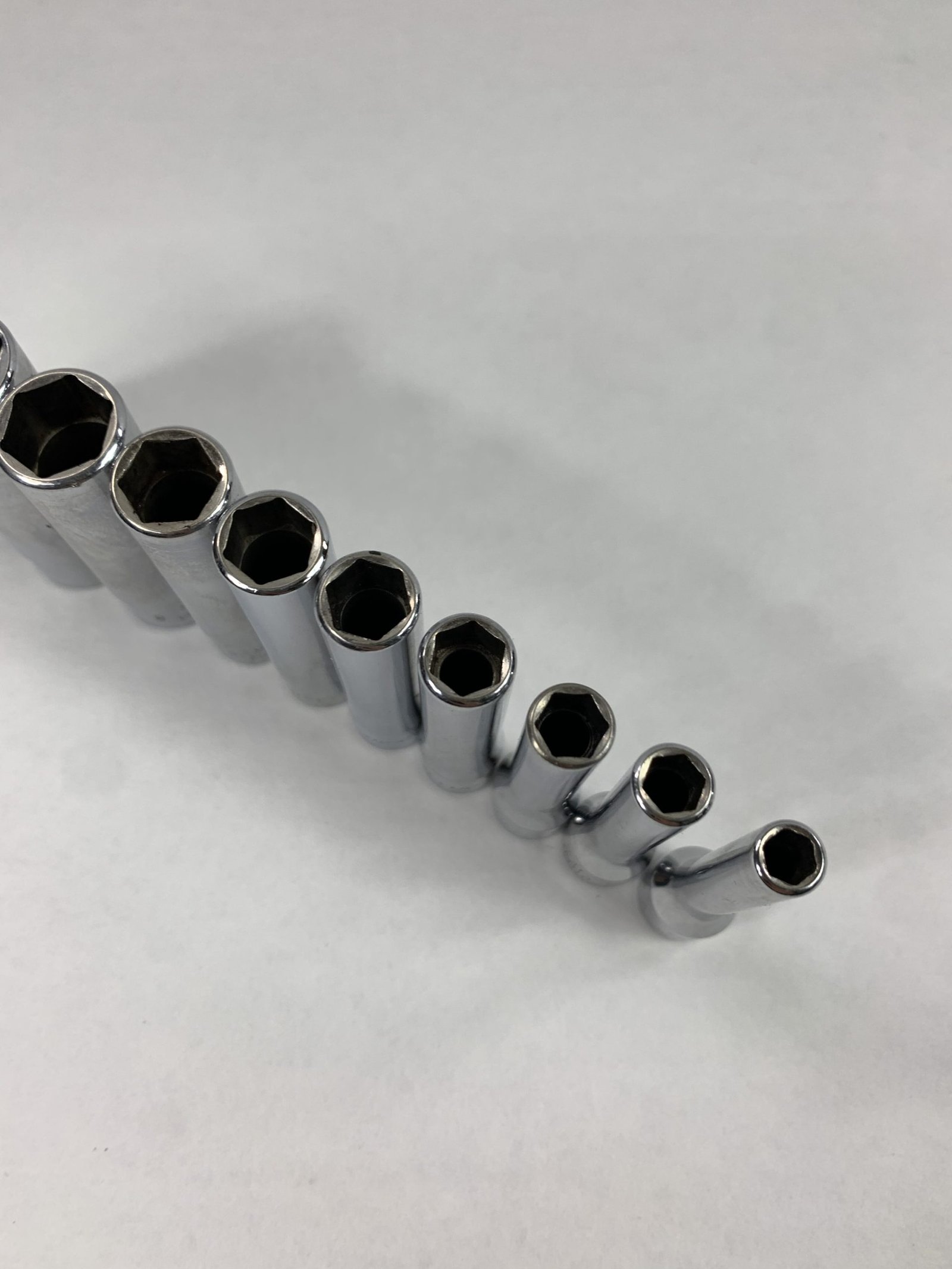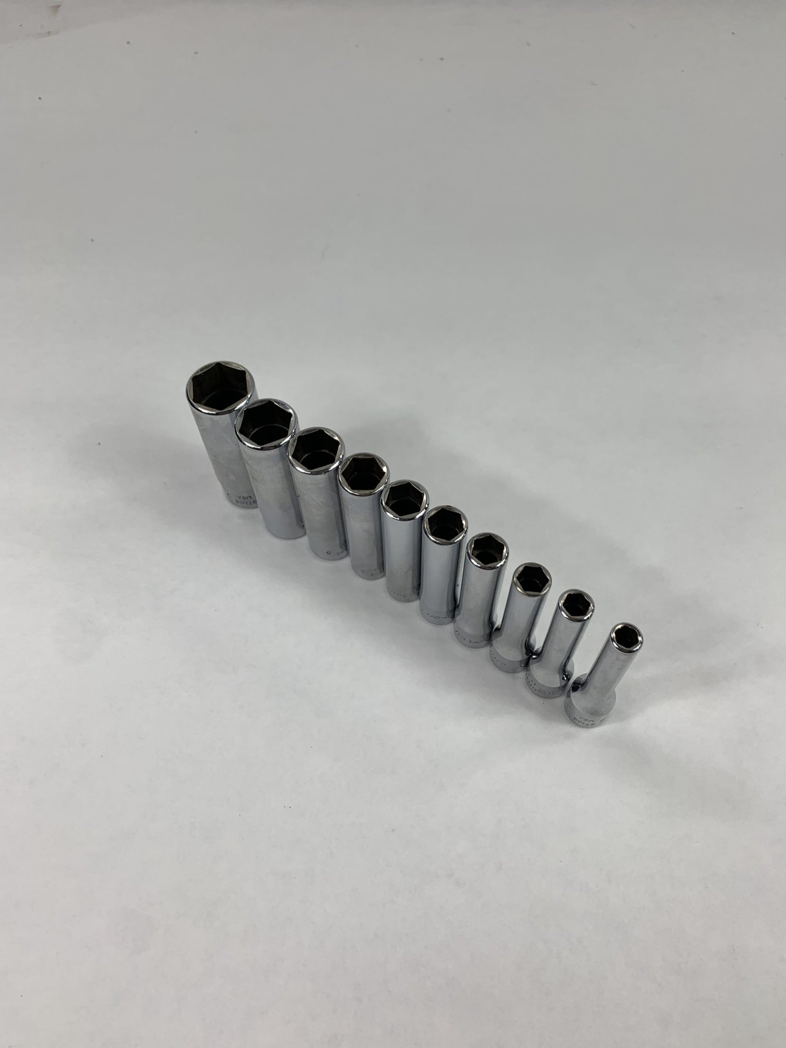 10 pc 1/4″ Drive 6-Point SAE Flank Drive Deep Socket Set (3/16 – 9/16″), No Tray, Used – Very Good