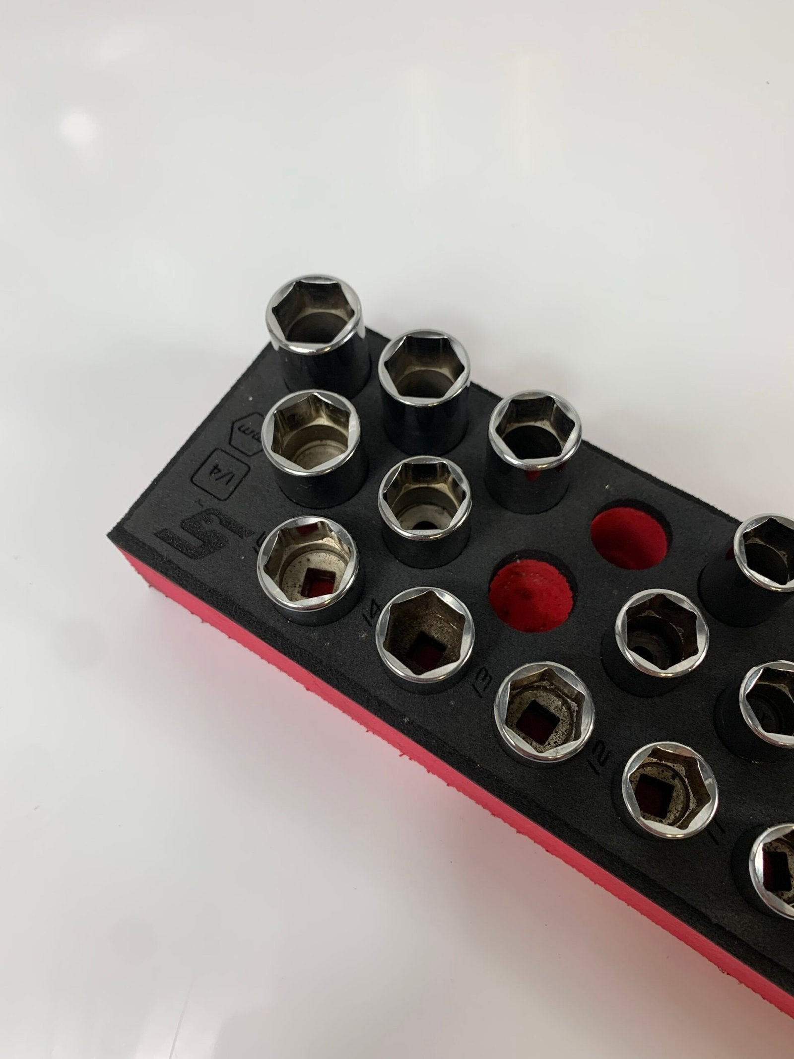 42 pc 1/4″ Drive 6-Point Metric Flank Drive® Socket Set with PRO-FI™ Organization (4–15 mm), Red, Missing Pieces(5&7mm Shallow, 13mm Semi-Deep, 12mm Deep) , Used – Very Good