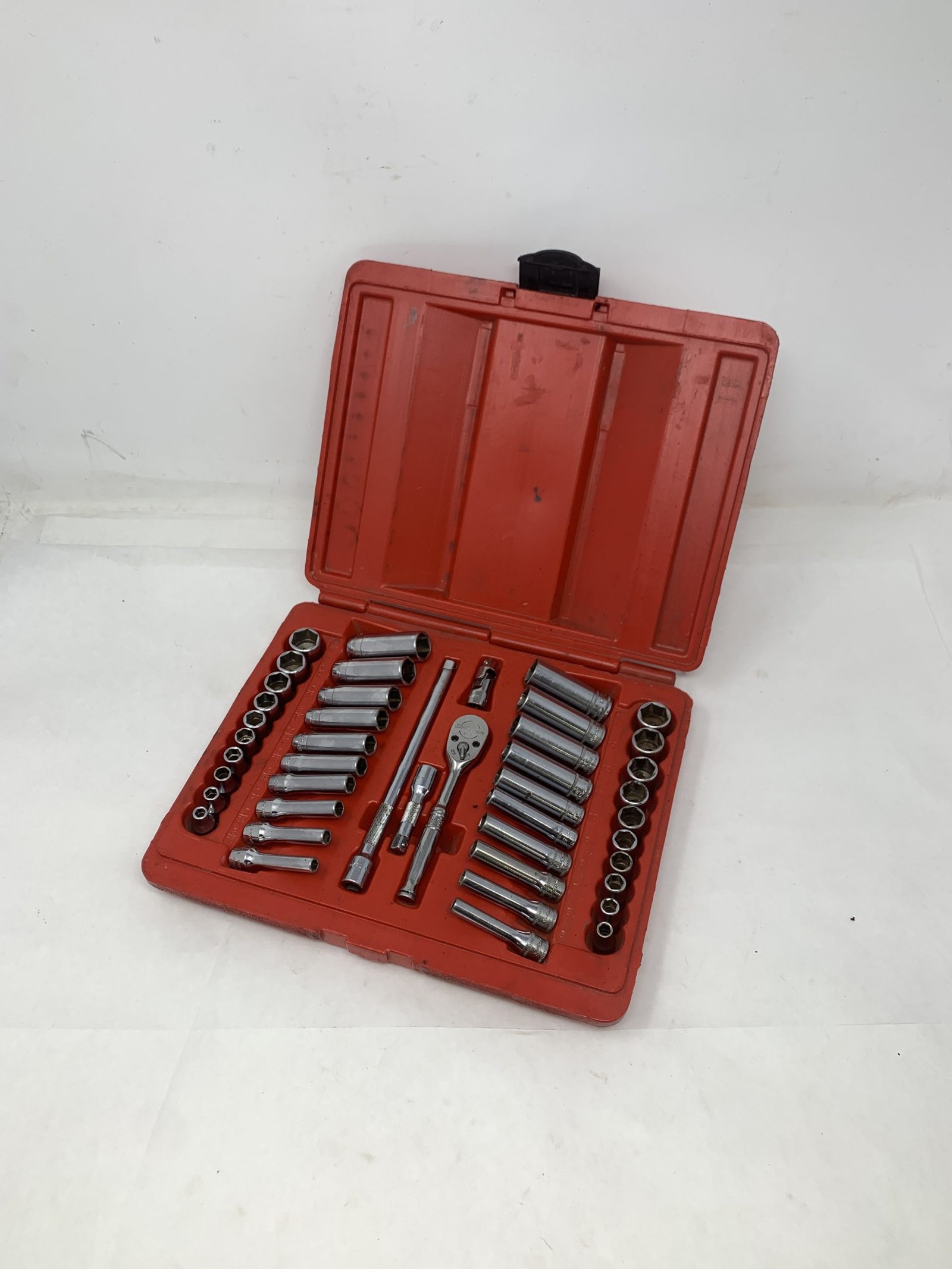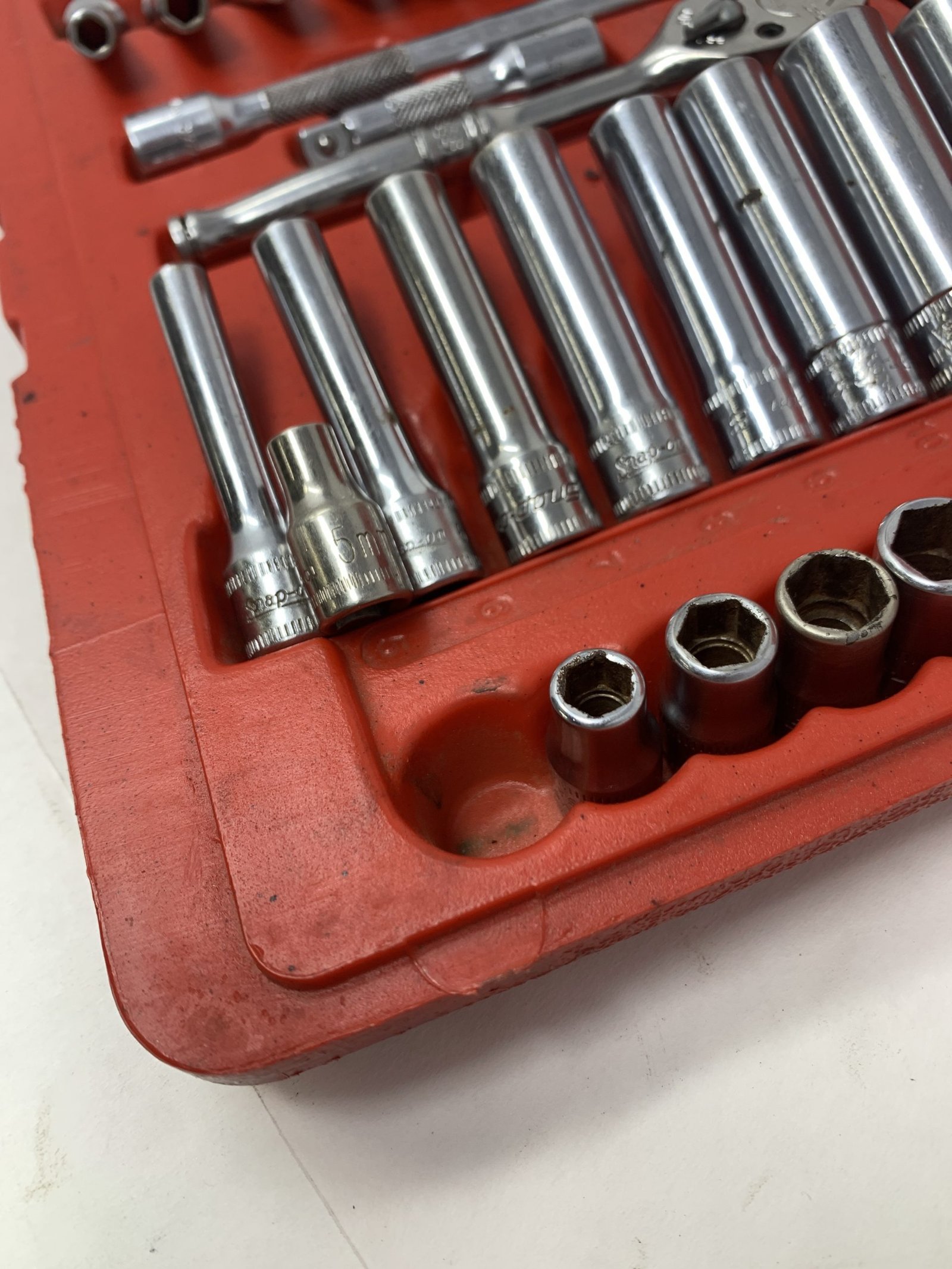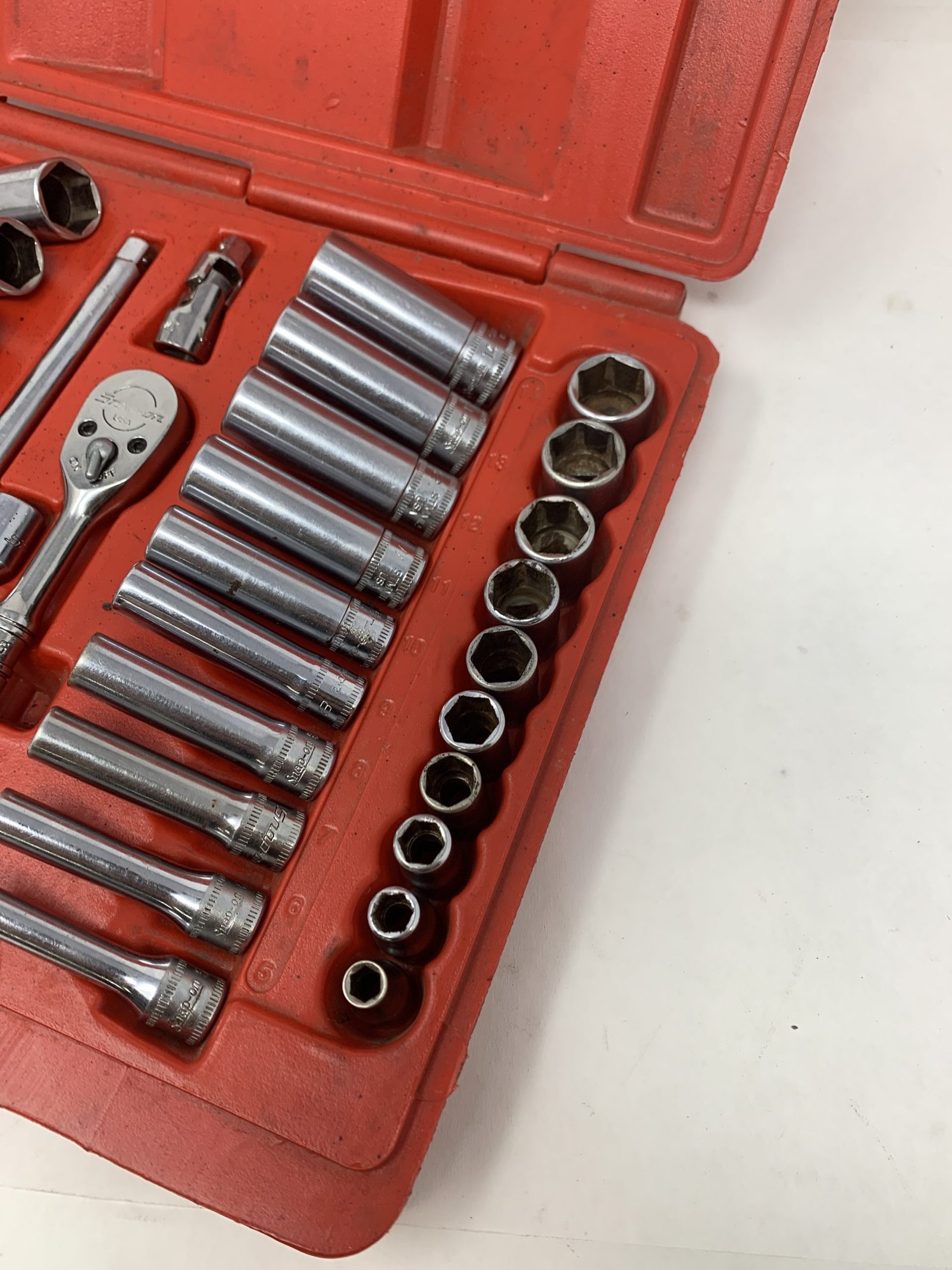 44 pc 1/4″ Drive 6-Point Metric/ SAE General Service Set , Some of the metric sockets are mixed logo and worn, 5mm is Craftsman