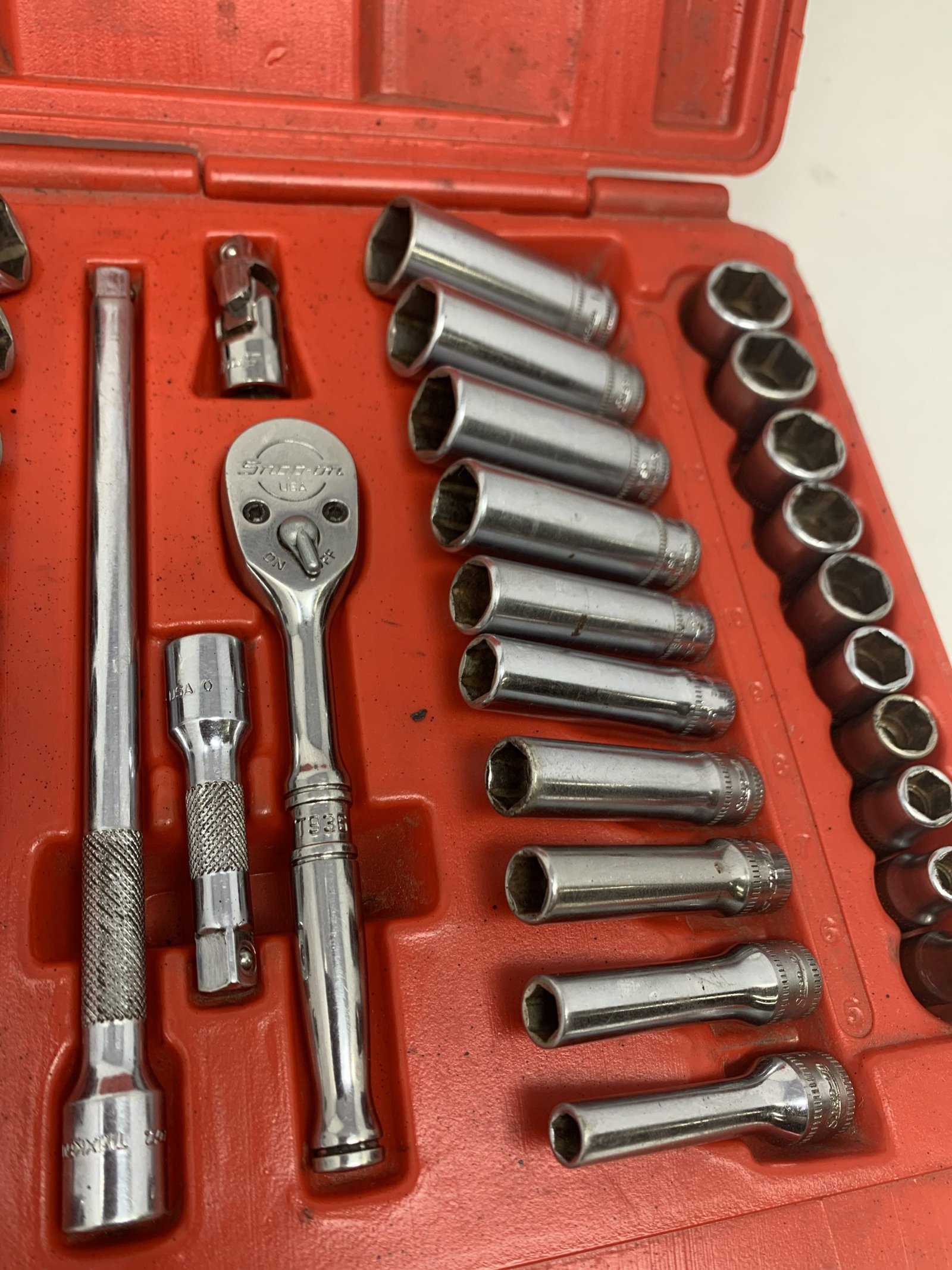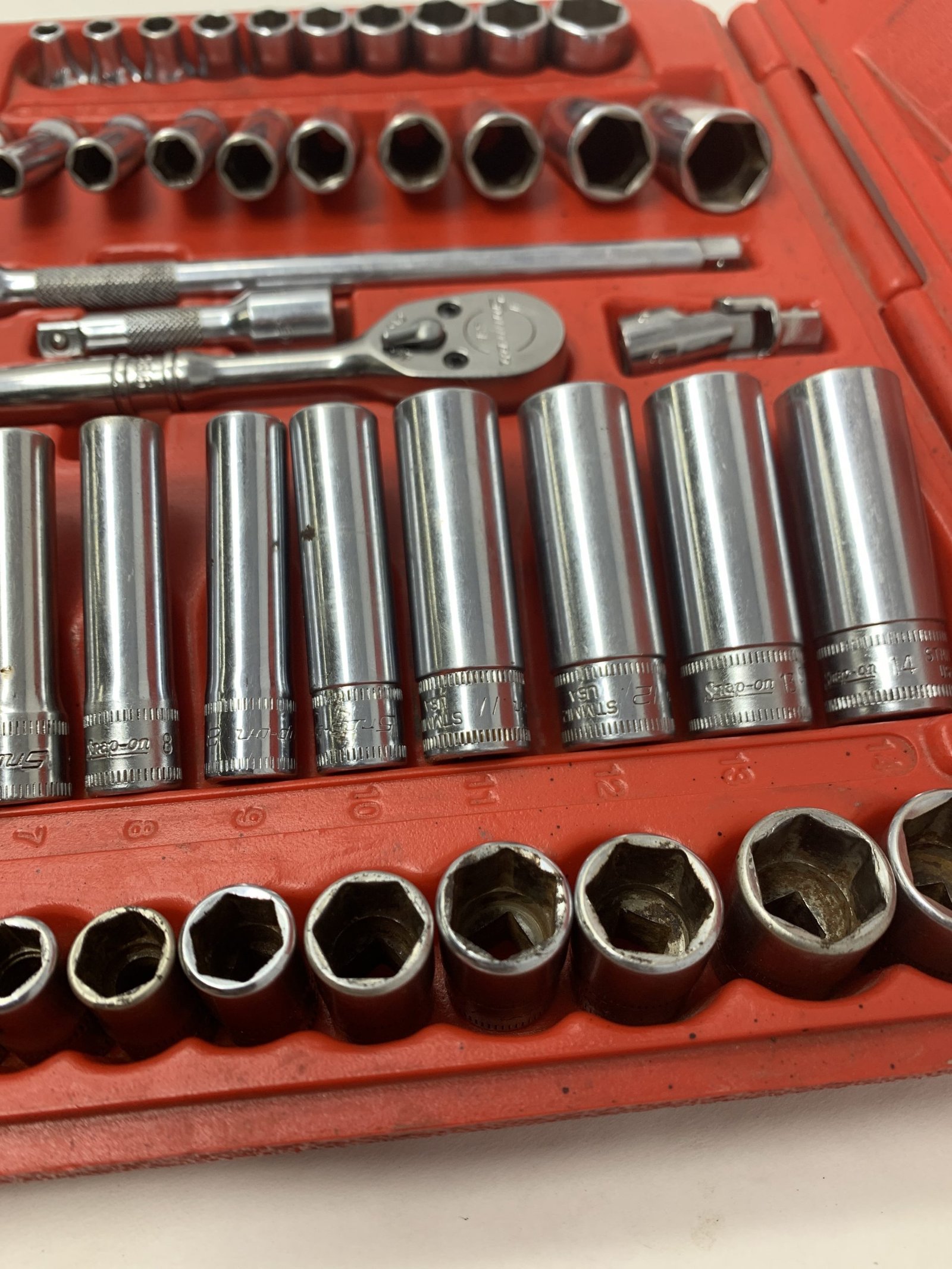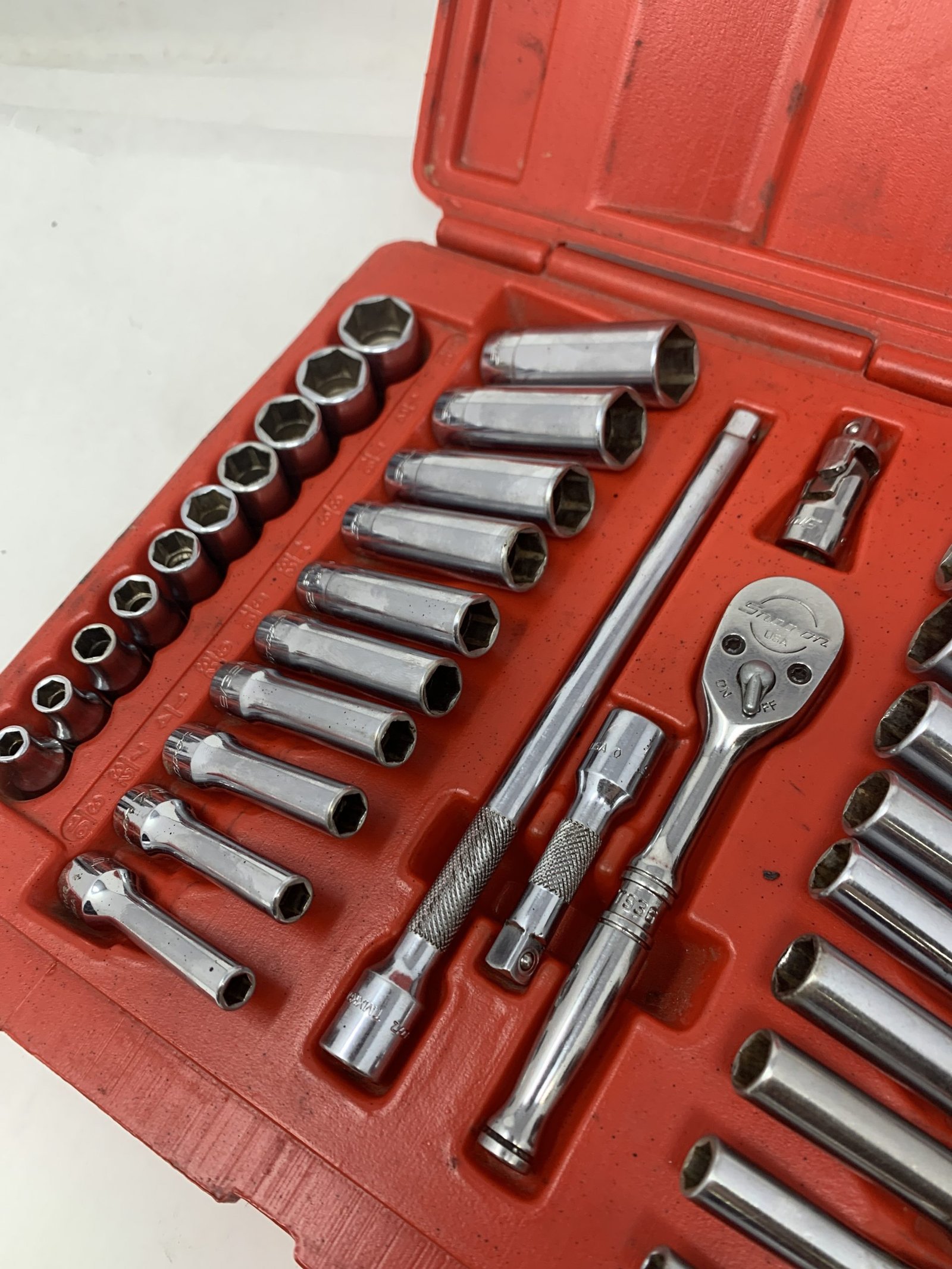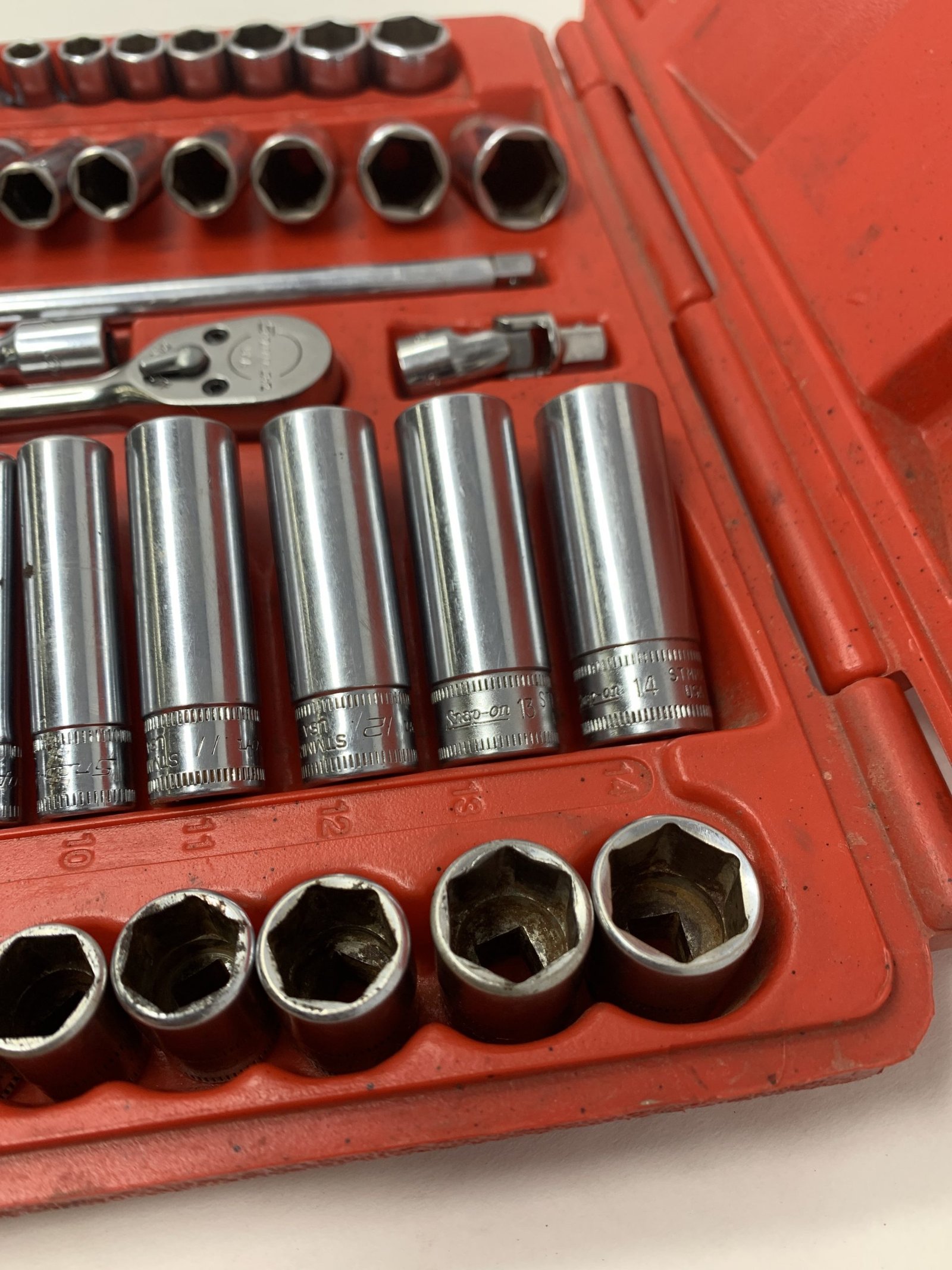 44 pc 1/4″ Drive 6-Point Metric/ SAE General Service Set , Some of the metric sockets are mixed logo and worn, 5mm is Craftsman