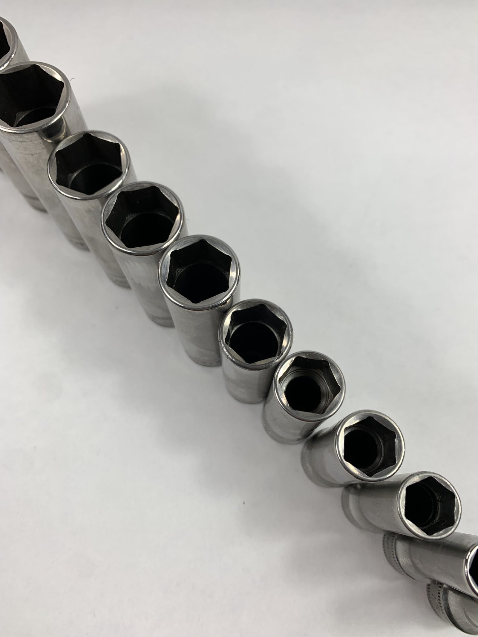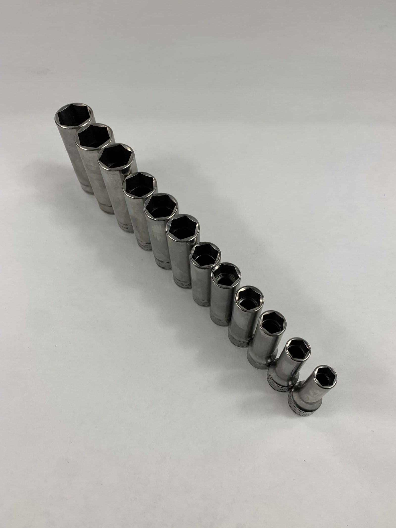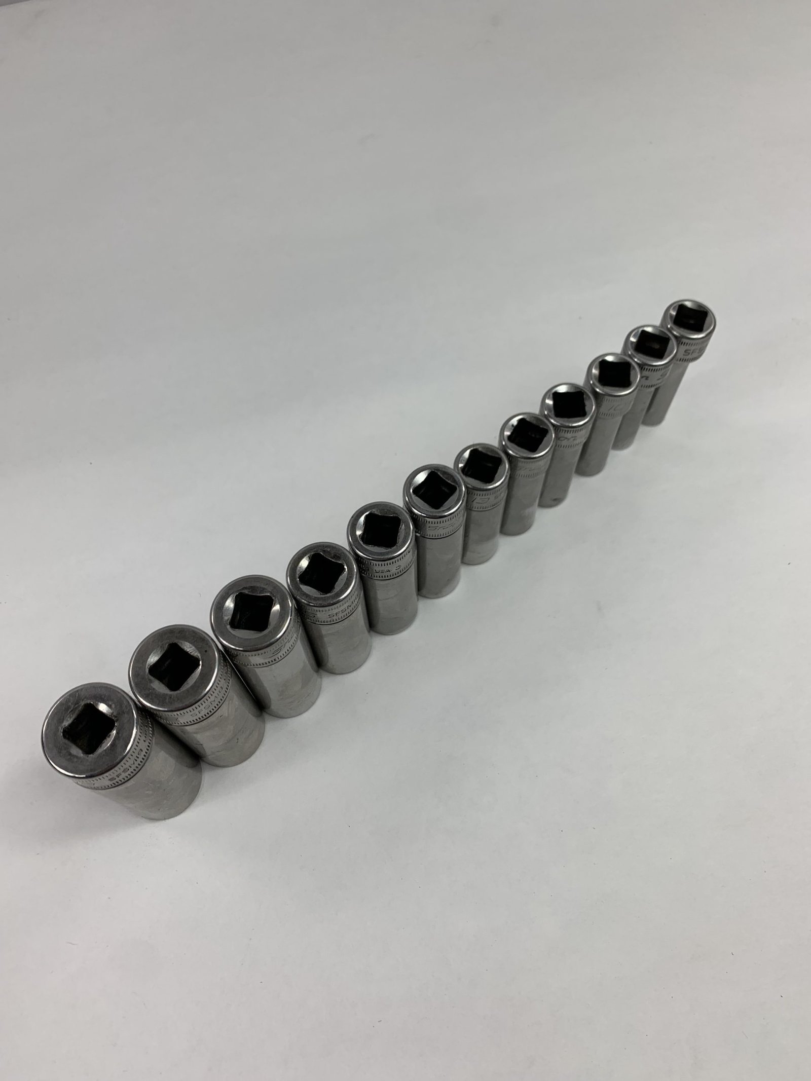 12 pc 3/8″ Drive 6-Point Metric Flank Drive® Deep Socket Set (8-19 mm), No Tray, Used – Good