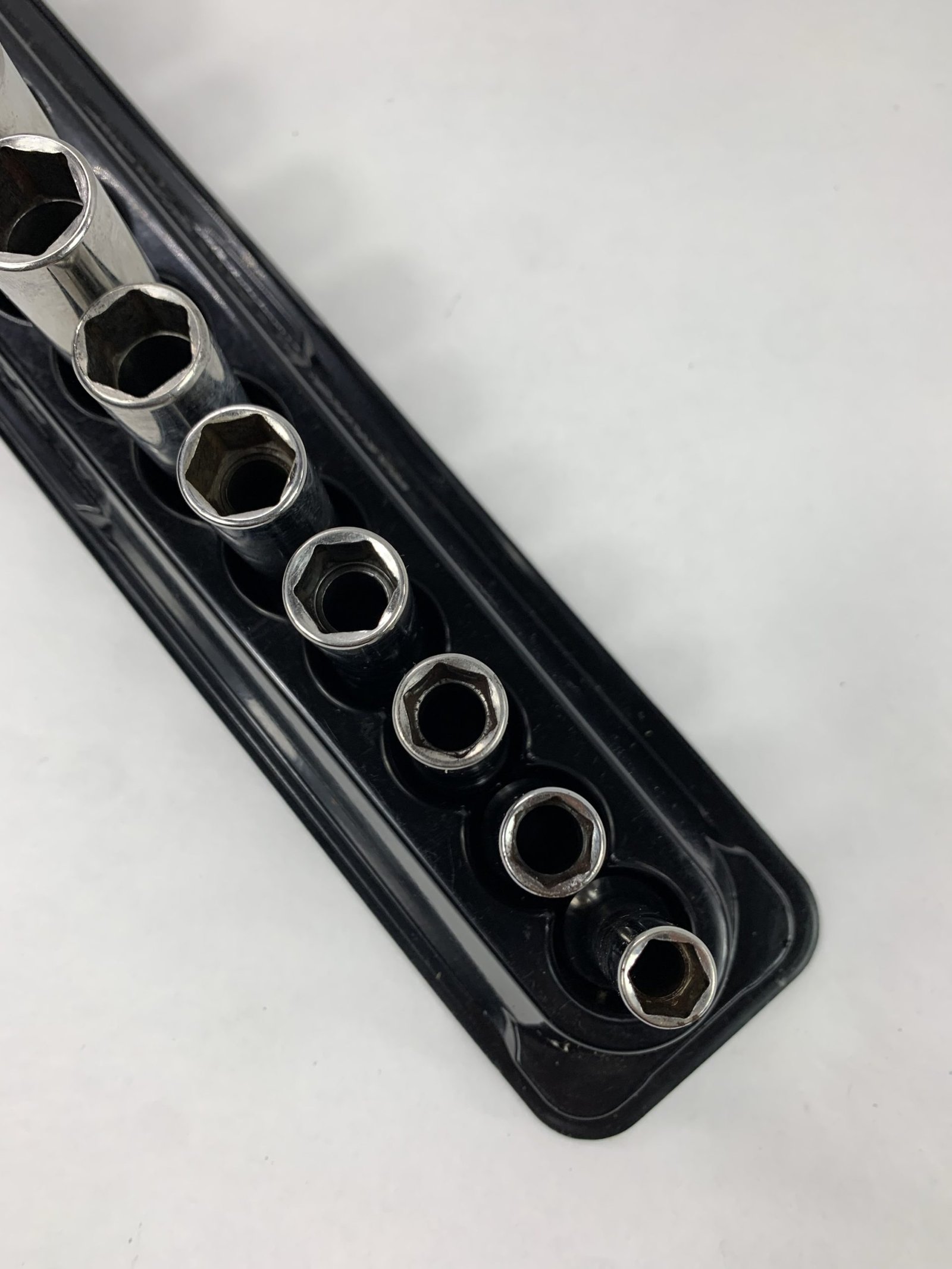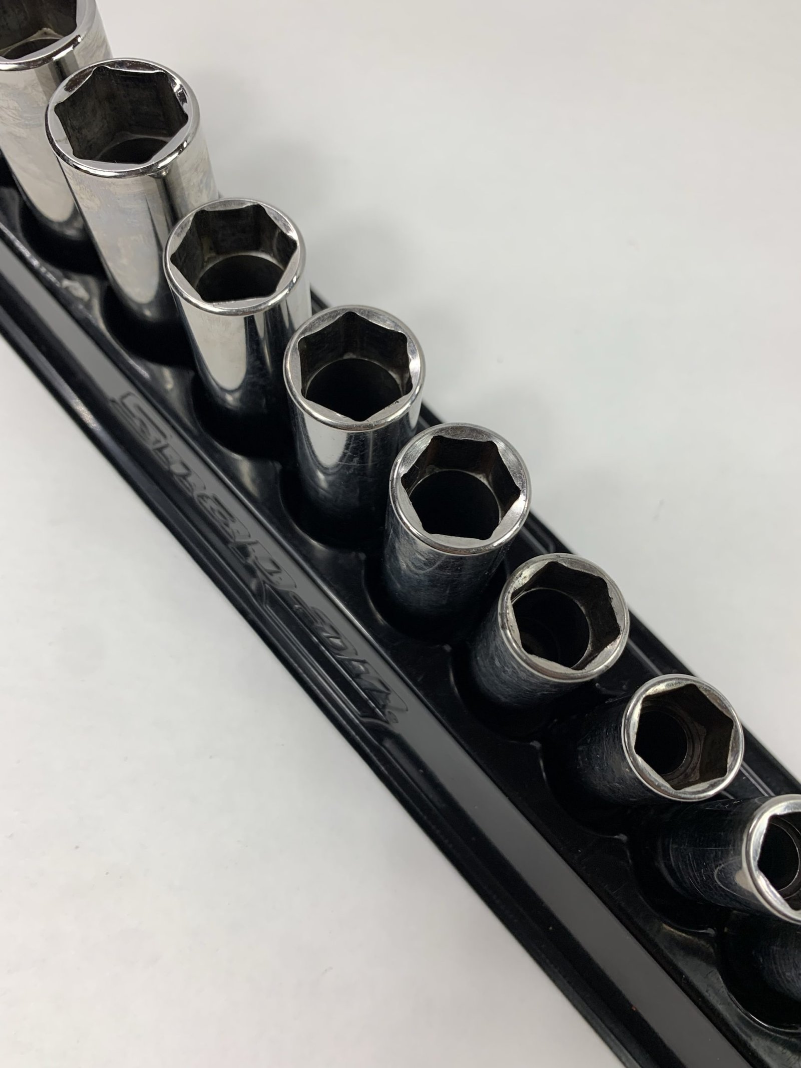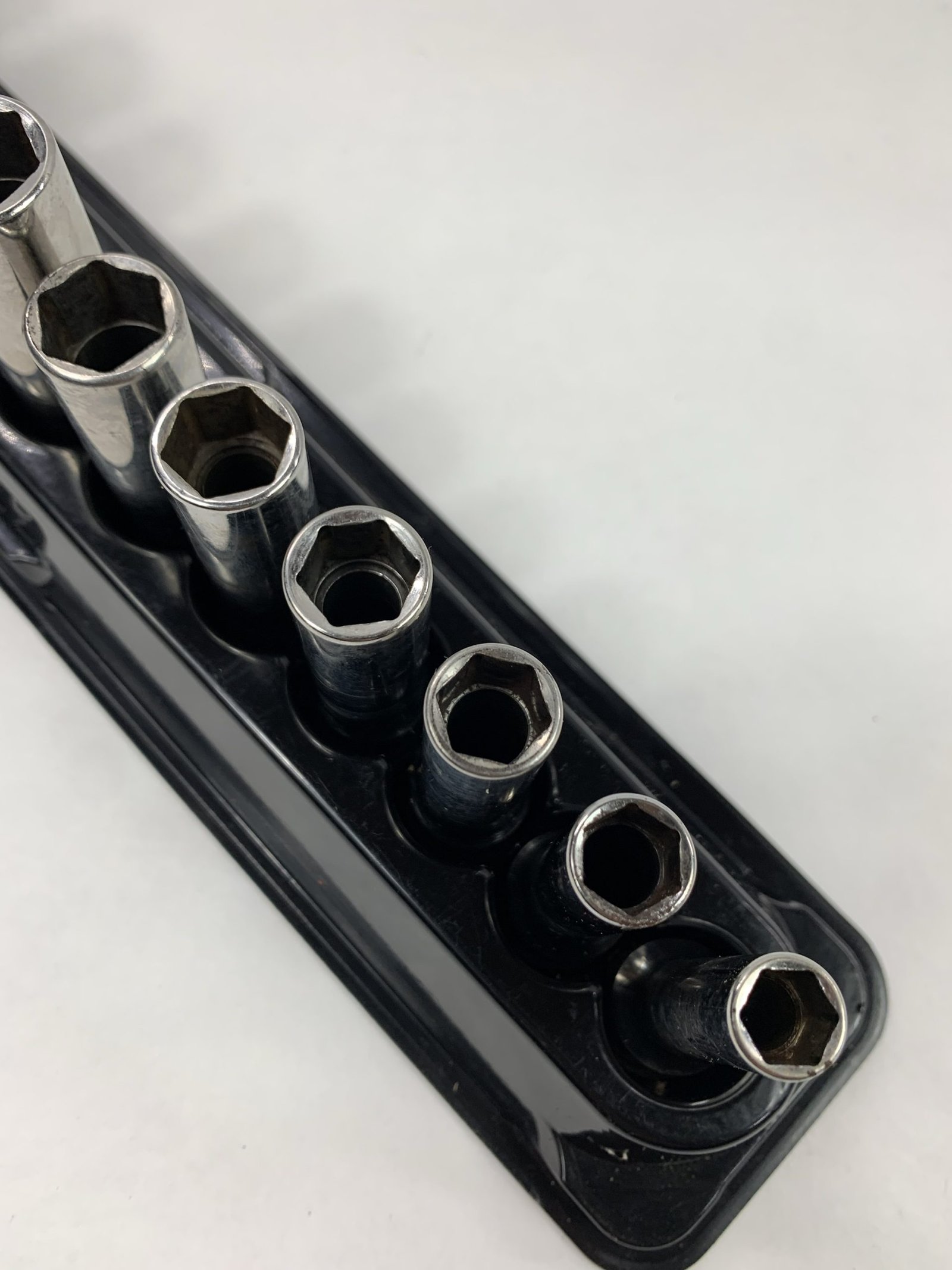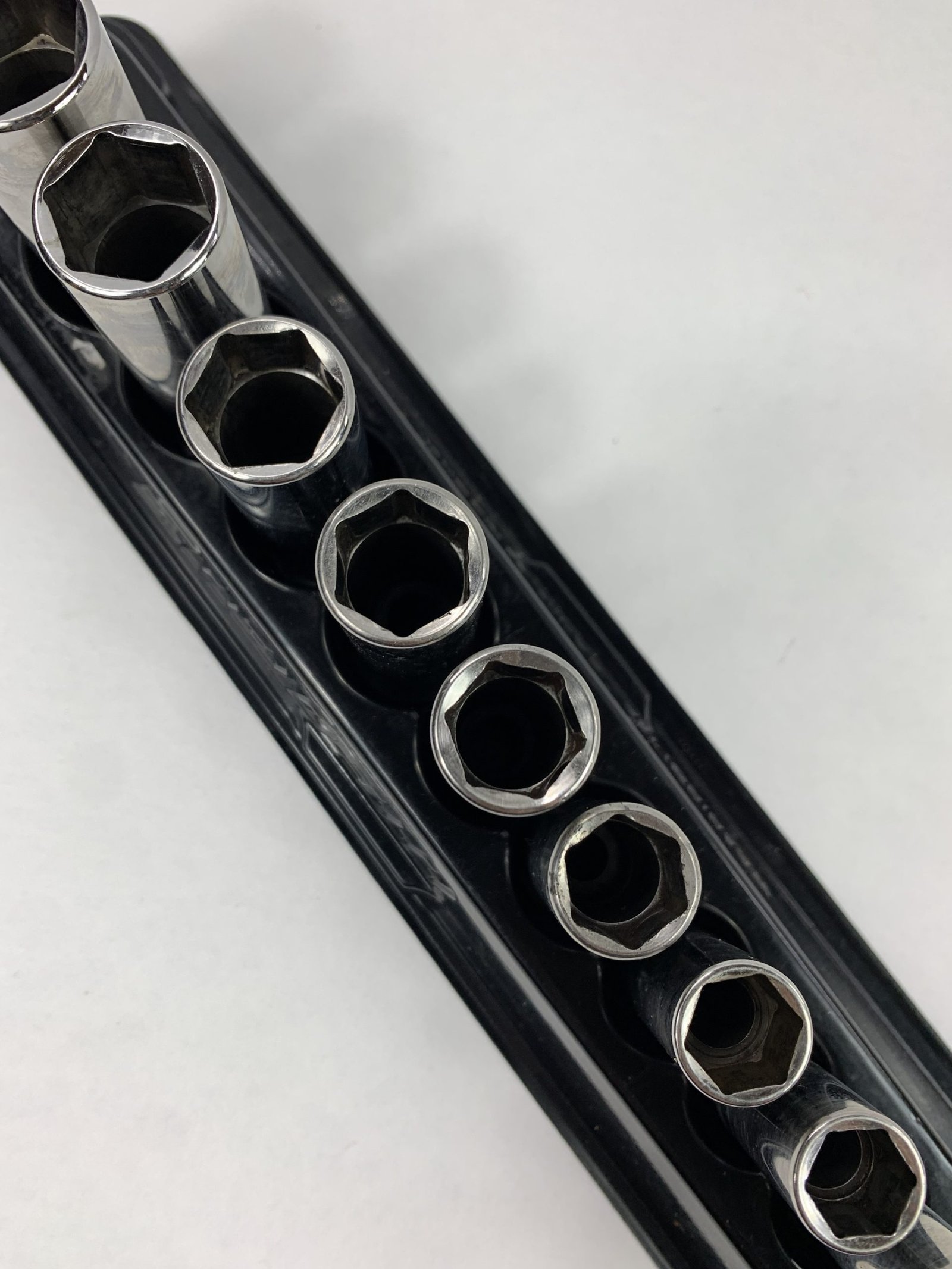 12 pc 3/8″ Drive 6-Point Metric Flank Drive® Deep Socket Set (8-19 mm), One Piece Factory Defect (Not Stamped), Includes Mag Tray, Used – Very Good