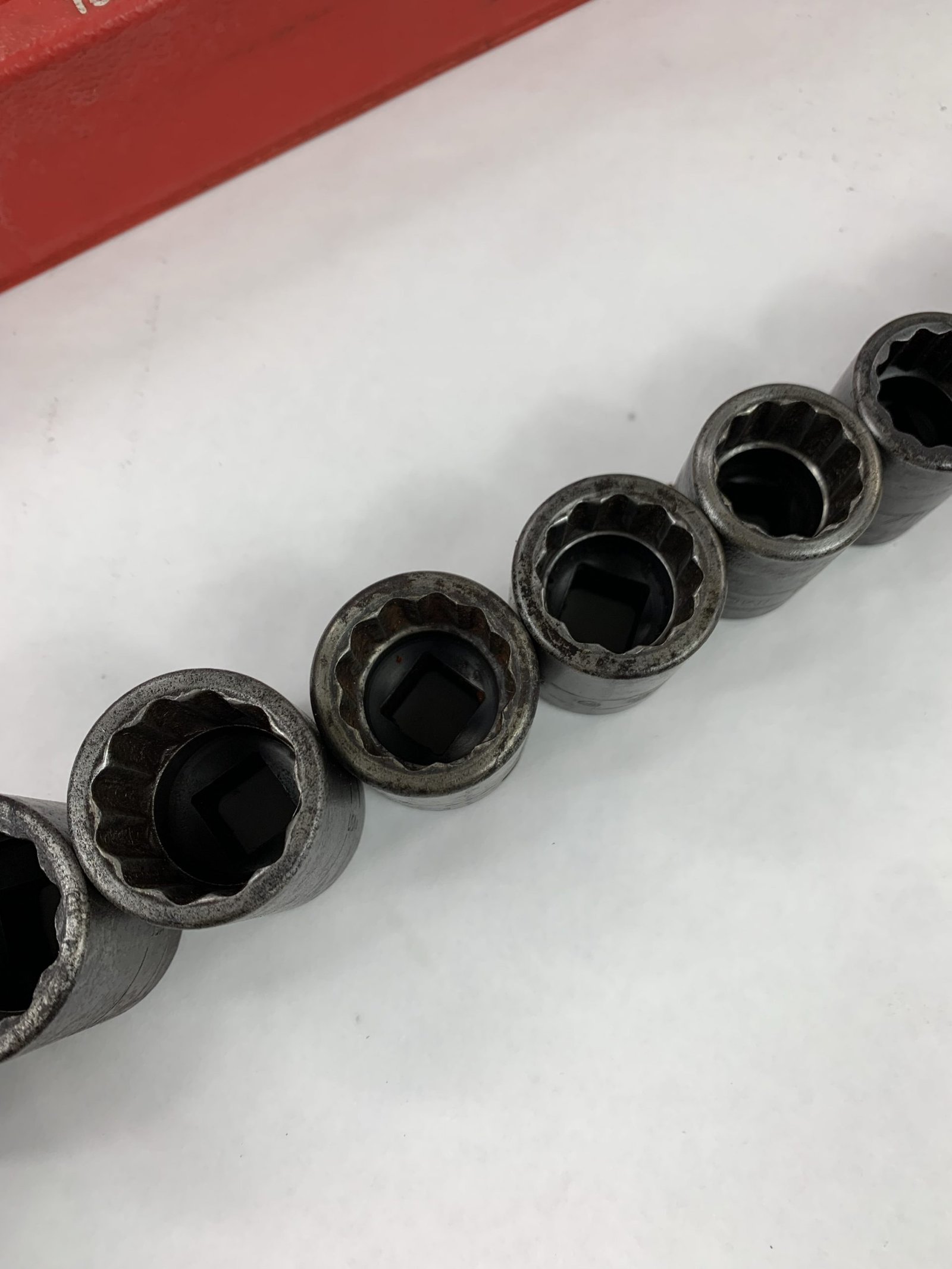 13 pc 1/2″ Drive 12-Point SAE Flank Drive® Shallow Impact Socket Set (3/8-1-1/4″), With Tray (Slight Damage), Used – Good