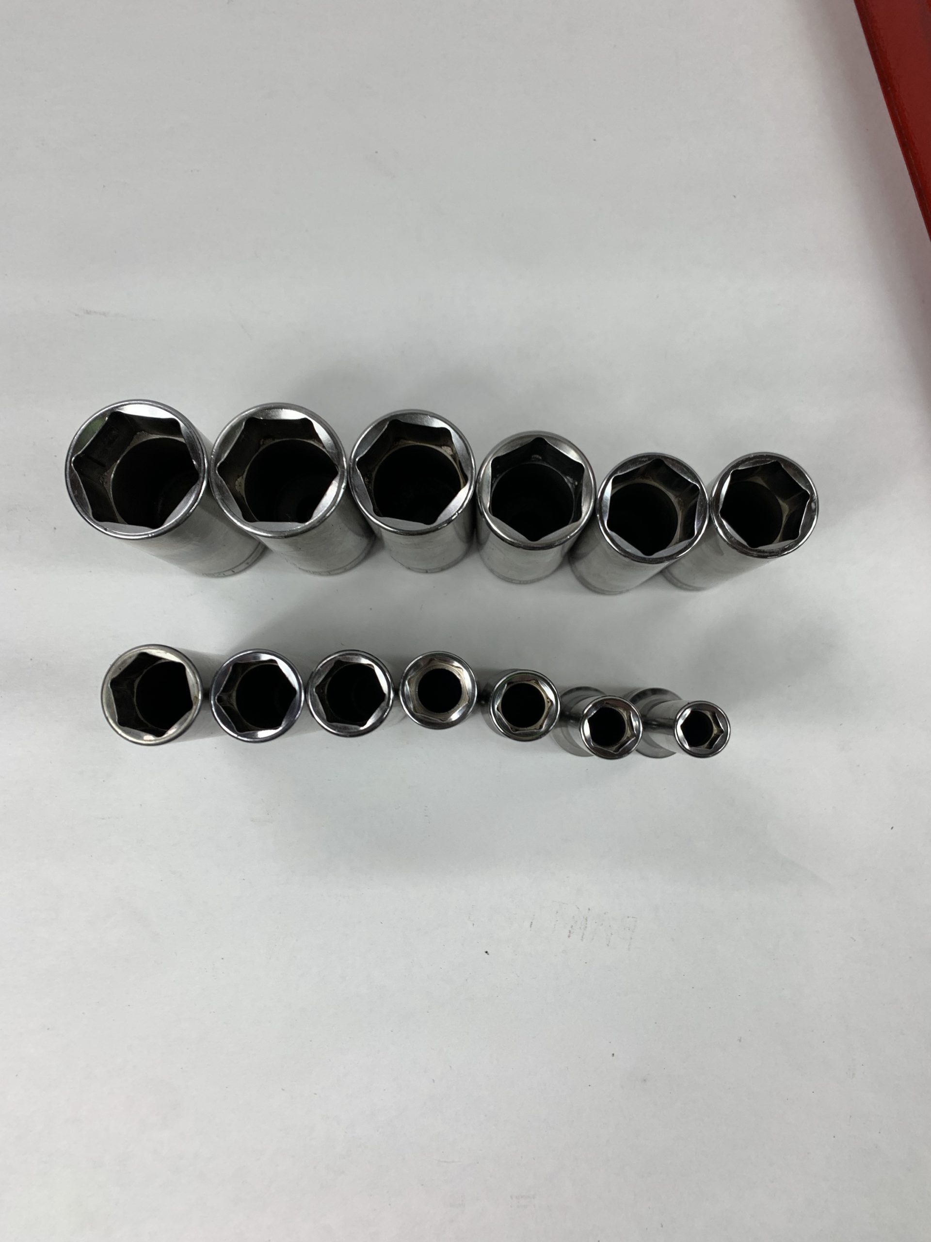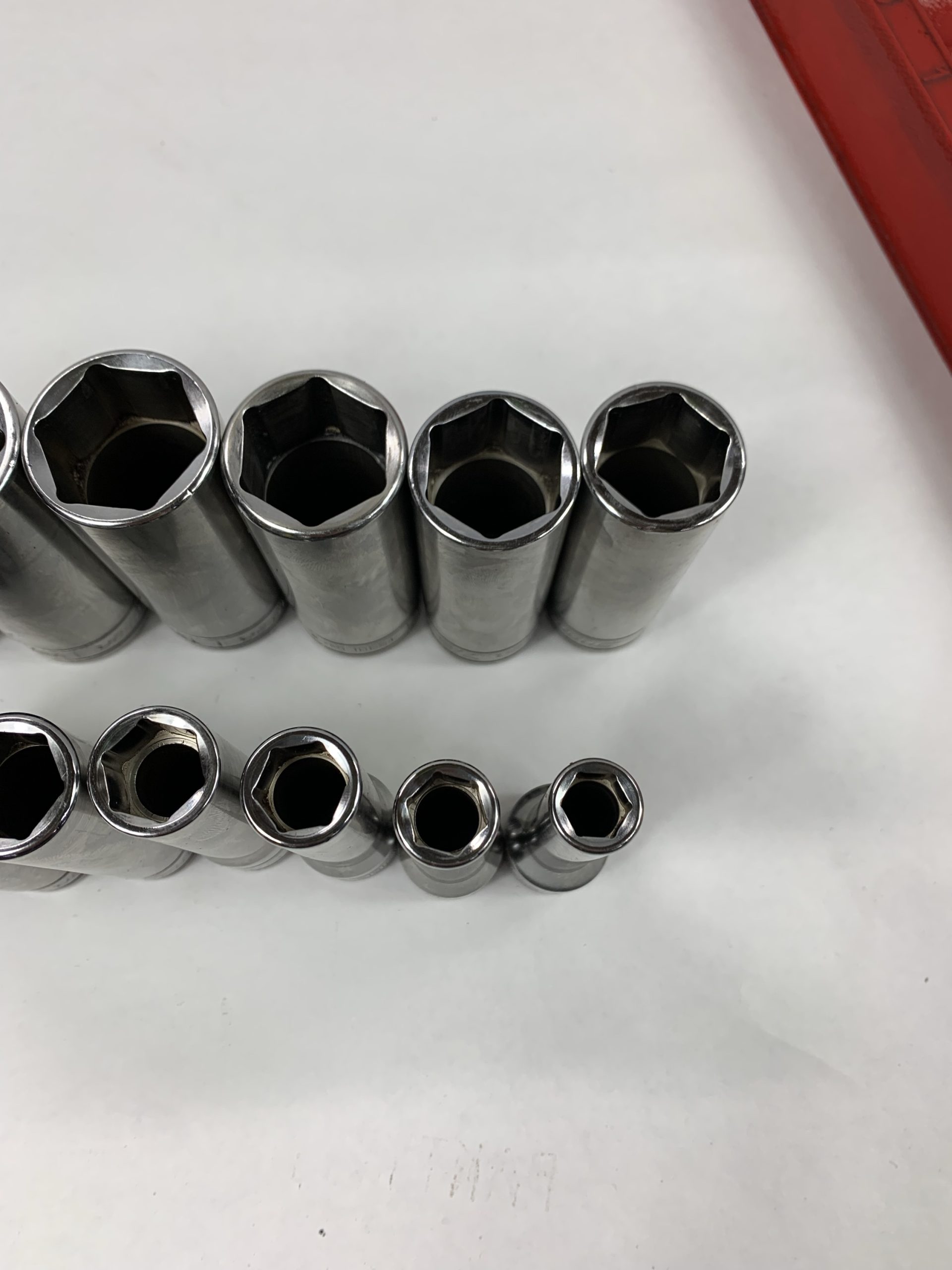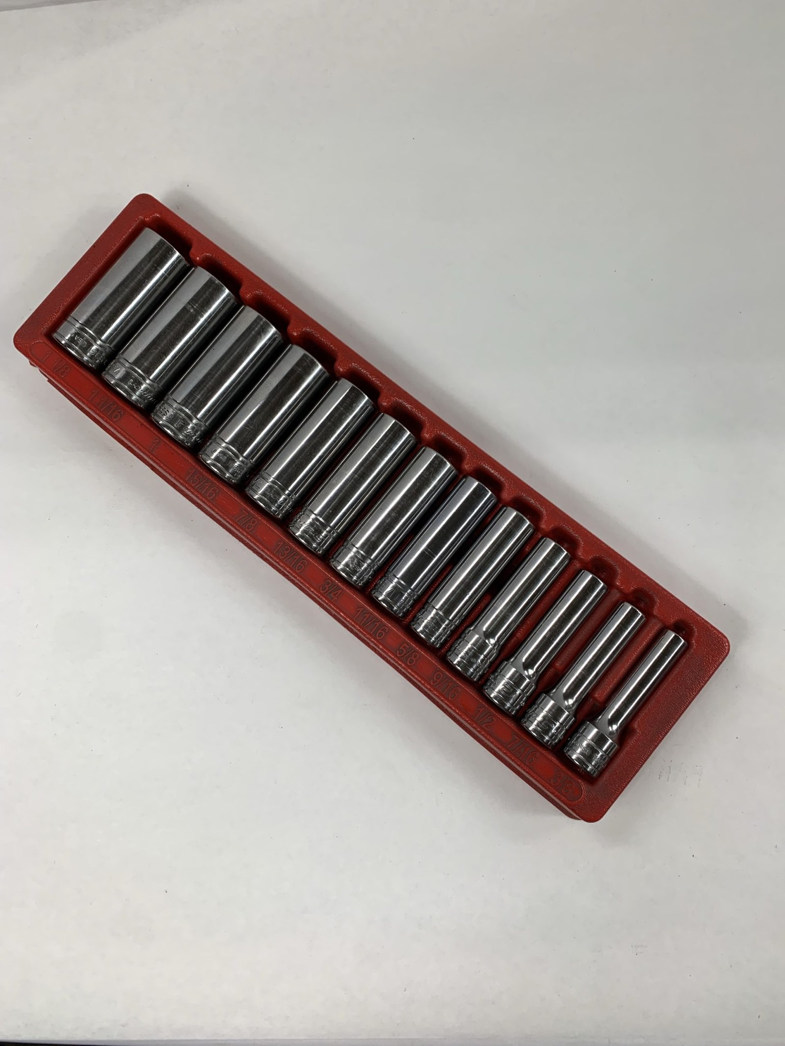 12 pc 1/2″ Drive 6-Point SAE Flank Drive Deep Socket Set (1/2 to 1 – 1/8″), With Tray, Used – Very Good