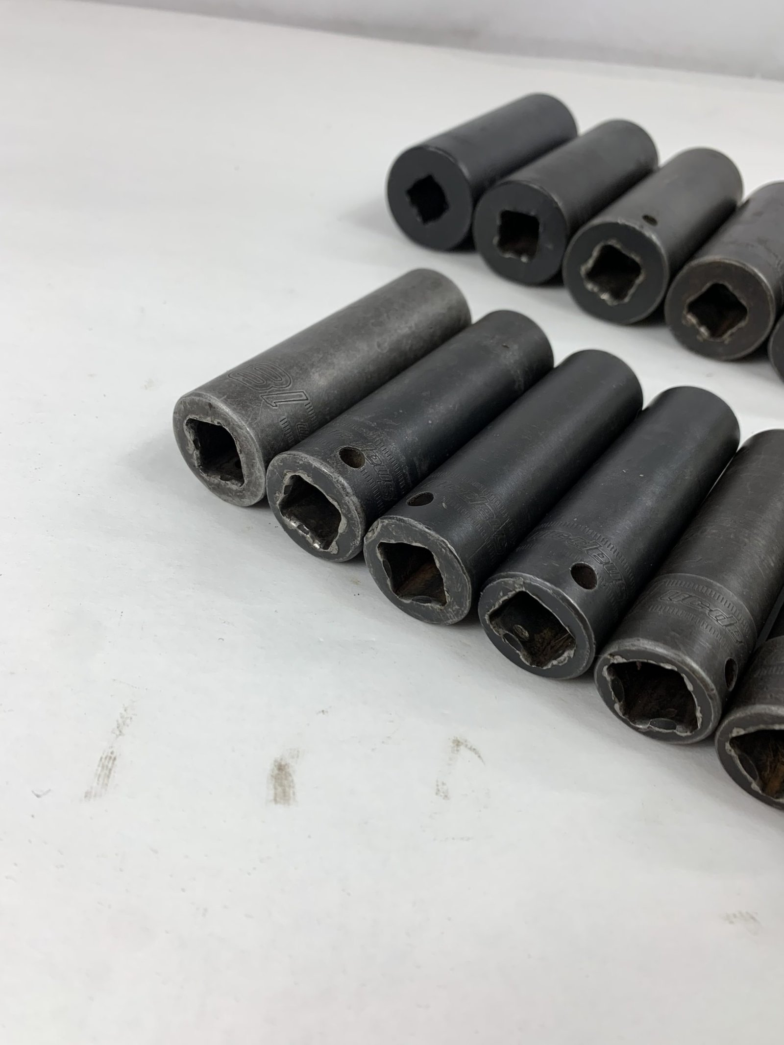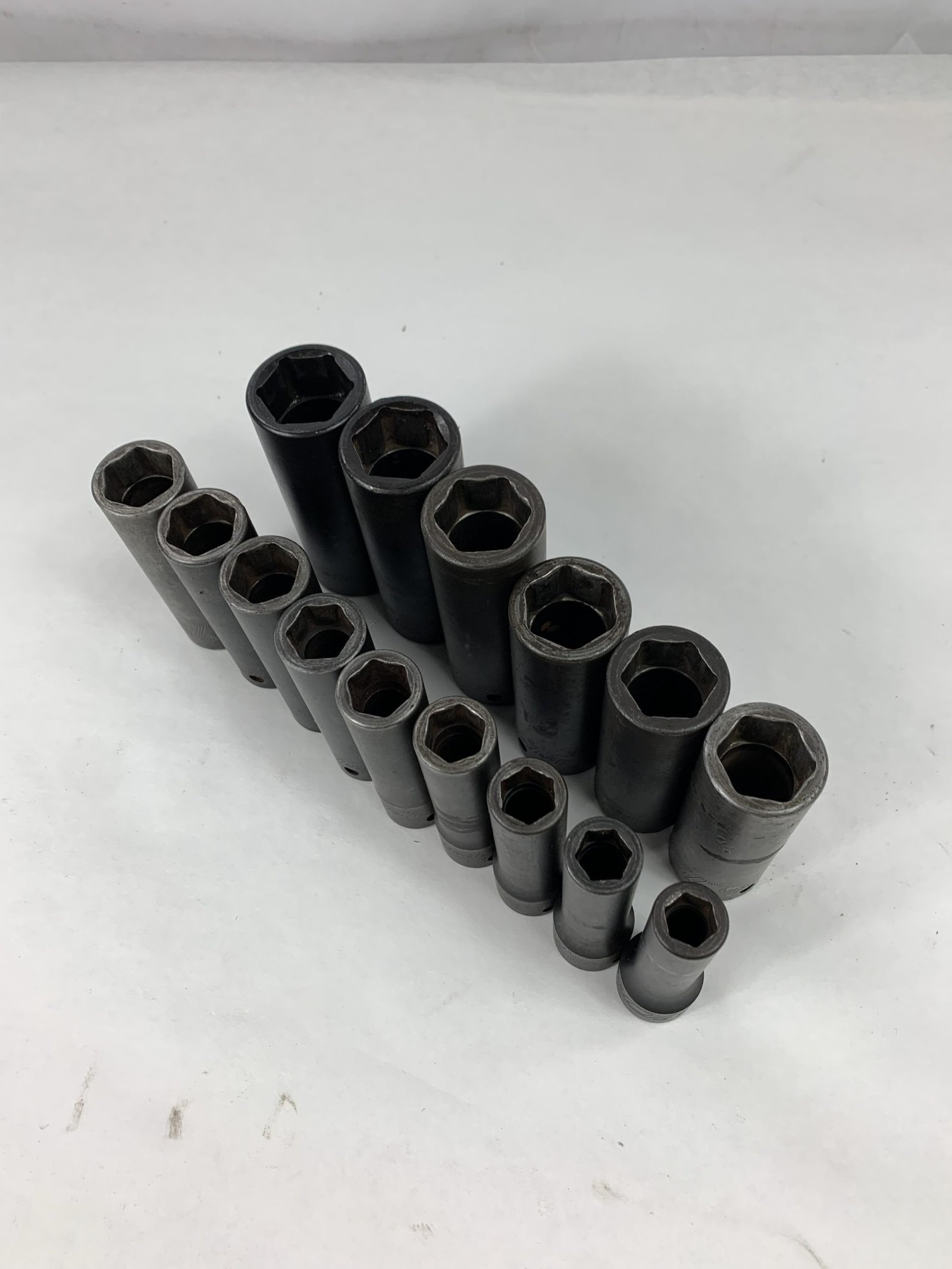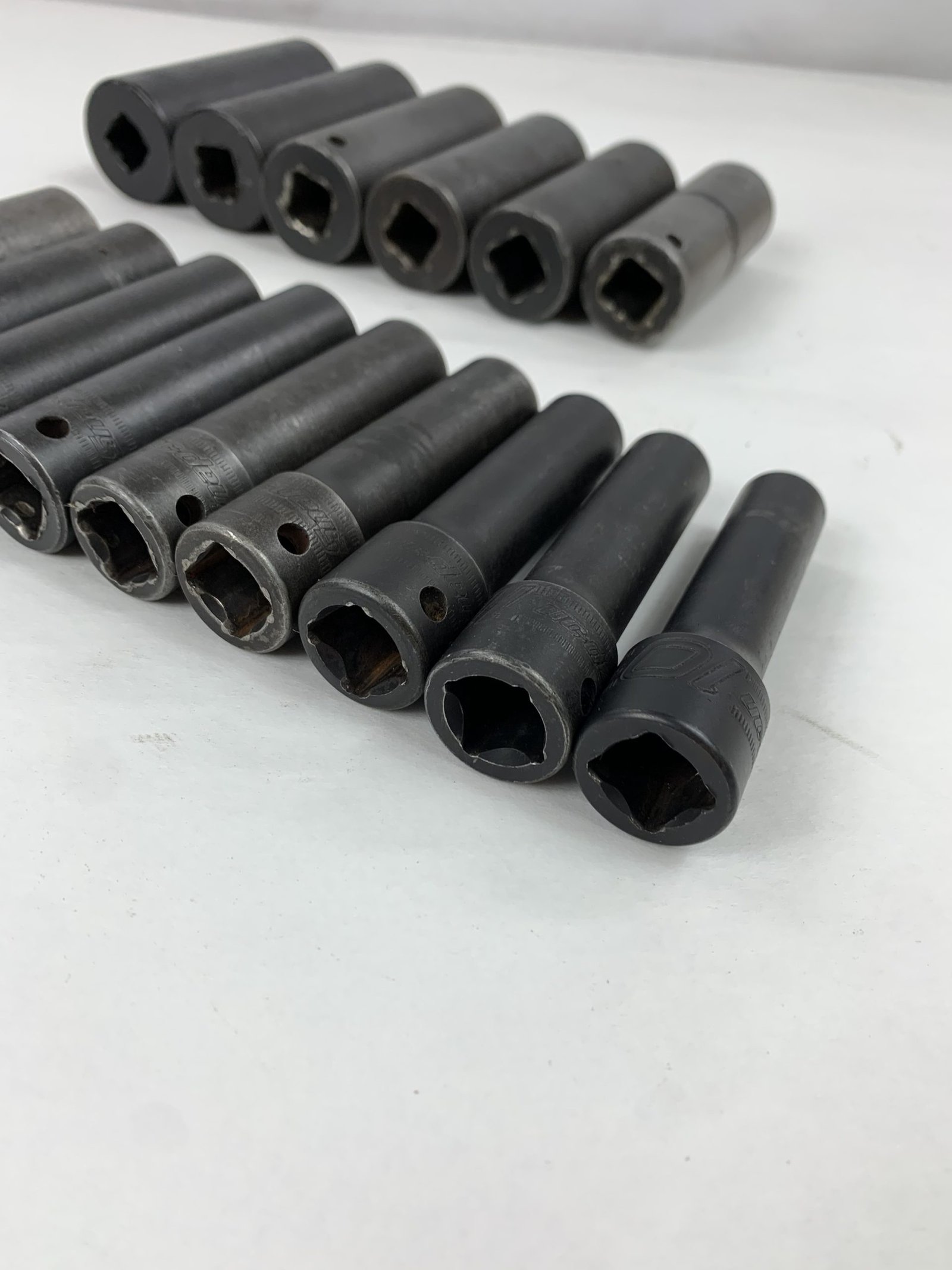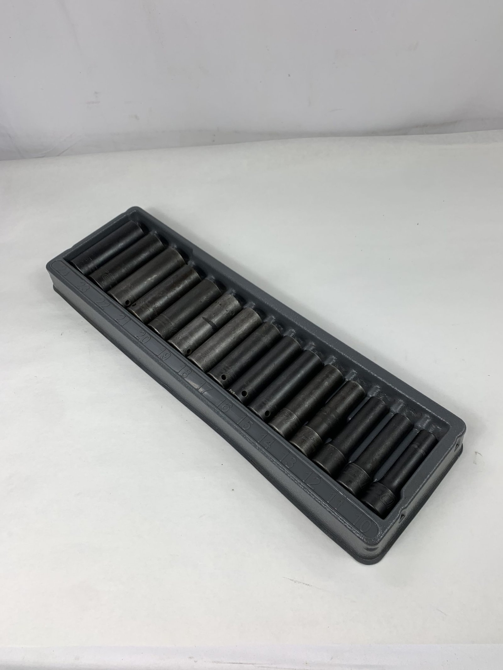 15 pc 1/2″ Drive 6-Point Metric Flank Drive Deep Impact Socket Set (10-24 mm), With Tray, Used – Good