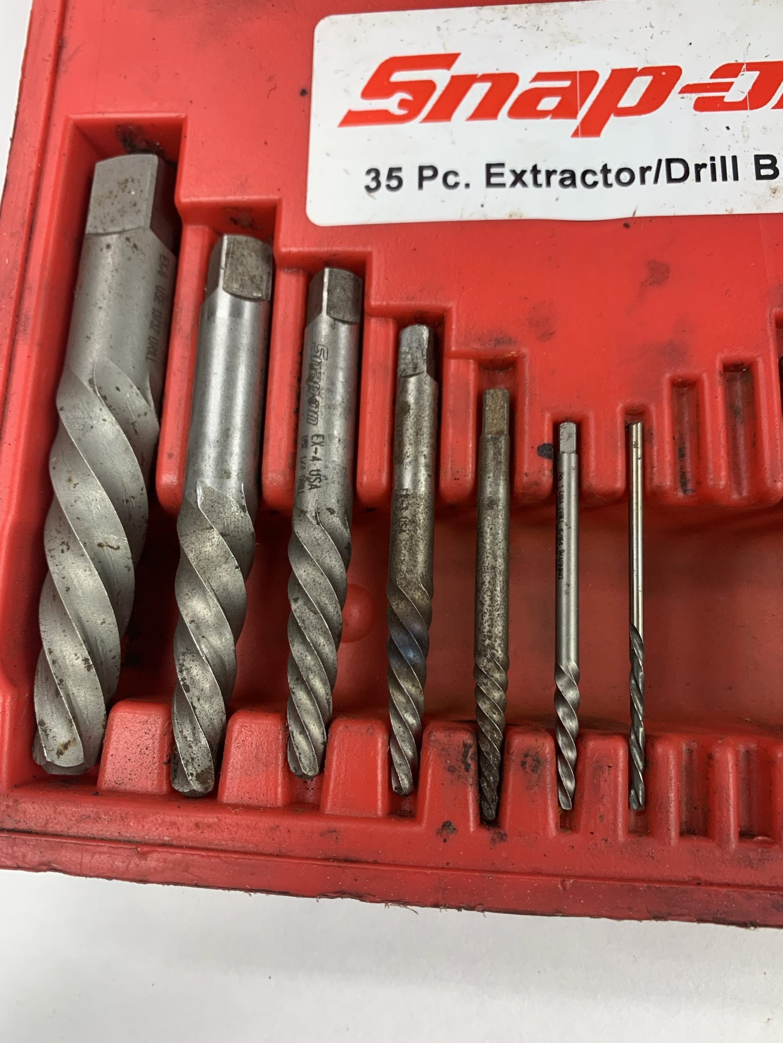 35 Piece Screw Extractor/LH Cobalt Drill Bit Set, Incomplete (Missing 4 Piece/1 Broken), Used – Good