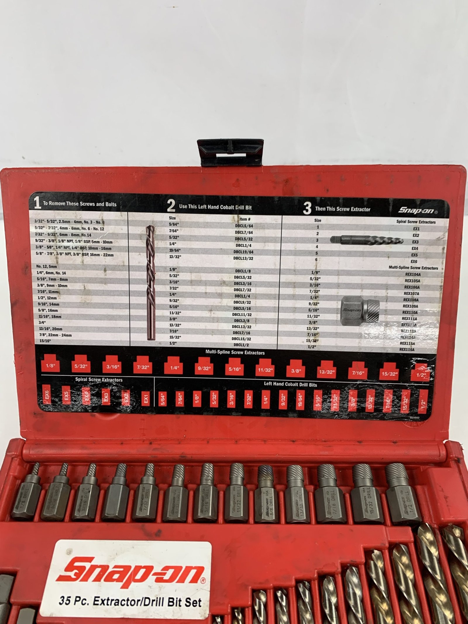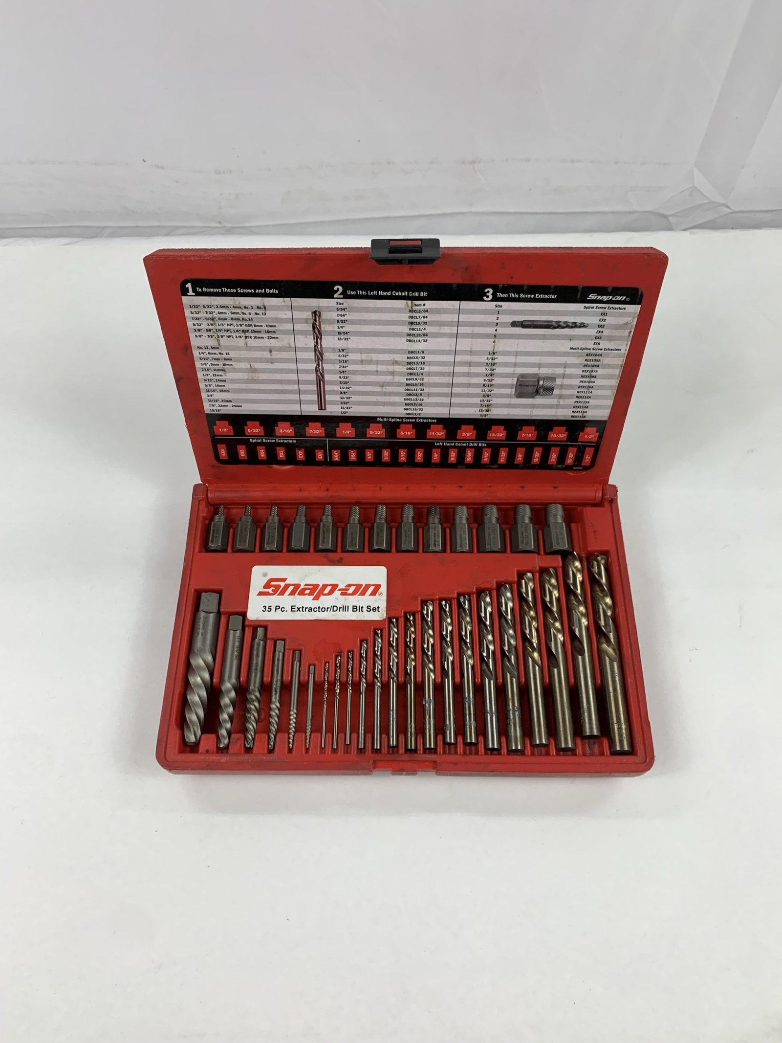 35 Piece Screw Extractor/LH Cobalt Drill Bit Set, Missing (1) Drill Bit, Used – Very Good