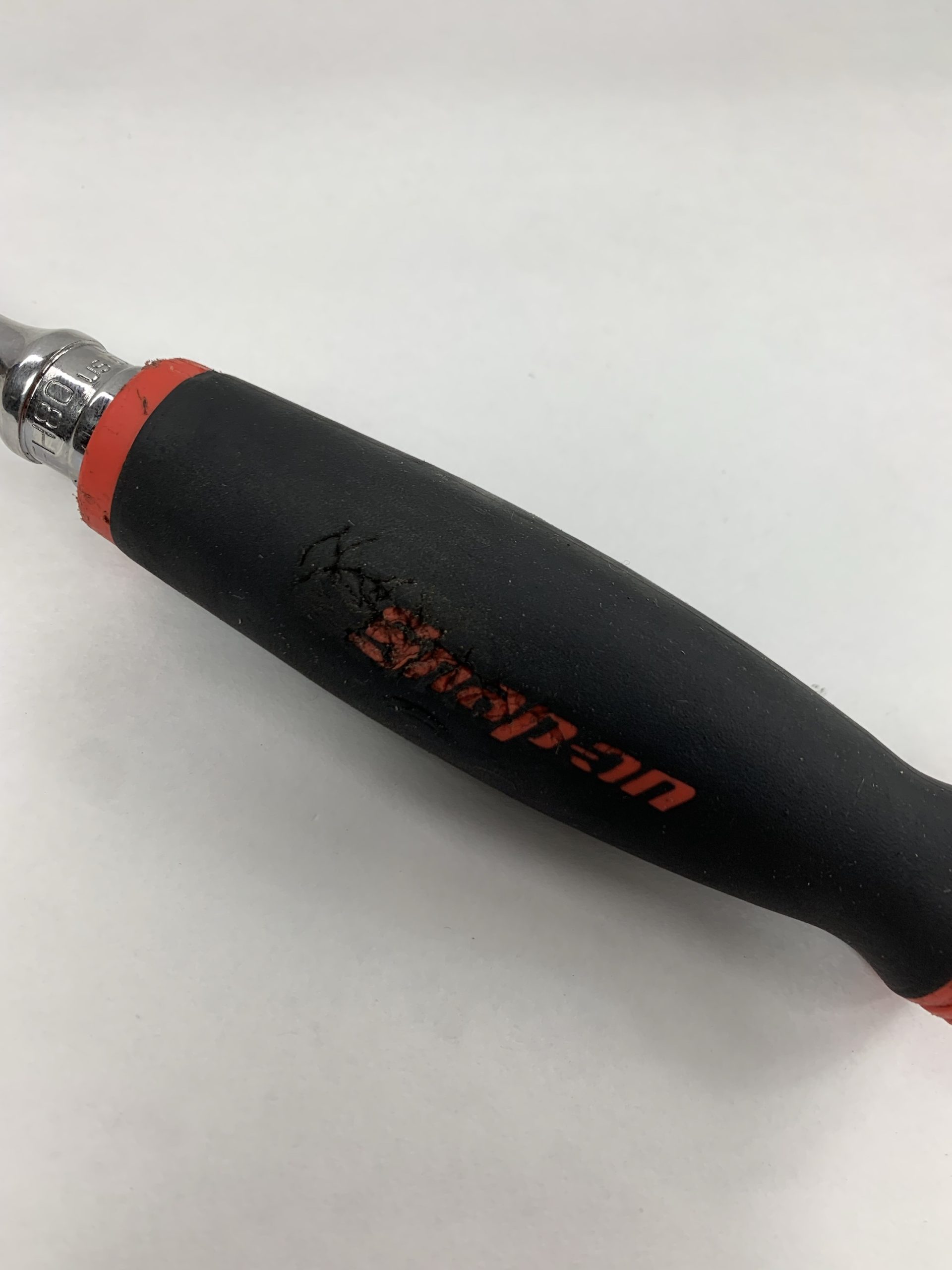 3/8″ Drive Dual 80 Technology Soft Grip Standard Handle Ratchet, Red, Handle Ripped at Logo, Used – Good