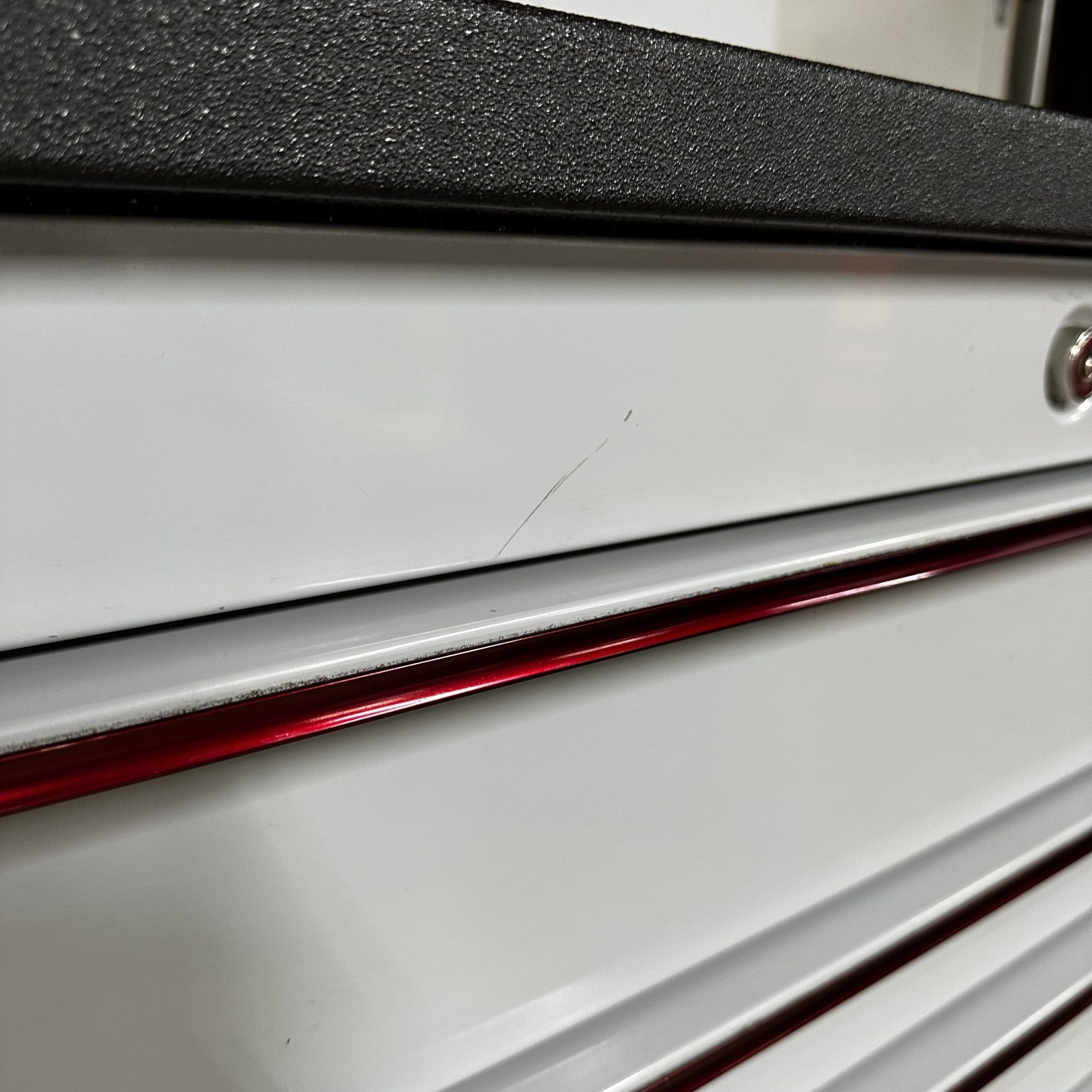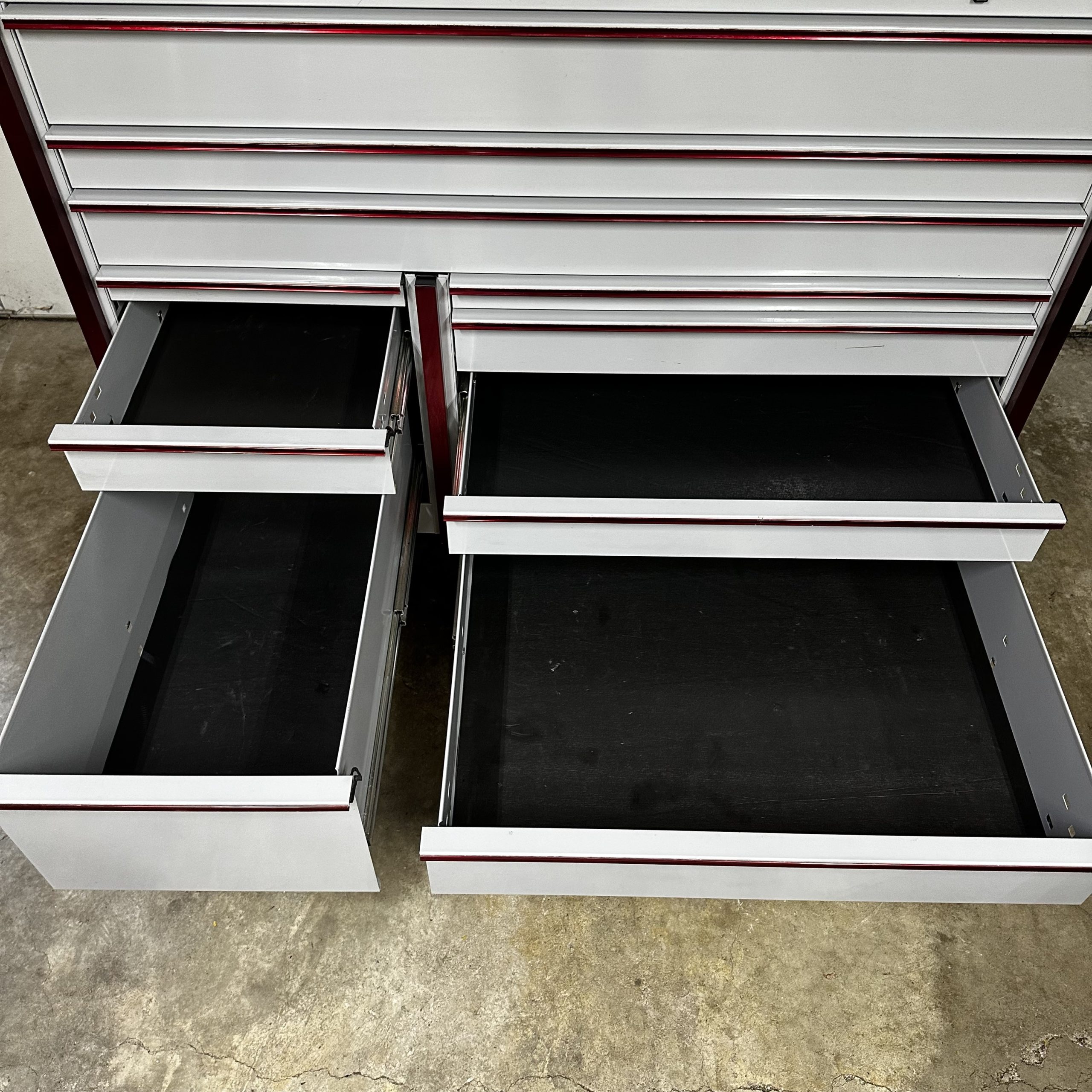 54″ 10-Drawer Double-Bank Masters Series Roll Cab, Artic Silver and Metallic Red Trim with Bedliner Top (KTL1022ABLB), Includes Key and all Liners, Some Minor Cosemtic Blemishes (See Pics), Used – Good
