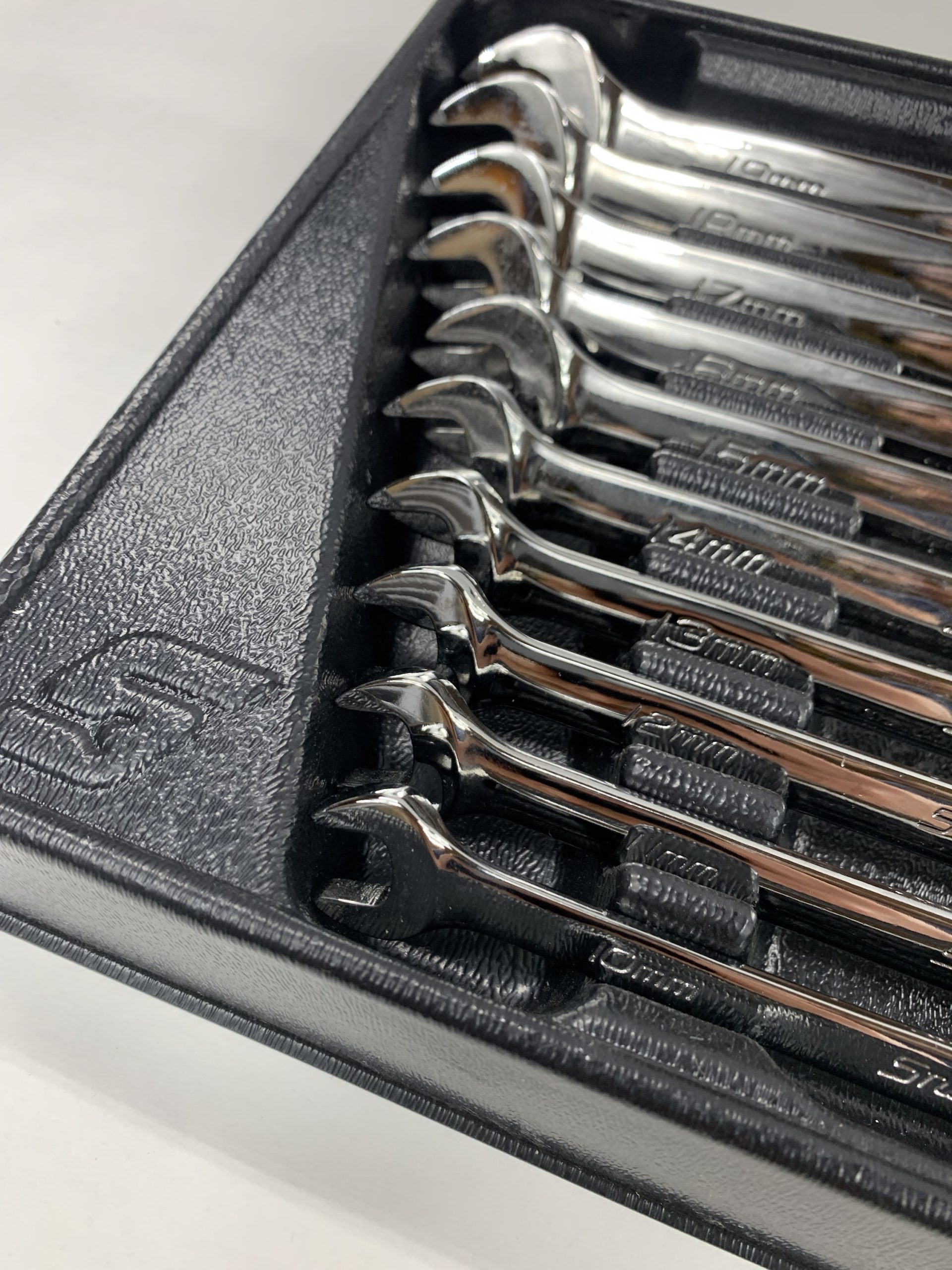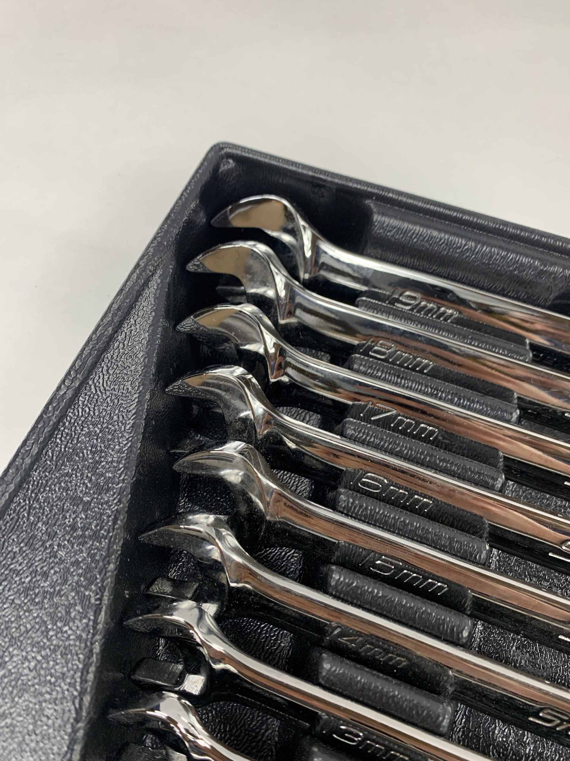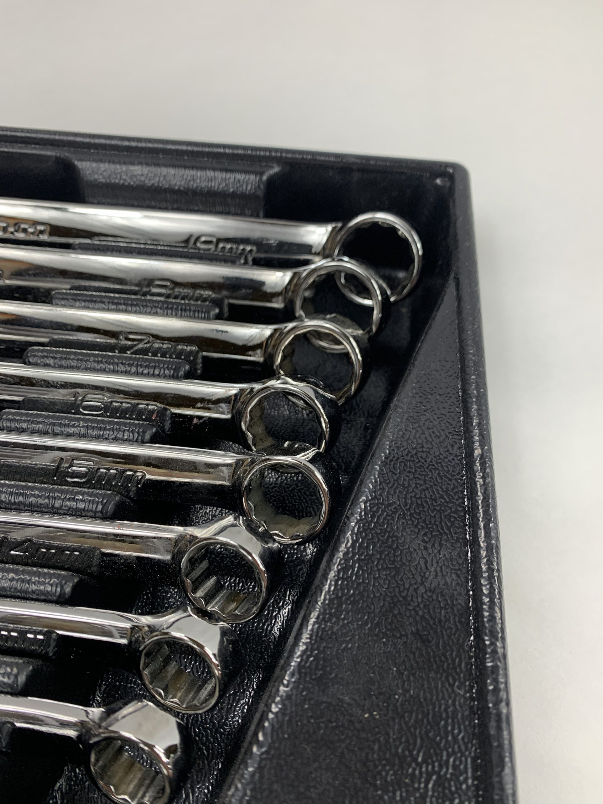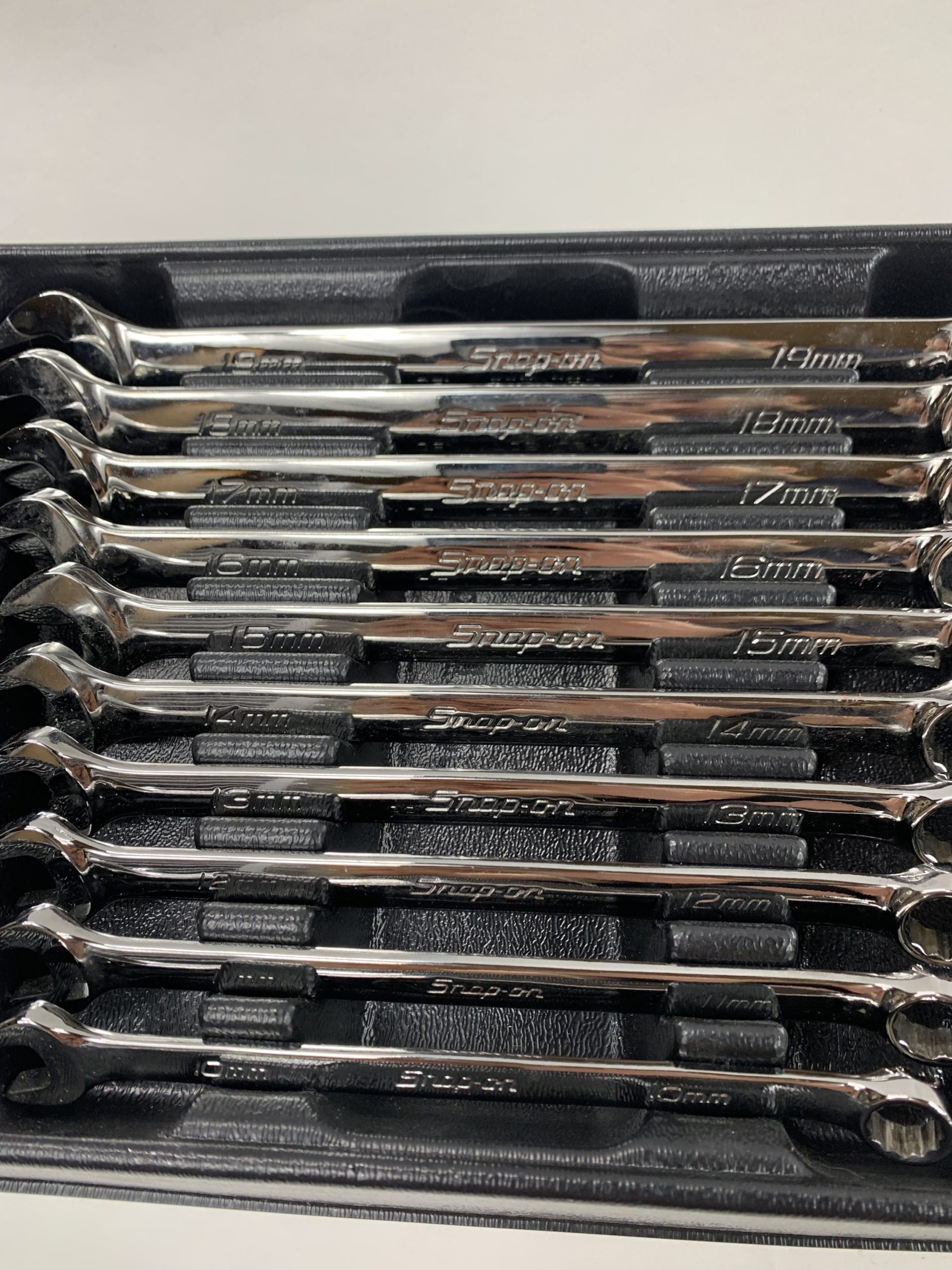 10 pc 12-Point Metric Standard Combination Wrench Set (10-19mm), With Tray, Like New