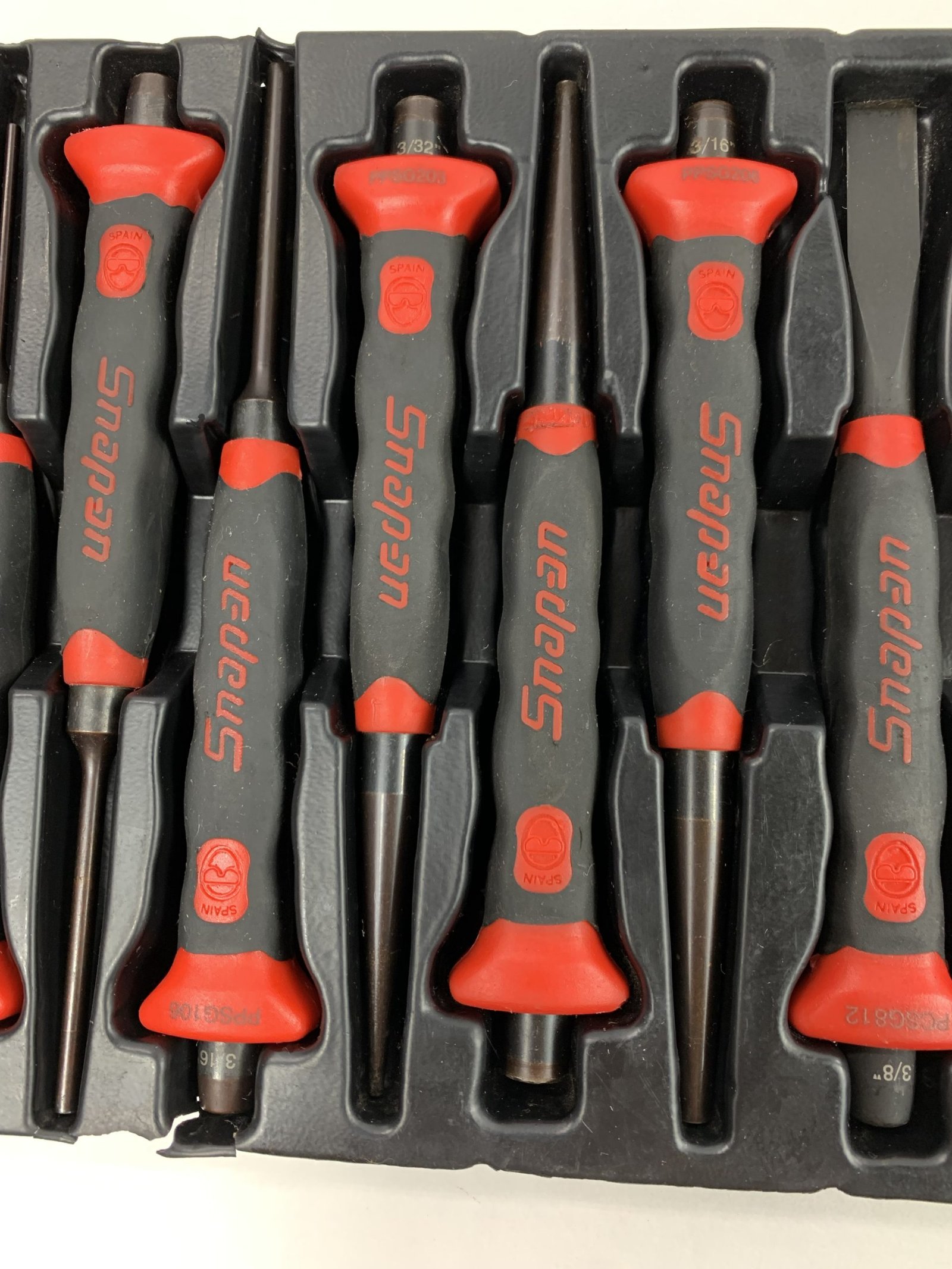 10 pc Soft Grip Punch and Chisel Set, With Tray, Red, Used – Very Good