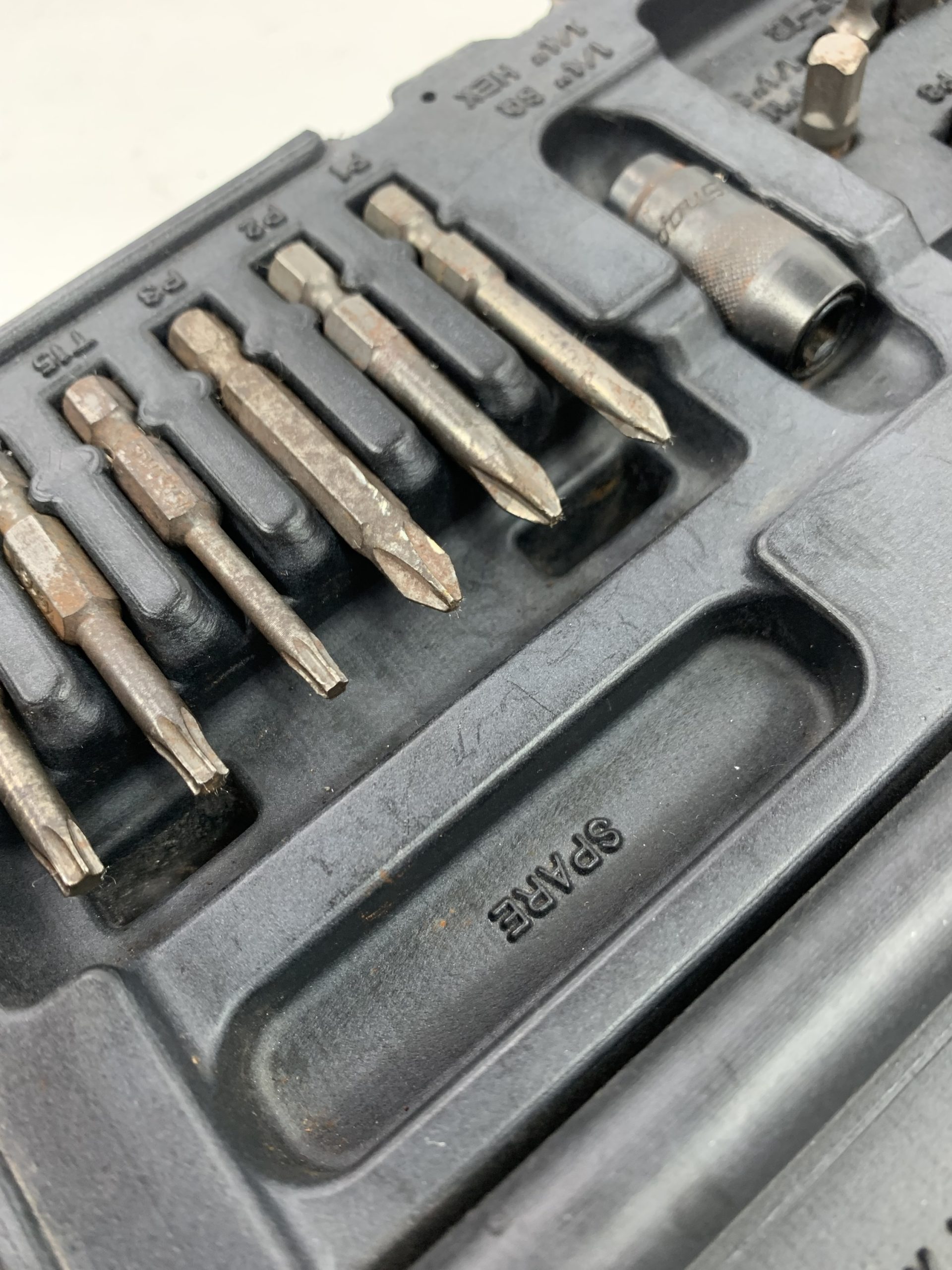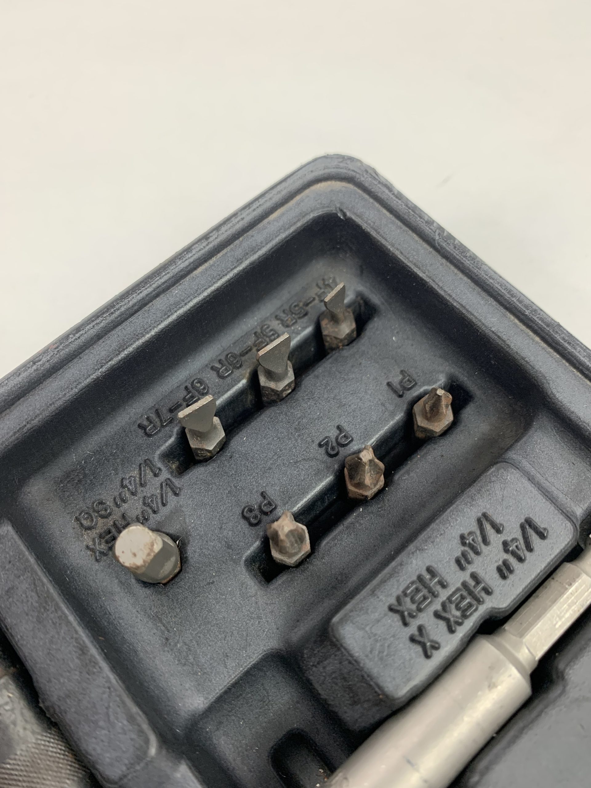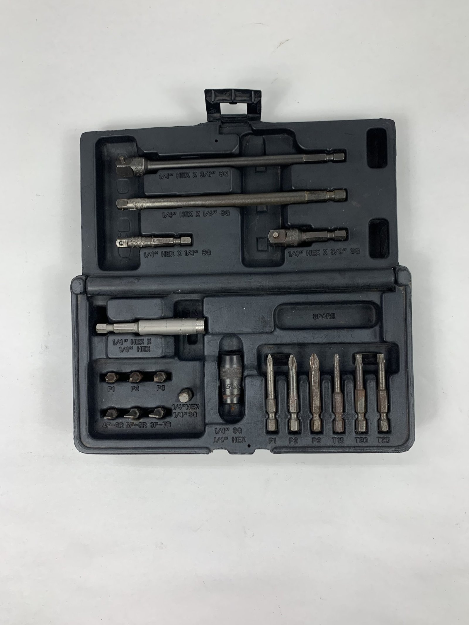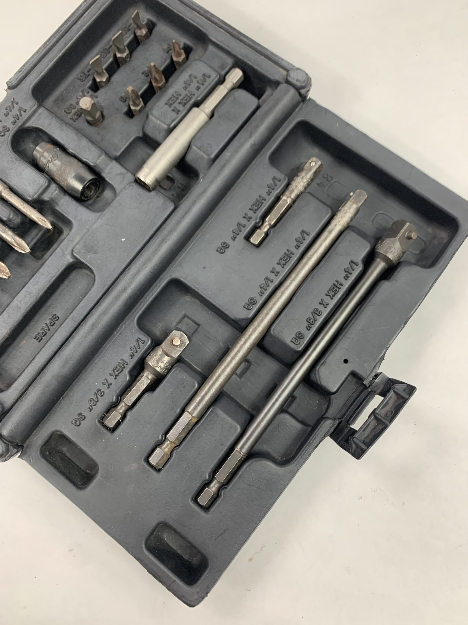 19 pc 1/4″ Hex Drive Adaptor and Bit Set, Case has Paint Overspray, Used – Good