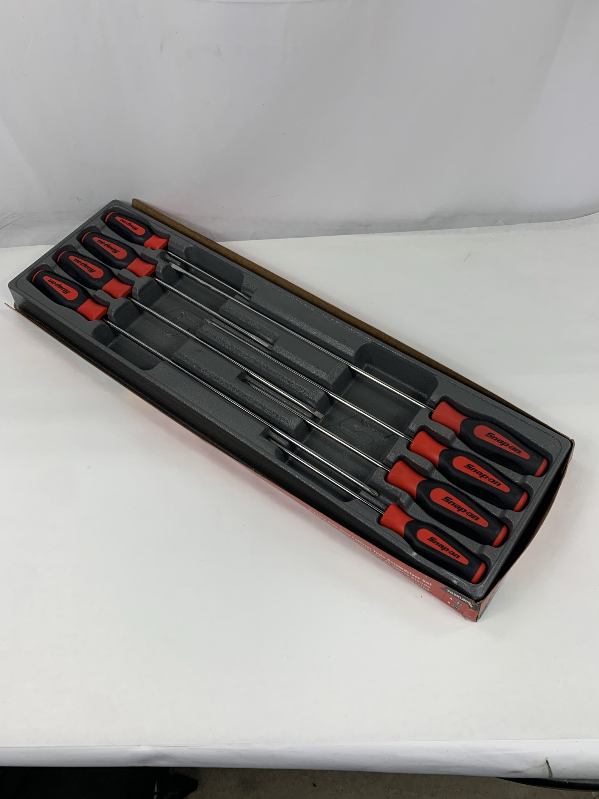 8 pc Instinct Soft Grip Extra-Long Combination Cabinet Screwdriver Set, Red (SGDXL80BR), With Tray and Cardboard, Like New