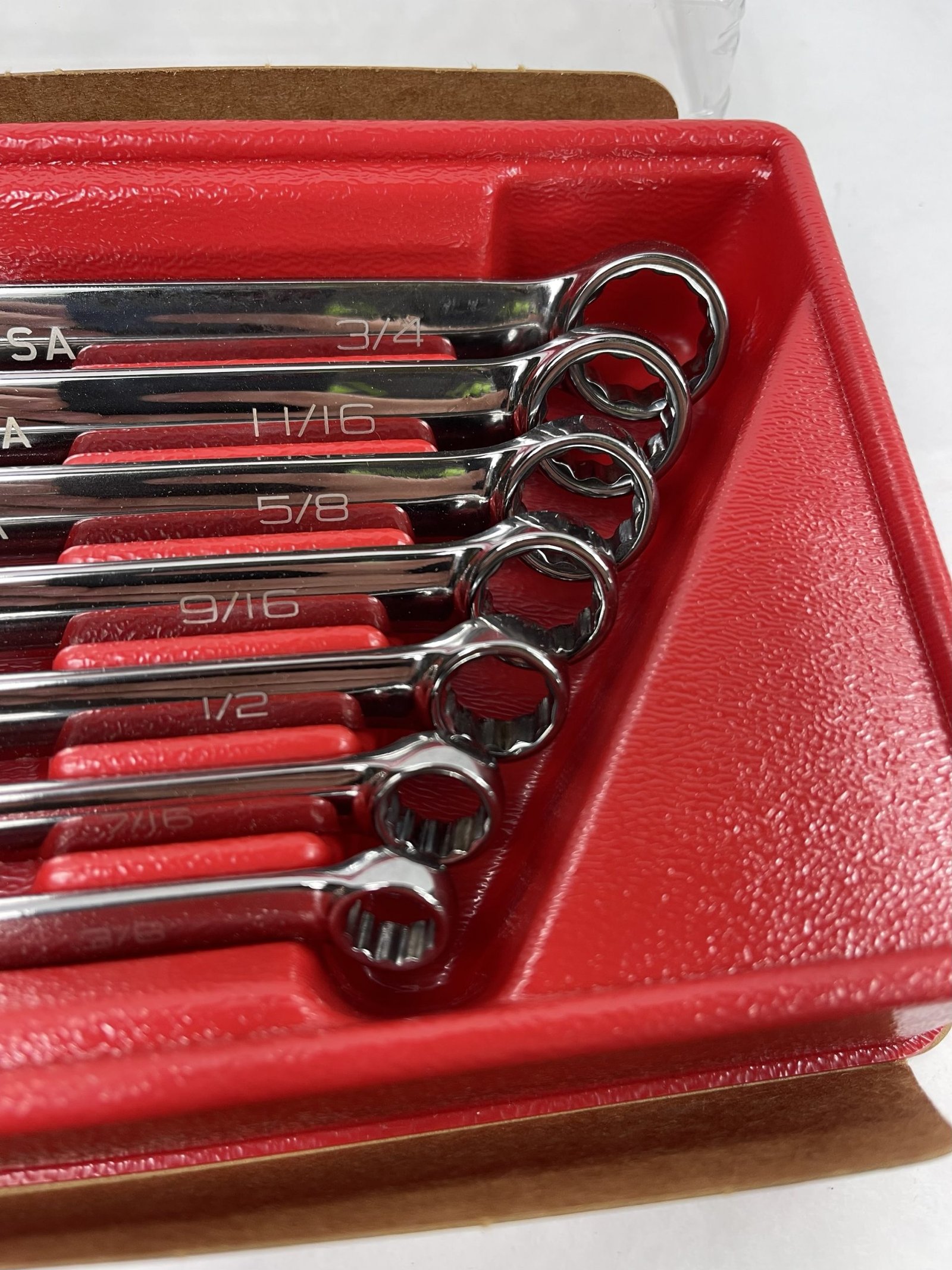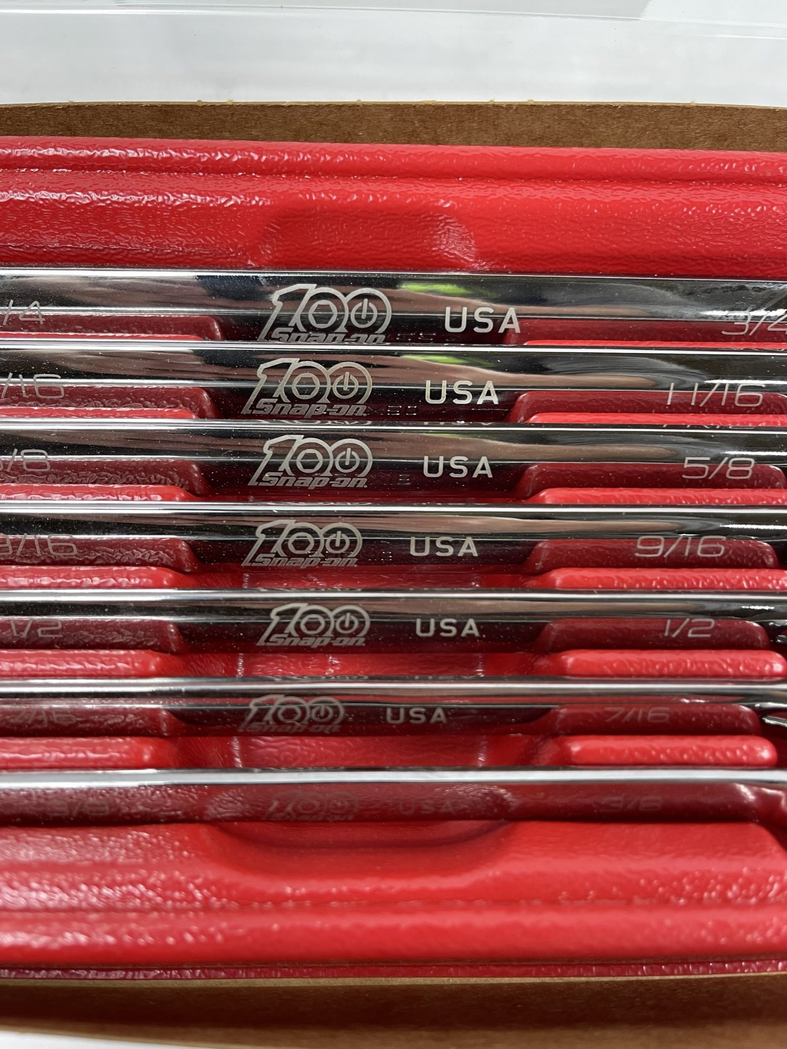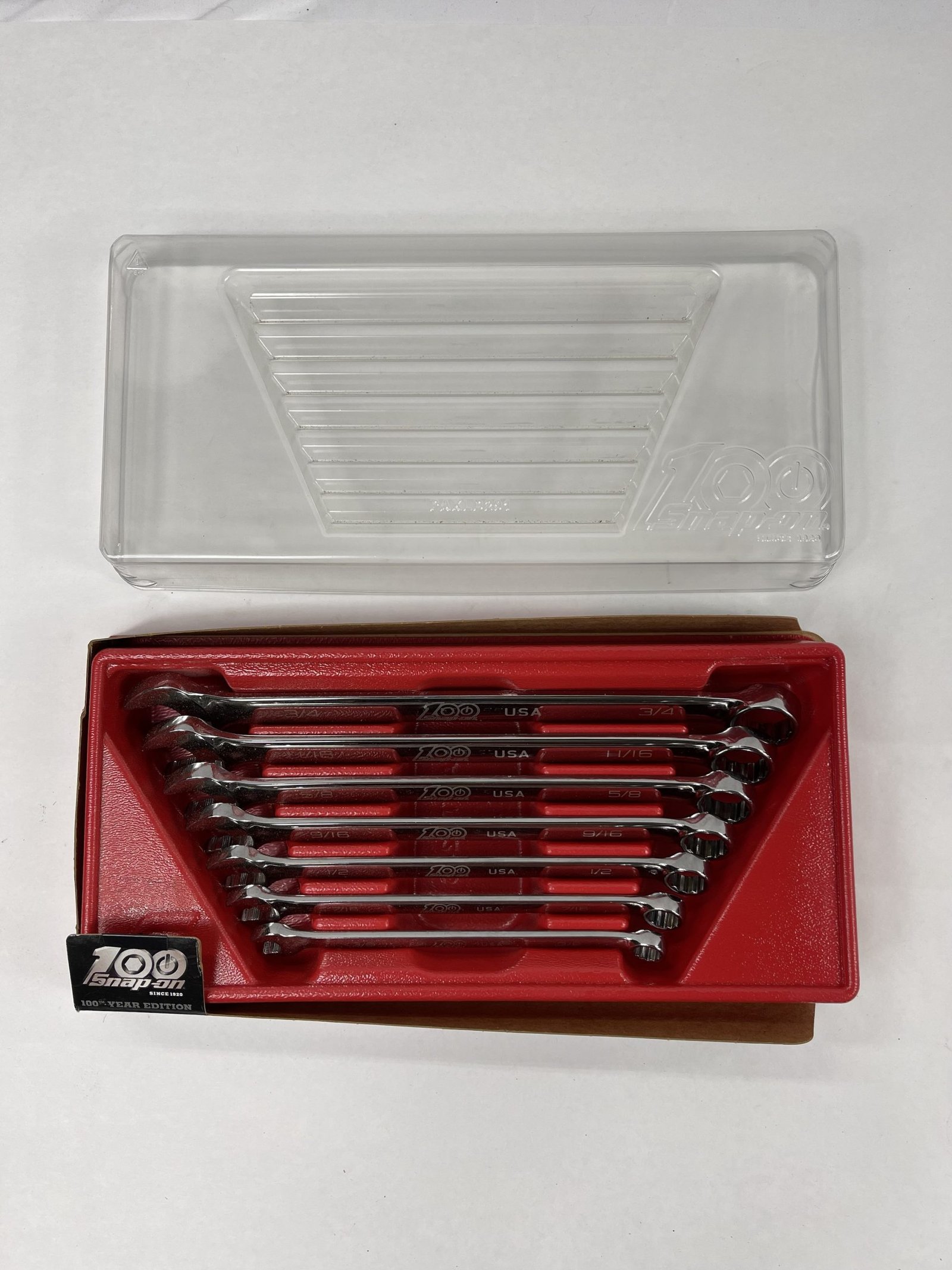 7 pc 12-Point SAE Flank Drive Plus Standard Combination Wrench Set (3/8 – 3/4″), 100th Anniversary (SOEX707CE), With Tray and Cover, Like New