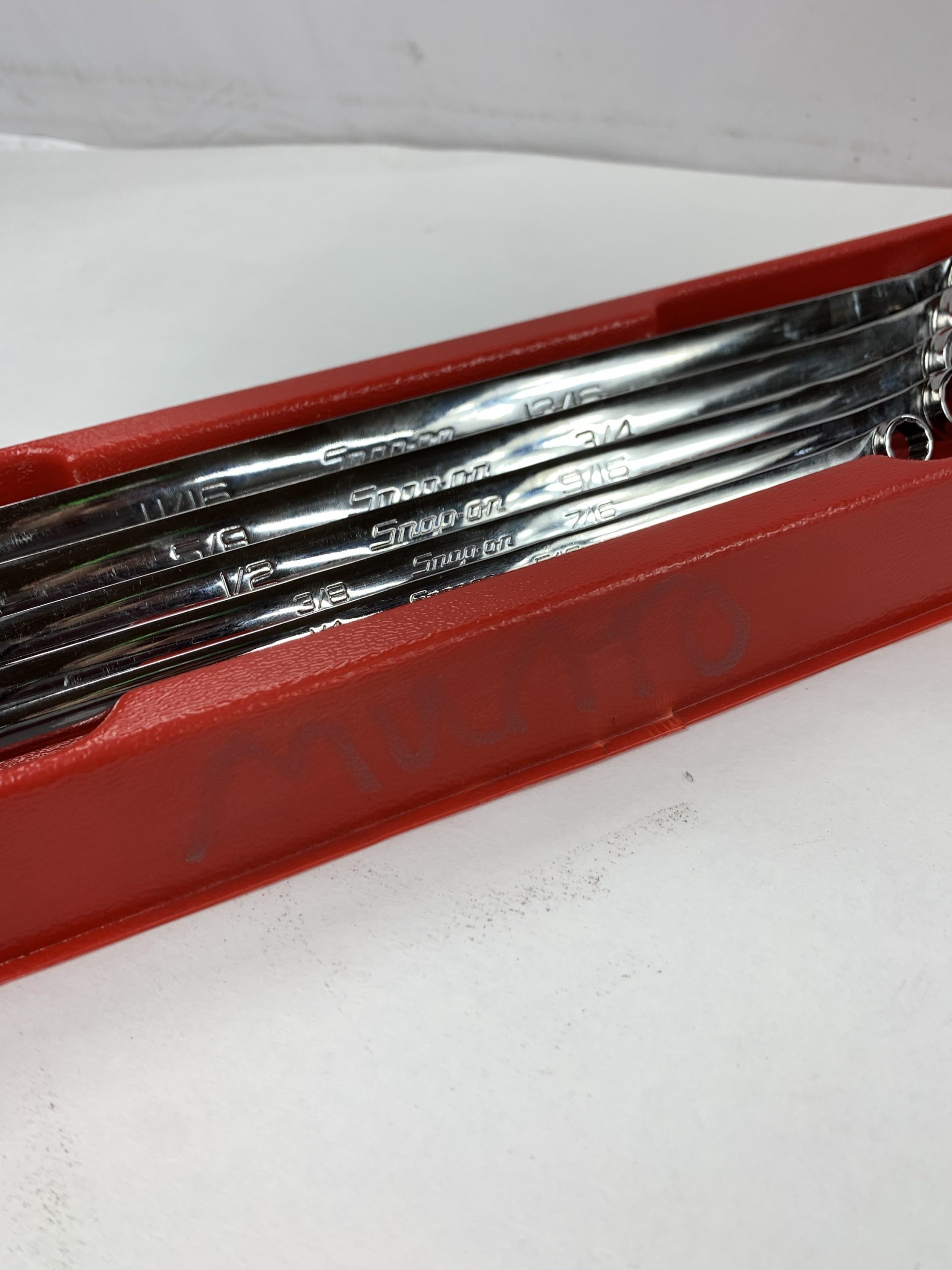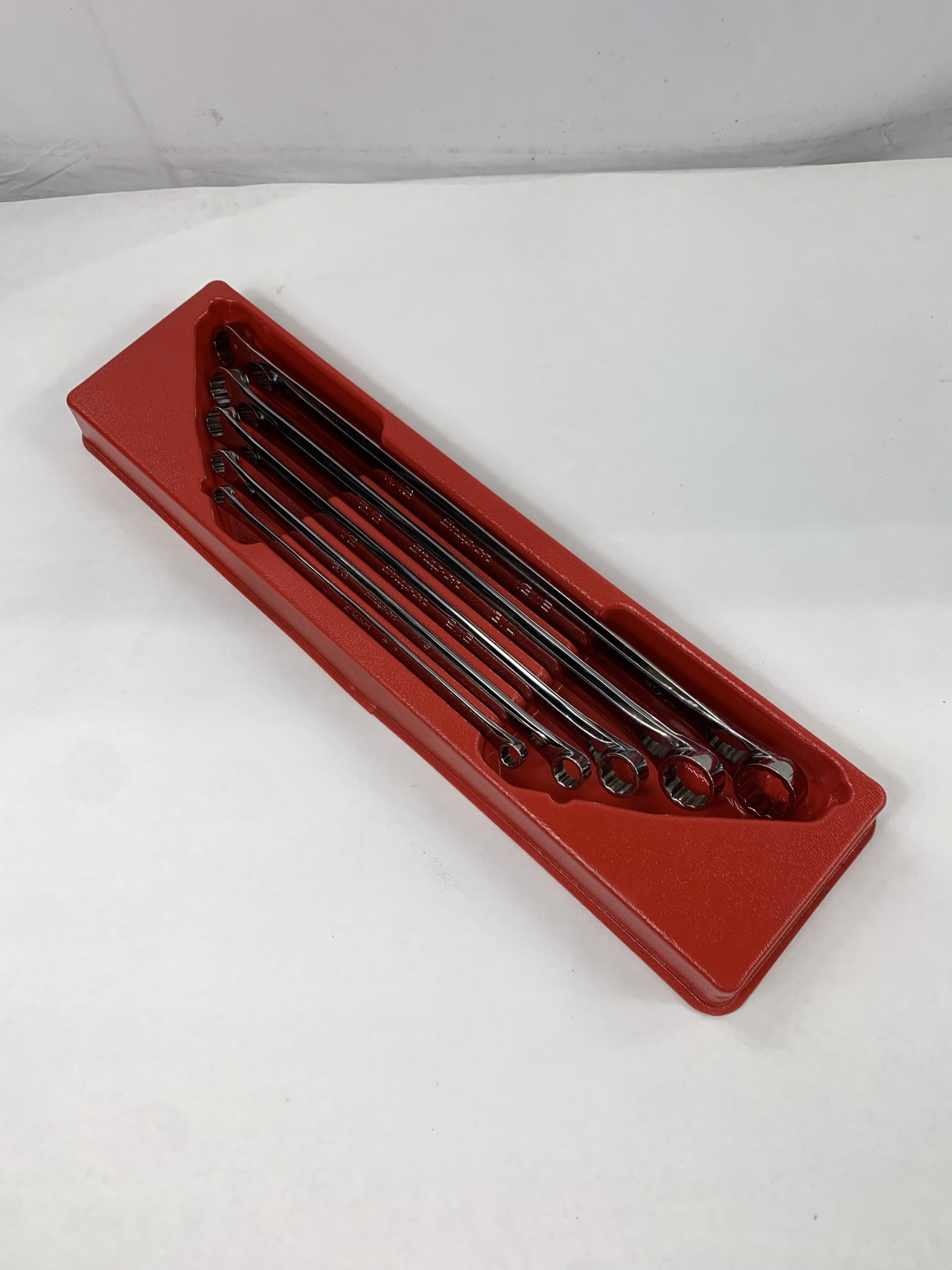5 pc 12-Point SAE Flank Drive® High-Performance 0° Offset Box Wrench Set (1/4–13/16″), With Tray and Dust Cover, Faint Writing on Tray Side, Used – Very Good