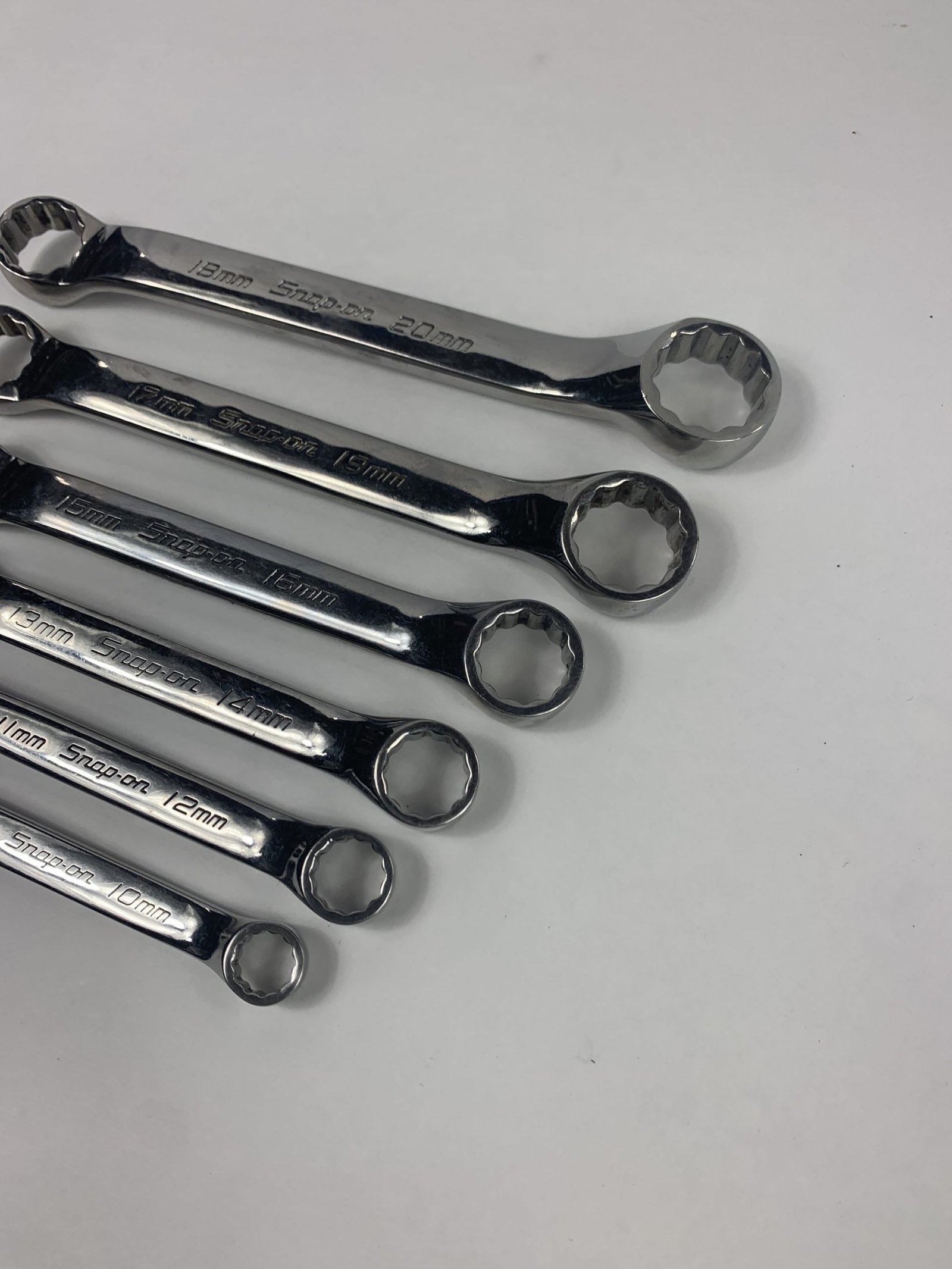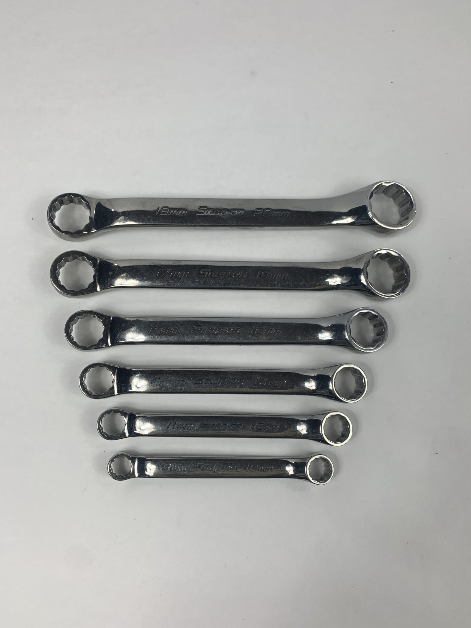 6 pc 12-Point Metric Flank Drive® Short 10° Offset Box Wrench Set (9/10—18/20 mm) , Incomplete Set (Missing two smallest: 6/7mm & 8/9mm), Used – Very Good