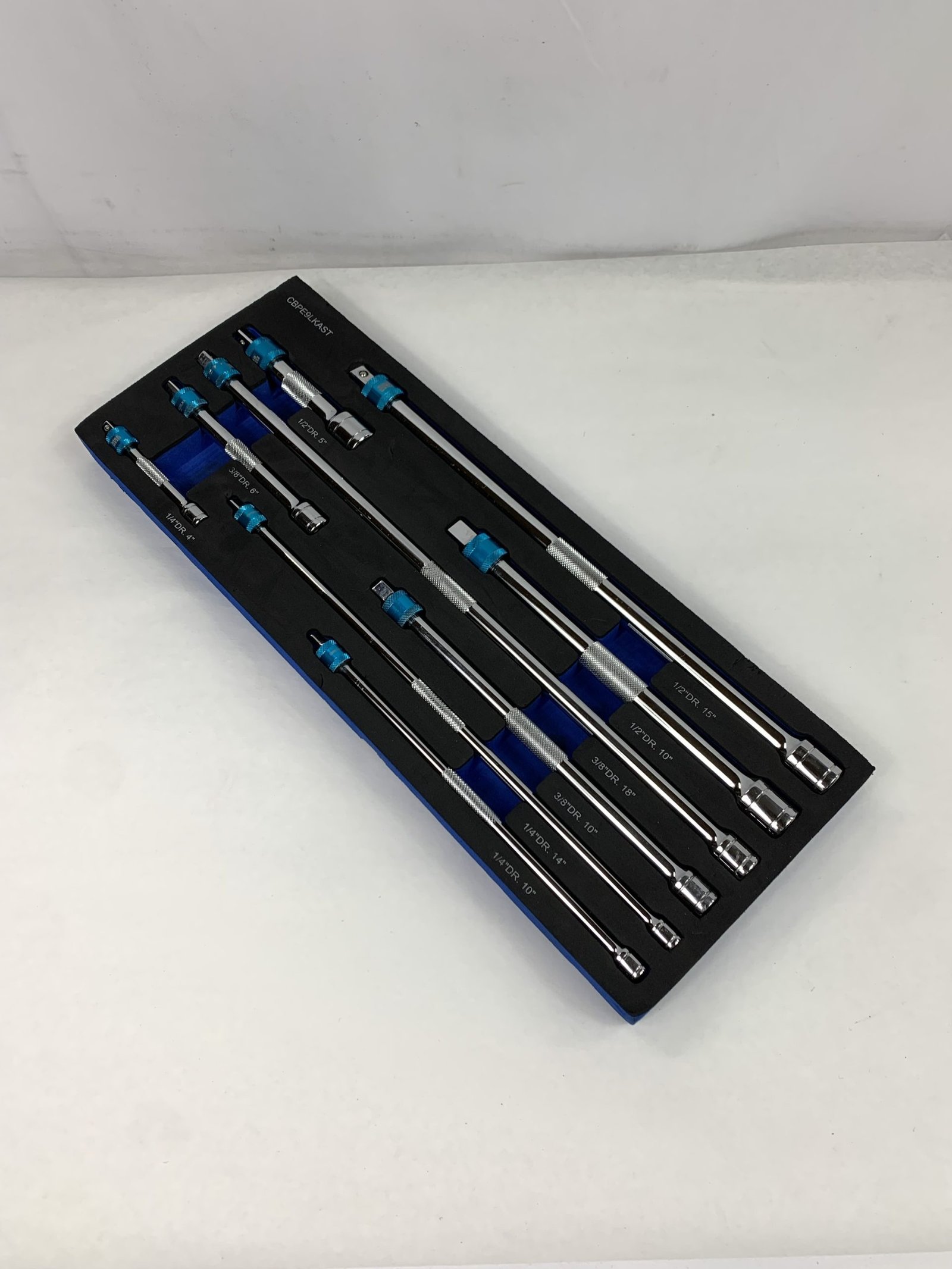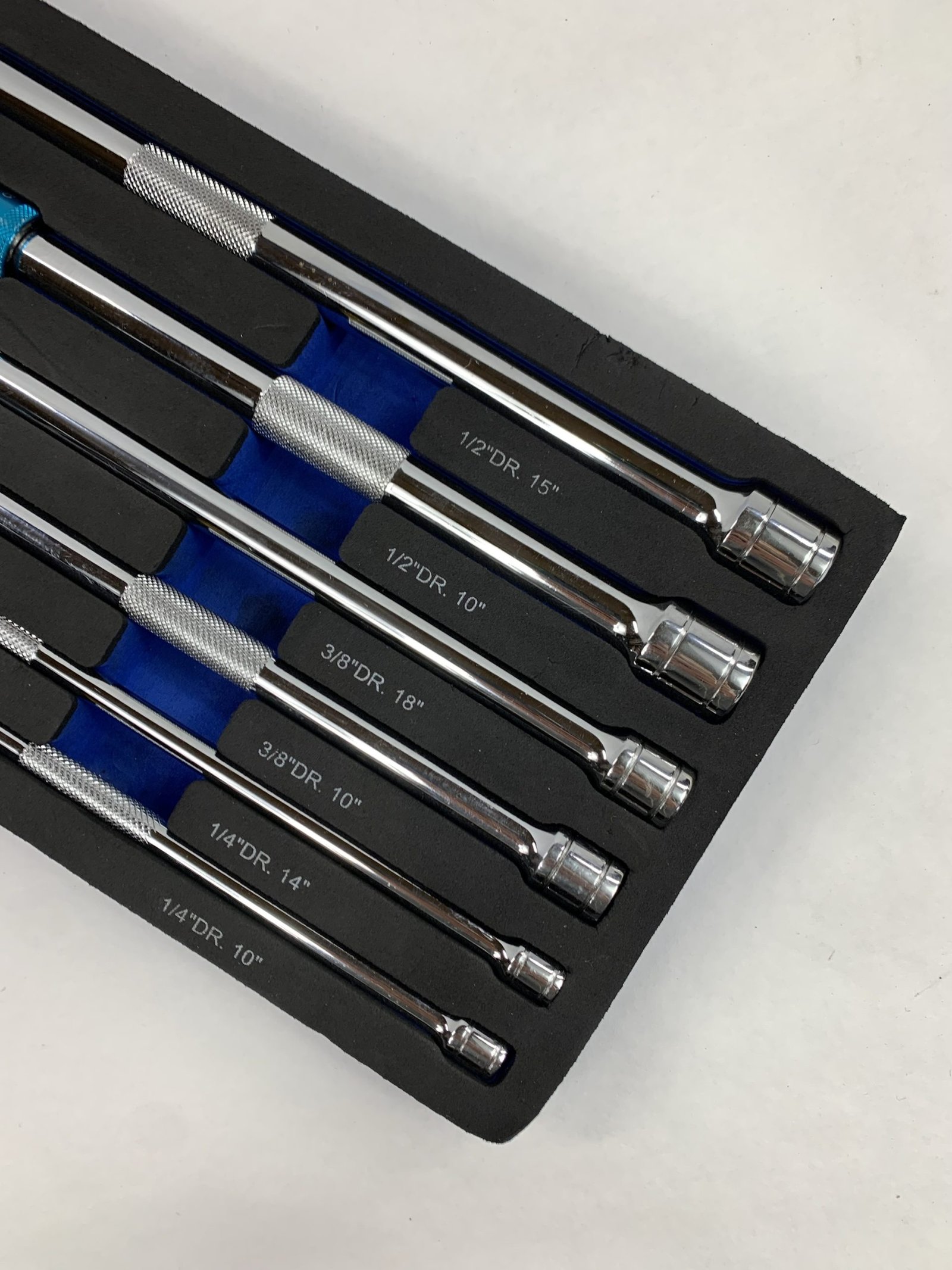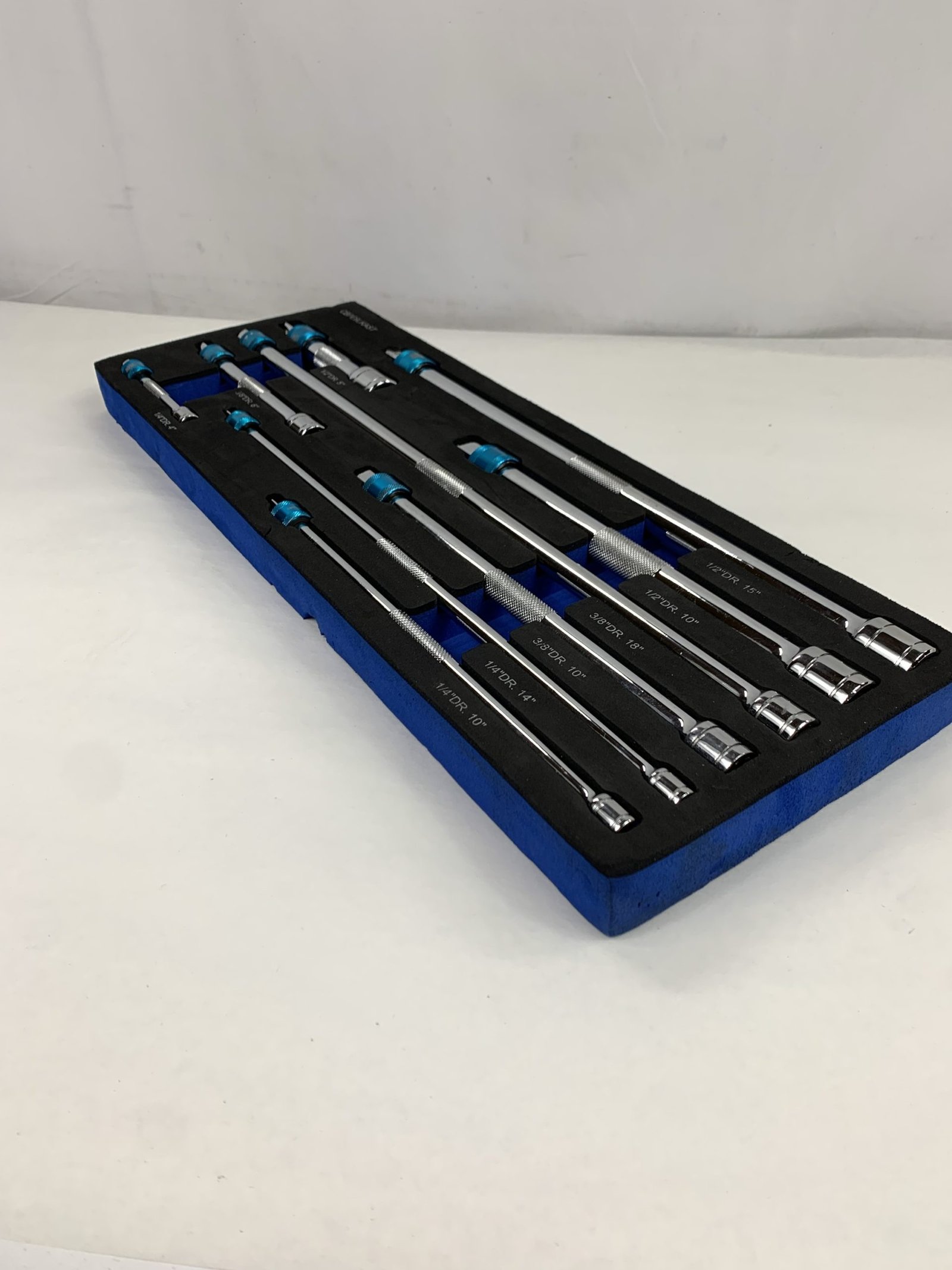 9 Piece 1/4”, 3/8” & 1/2” Drive bluePOWER® Locking Extension Set, With Foam Tray, Used – Very Good