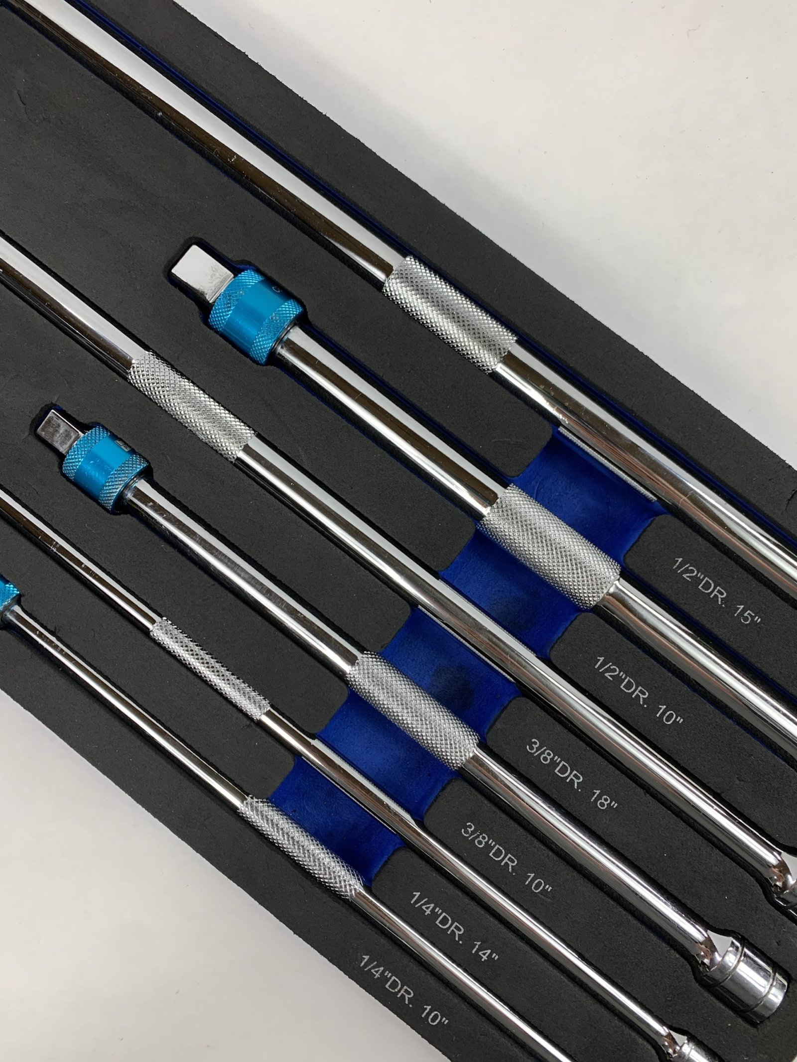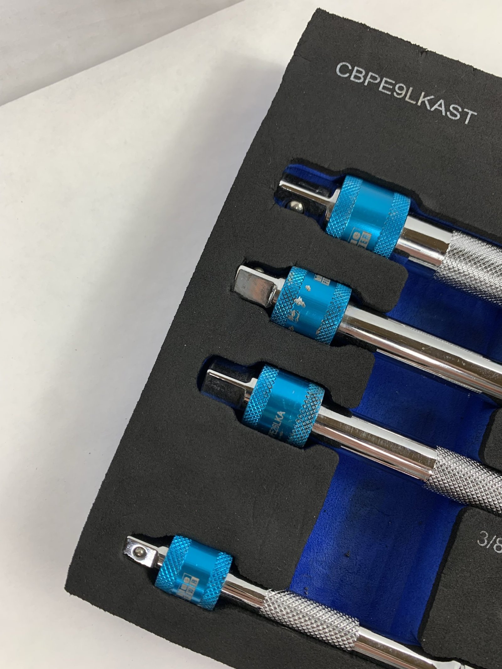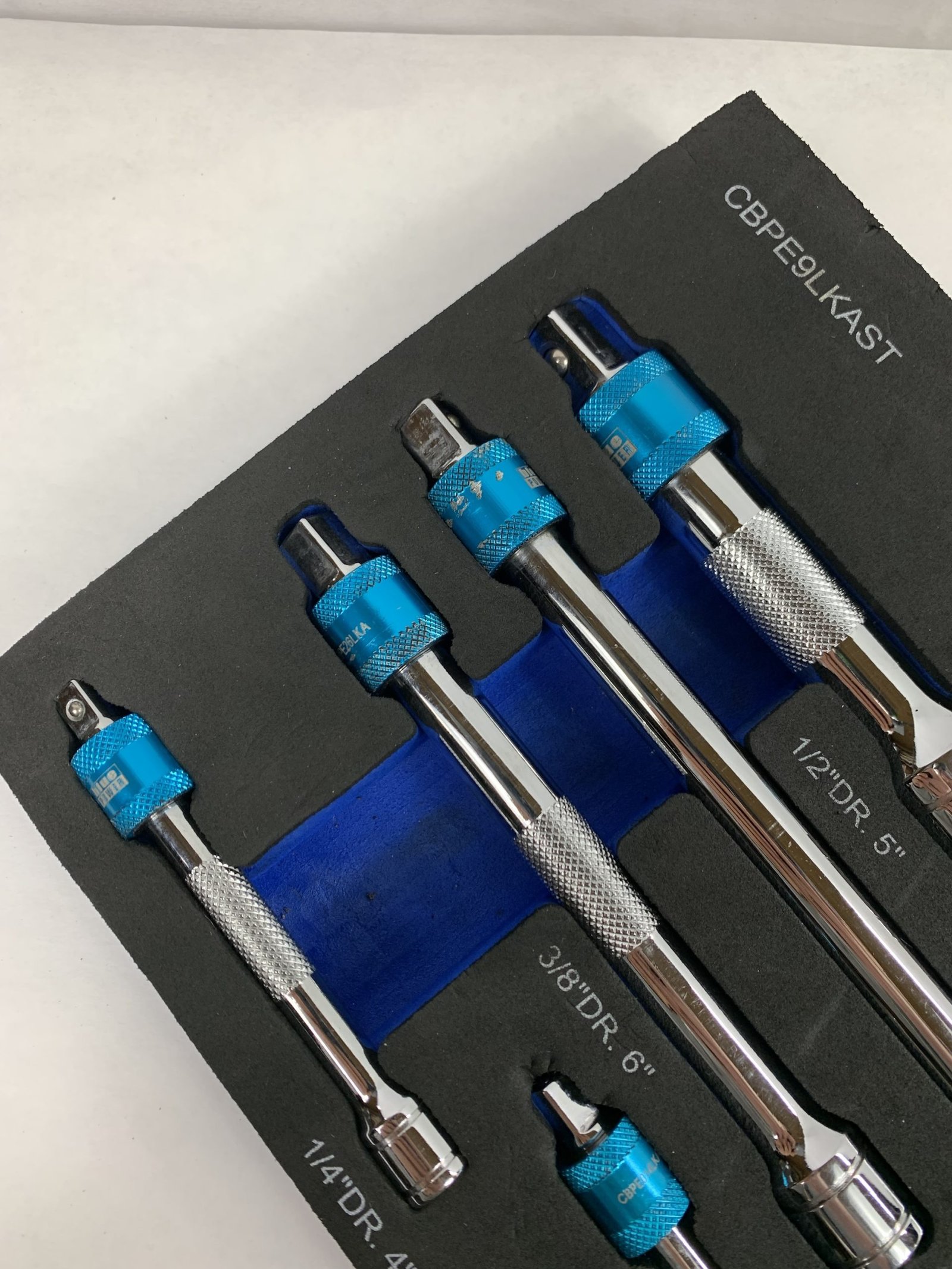 9 Piece 1/4”, 3/8” & 1/2” Drive bluePOWER® Locking Extension Set, With Foam Tray, Used – Very Good