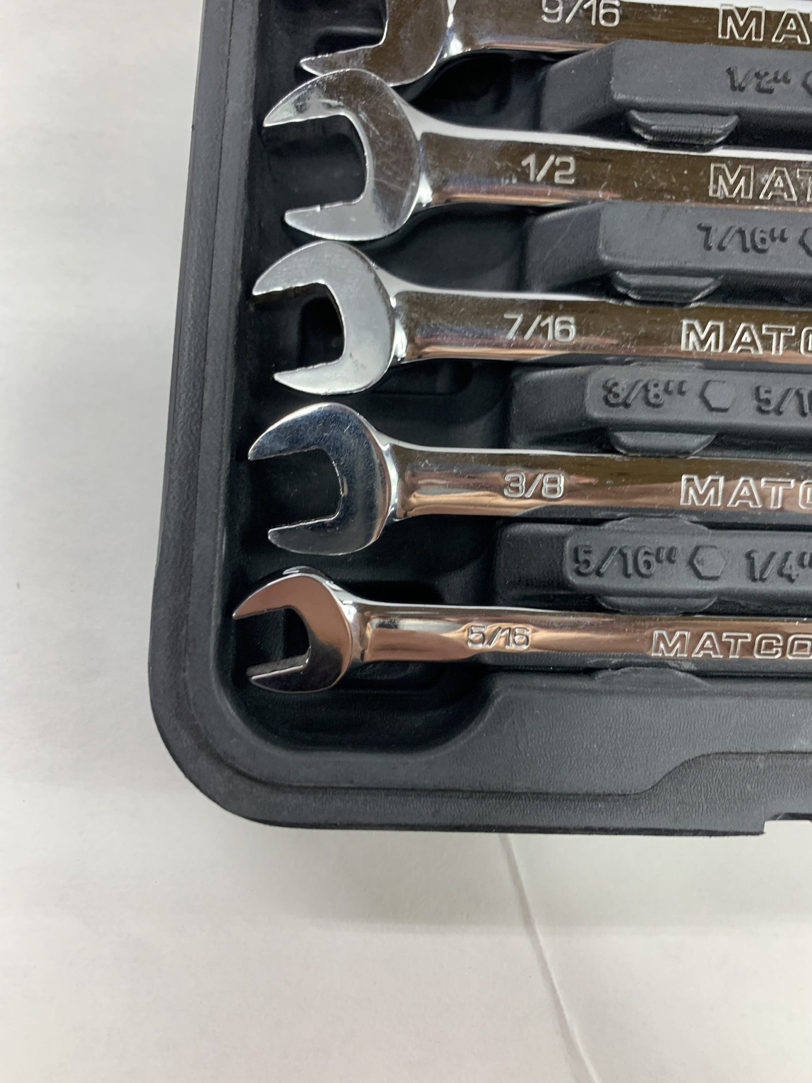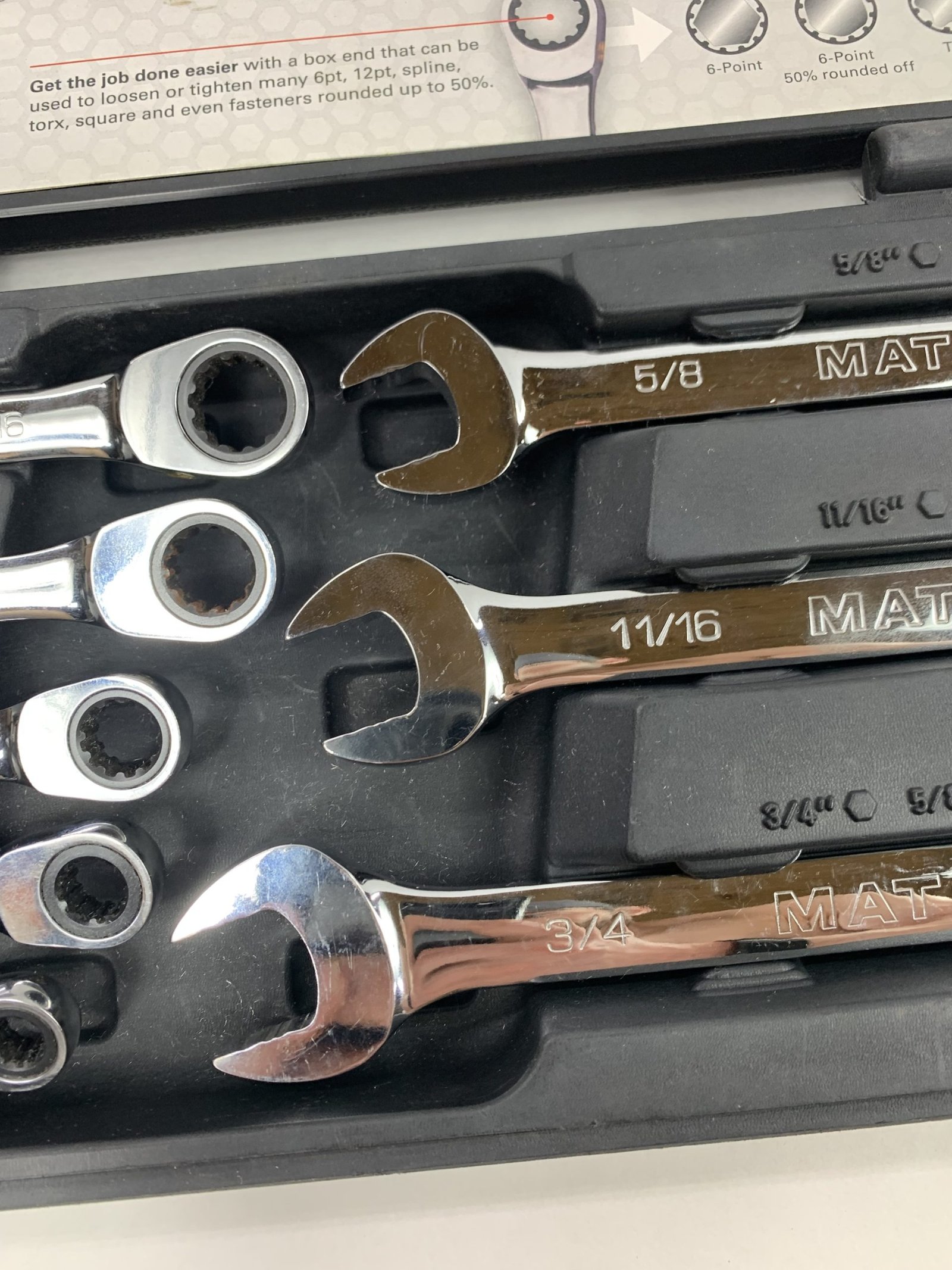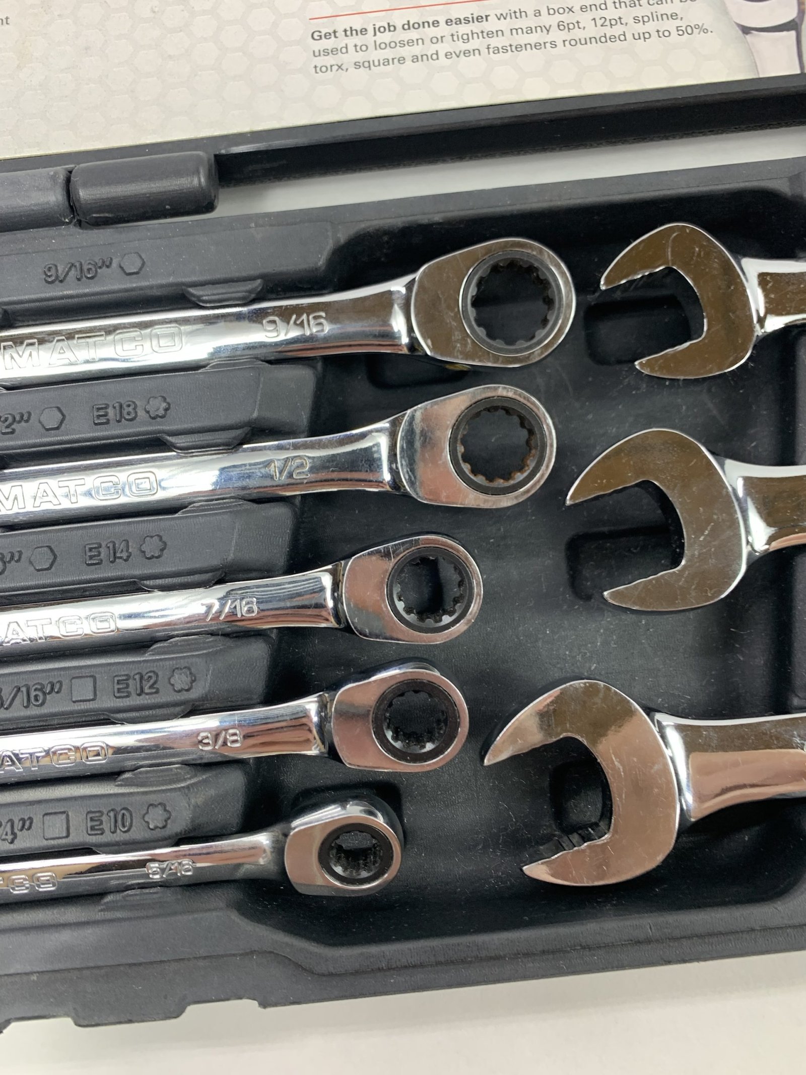 8 PIECE 90 TEETH SAE COMBINATION RATCHETING WRENCH SET, With Hard Case, Used – Very Good