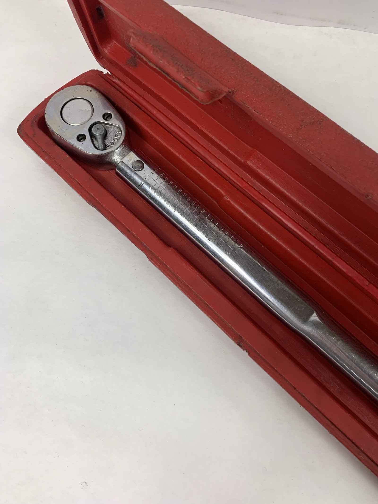 1/2″ Drive Click Type Torque Wrench(30-200ft-lb), With Case (Missing 1 Latch), Shaft Engraved, Used – Good